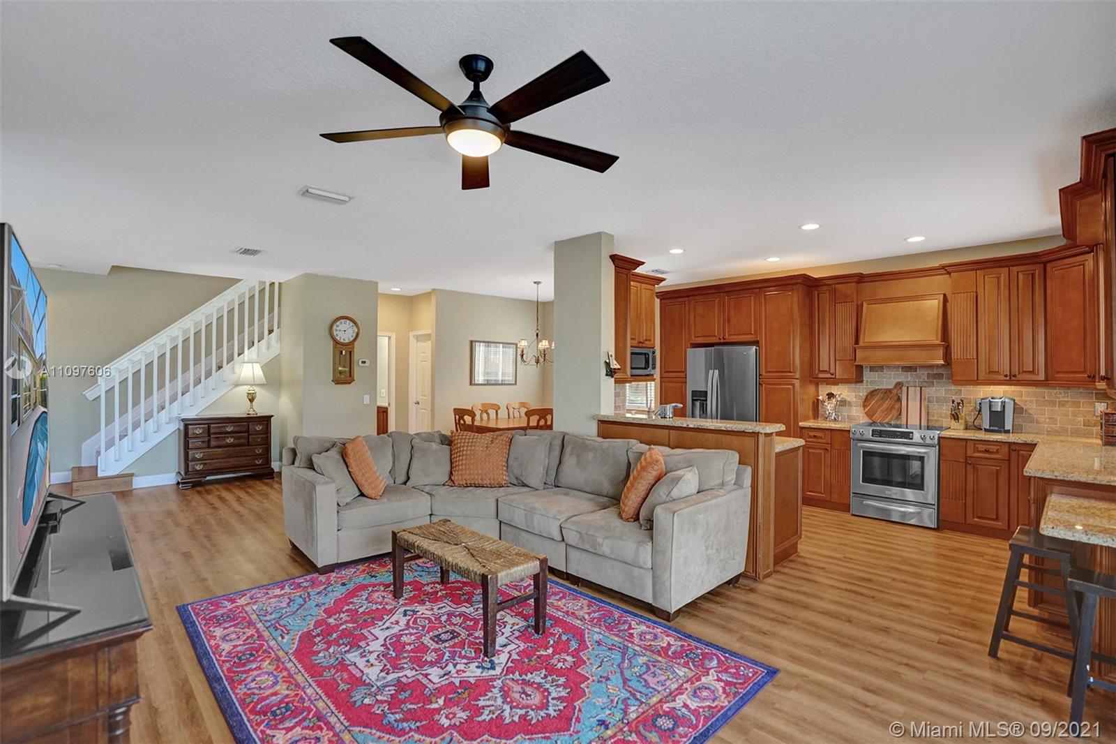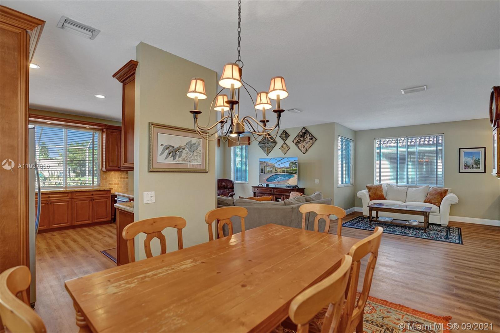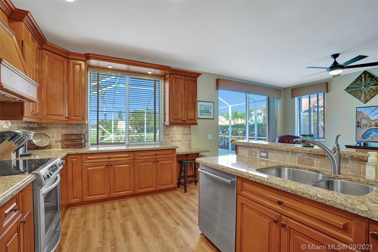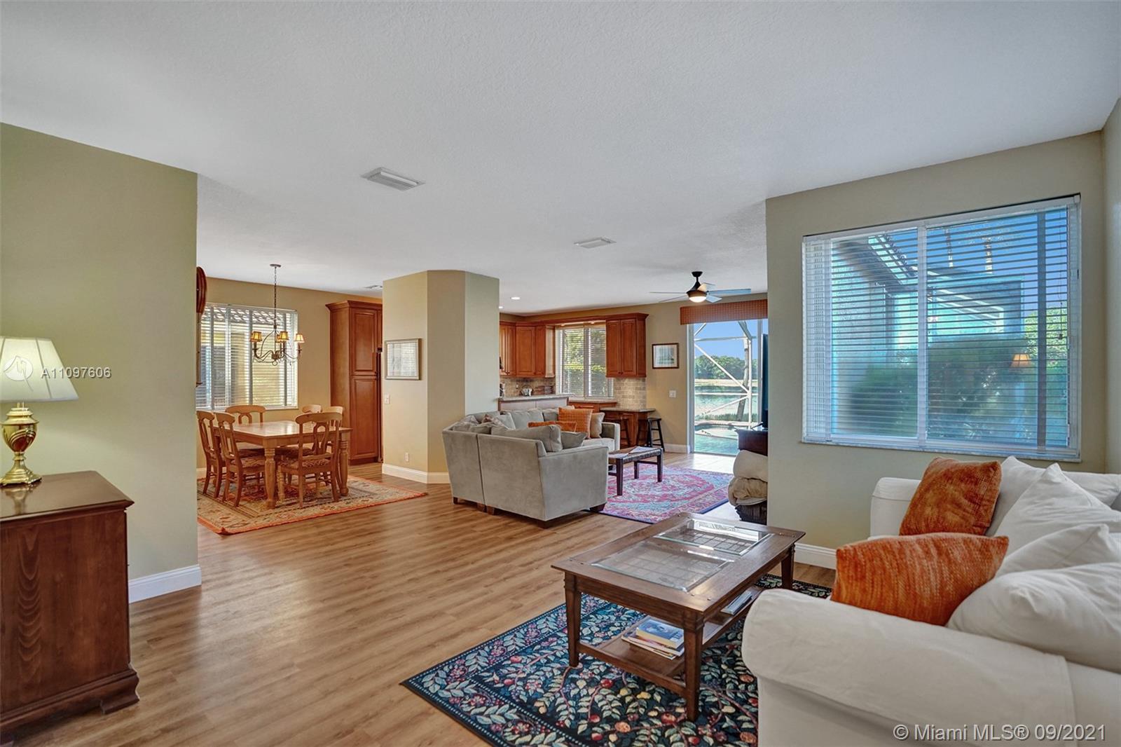 First time on market in The Ridges with 4 bedrooms and 2.5 baths and 2 car garage. Home is immaculate and shows beautifully with all wood flooring throughout home. Gorgeous kitchen with wood cabinets, marble backsplash granite & stainless steel appliances. Nice floor plan with formal dining, living and family room and all bedrooms upstairs. New windows upstairs and accordion hurricane shutters throughout. Enjoy tranquil and stunning long lake views from your screened pool area with a free form pool. Close to the best schools and restaurants. This home won't last!
