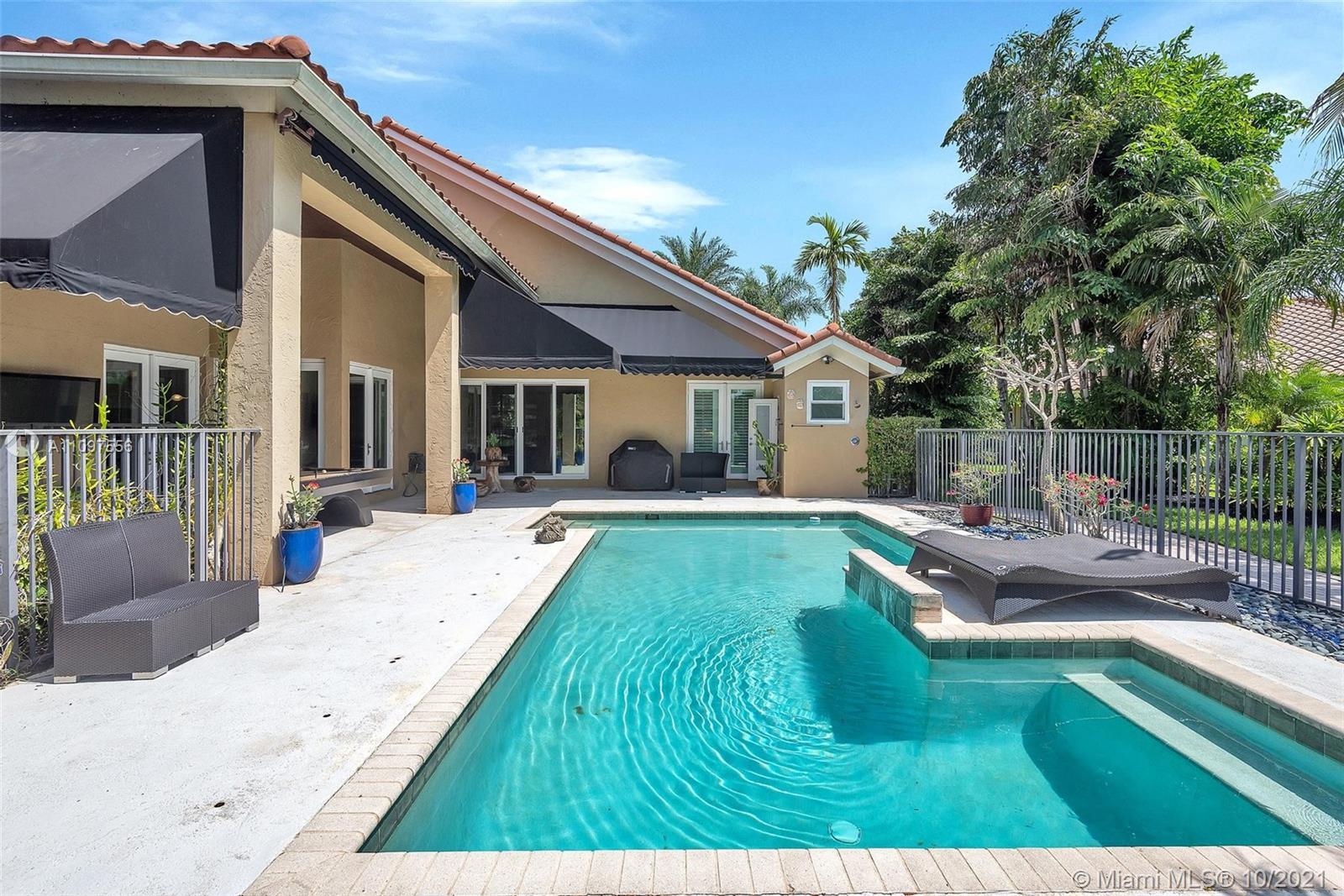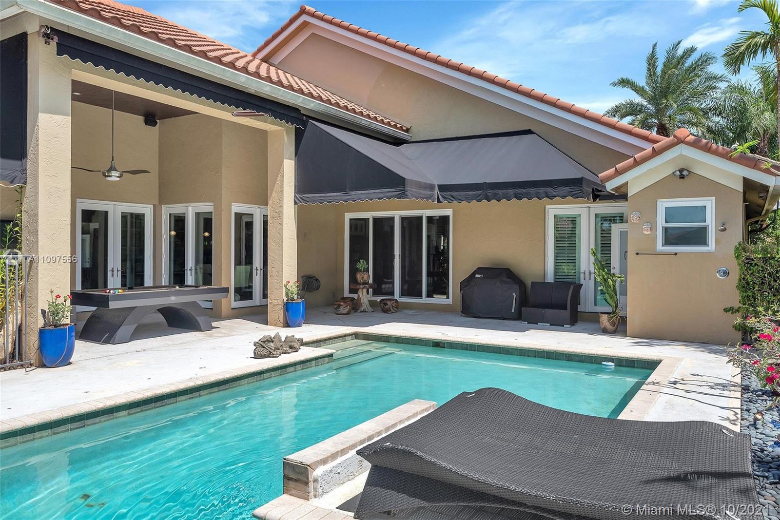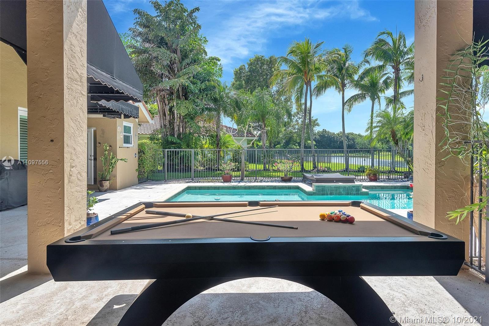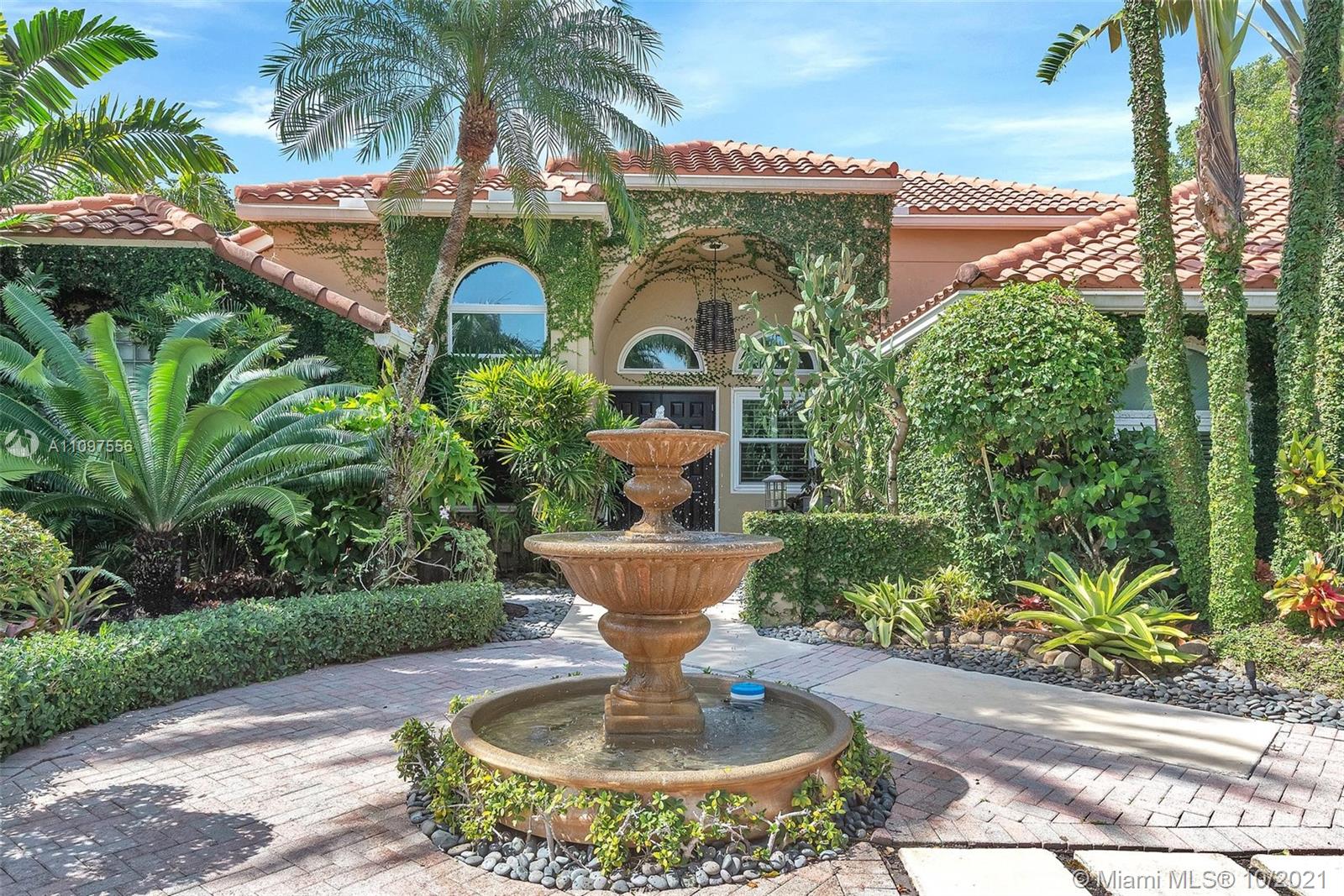 Spectacular lakefront estate in prestigious boutique Palm Island! This luxury home is a single-story it has a heated pool, fully fenced back yard, steam shower in primary bath, cabana half bath, outdoor shower, and a totally private picturesque view! The property had a huge living area, a separate dining area, a bonus Florida room. Spacious 3-split floor plan w/high ceilings, crown molding, electric water heater, plantation shutters, indestructible wood look floors, custom closets, wet laundry room, Thermador appliances, gas stove, Miele Coffee maker in the gourmet kitchen with L shape Island, wet bar w/kegerator, LED lighting, newer roof, newer ACs, garage with wall ac unit, hurricane impact windows and doors, manicured landscape, huge driveway with 2 car garage & much more! A+ schools!