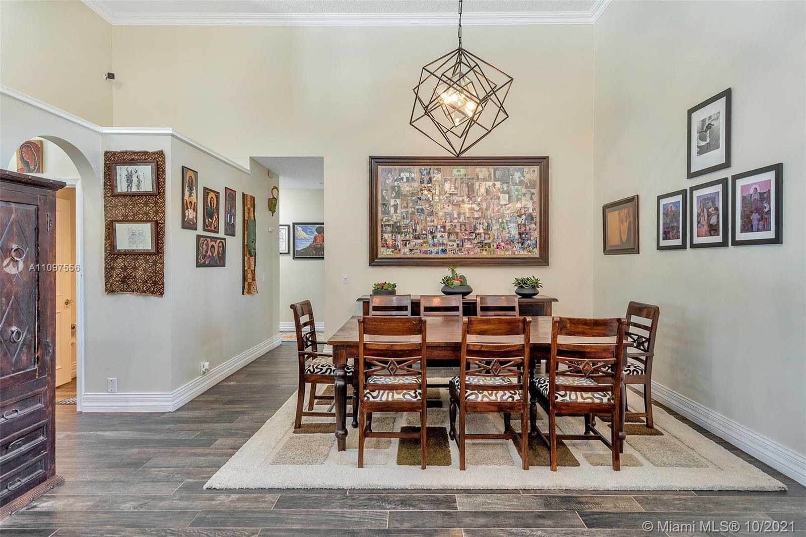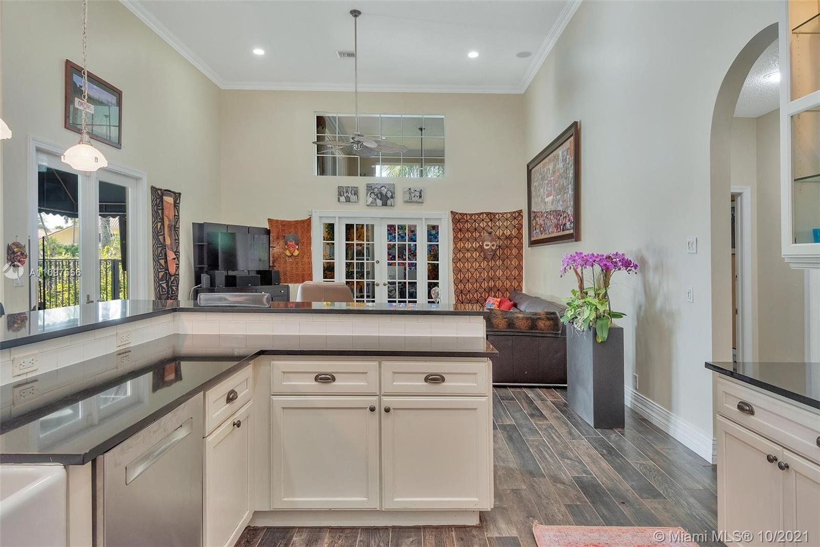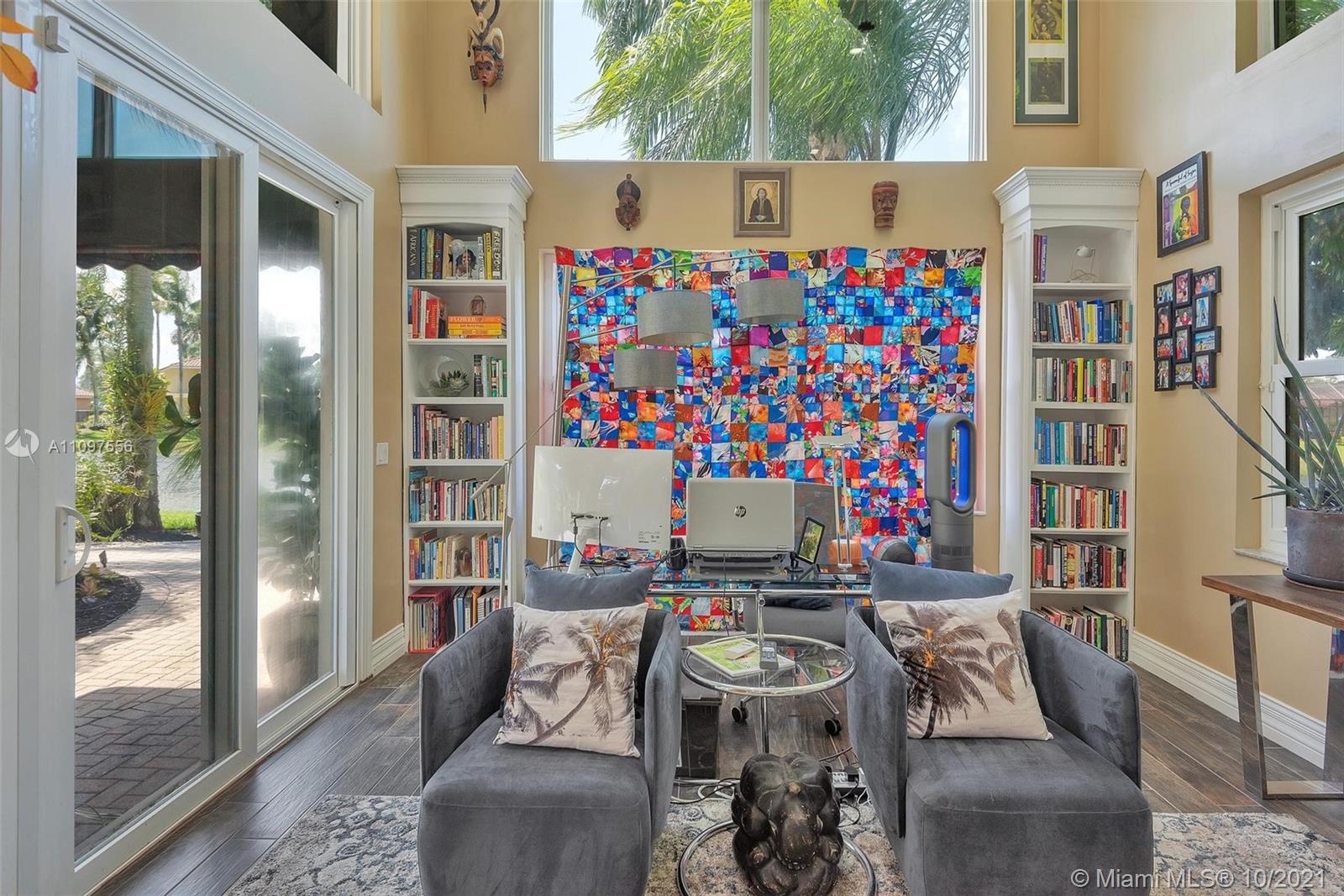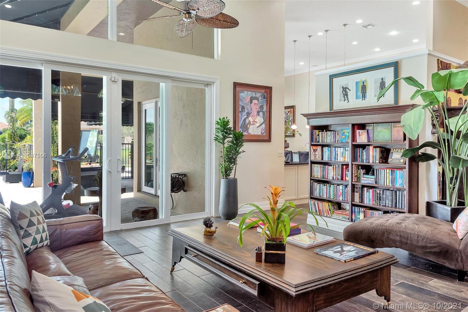 Spectacular lakefront estate in prestigious boutique Palm Island! This luxury home is a single-story it has a heated pool, fully fenced back yard, steam shower in primary bath, cabana half bath, outdoor shower, and a totally private picturesque view! The property had a huge living area, a separate dining area, a bonus Florida room. Spacious 3-split floor plan w/high ceilings, crown molding, electric water heater, plantation shutters, indestructible wood look floors, custom closets, wet laundry room, Thermador appliances, gas stove, Miele Coffee maker in the gourmet kitchen with L shape Island, wet bar w/kegerator, LED lighting, newer roof, newer ACs, garage with wall ac unit, hurricane impact windows and doors, manicured landscape, huge driveway with 2 car garage & much more! A+ schools!