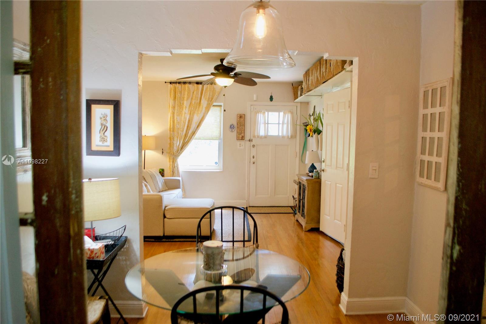 Larger than tax roll, Mid -Century Charmer on a huge, lush, 10575 sqft, fenced lot with plenty of room for a pool, gardens & a guest house. Adorable 2/1 plus a sunroom & den. Original hardwood floors w/ many updates. Dade Co. Hurricane rated shutters for all openings. Fabulous Downtown North Miami location, South of 125TH st. Best of both worlds, city sewer & lower taxes w/ the great neighborhood feel of your Biscayne Park neighbors just two streets to the south. Walk to Burke Park and recreation center, MOCA Art museum, Creme cafe, Cane Sucre sandwich shop, Mimo hand crafted cheeses and all the boutiques and restaurants in the heart of North Miami. Minutes to Biscayne Blvd., Beaches, Bay harbor Islands, Bal Harbour shops, I95, The Clover Leaf, I75 & Turnpike. Wonderful central location!