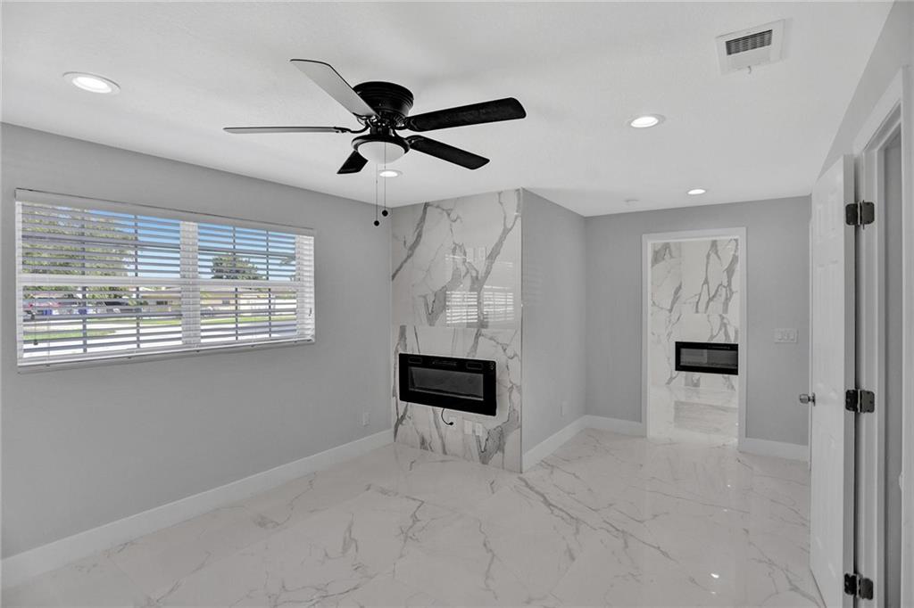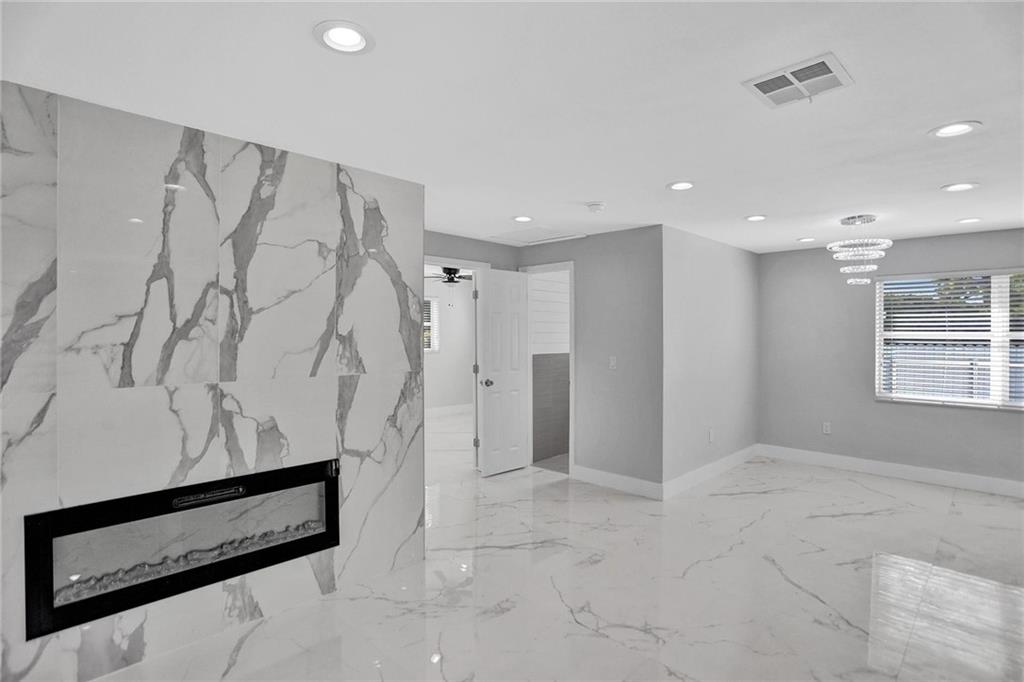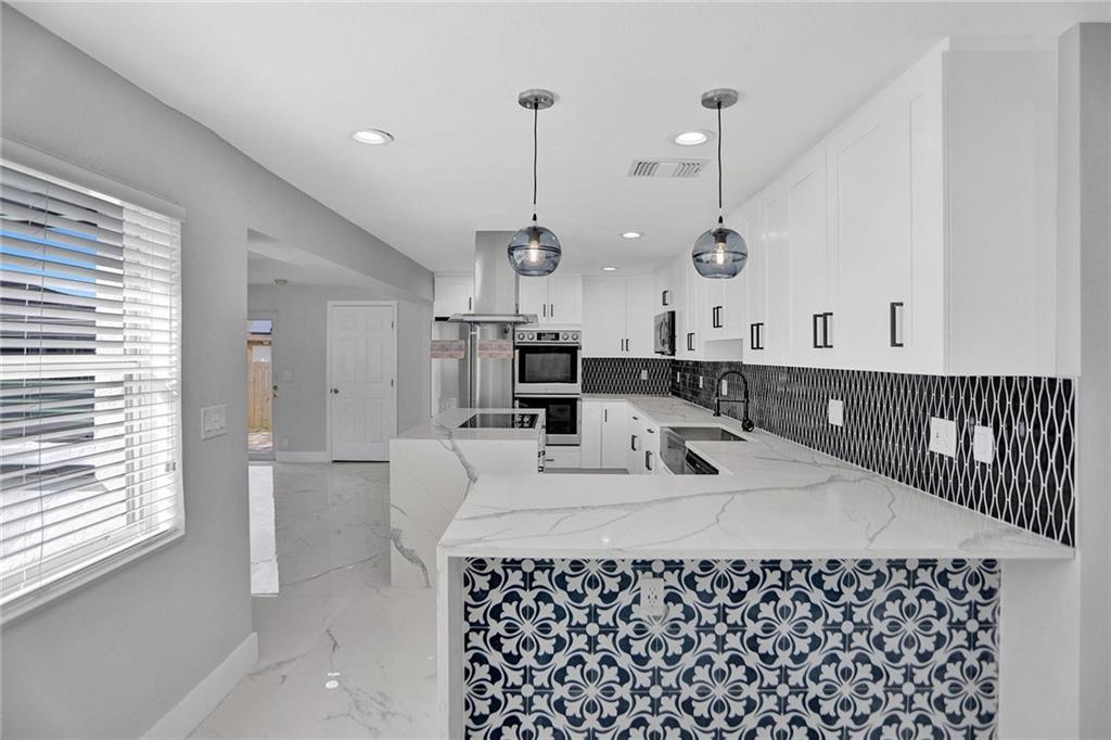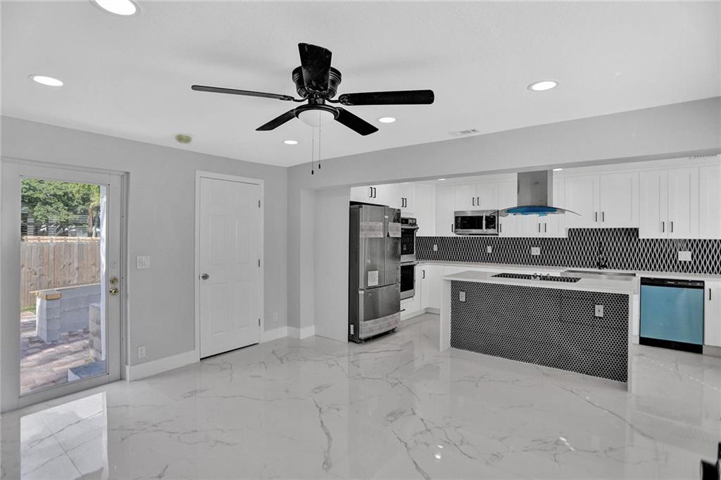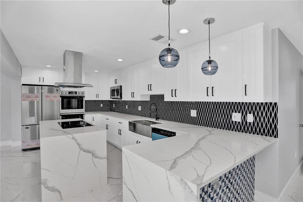 Completely remodeled 3 BDR/2 BTH SFH, Features brand-new metal roof (Jul. 2021). Large kitchen features sitting island & peninsula, Qtz countertops, S/S appliances, farmhouse sink, cooktop stove, dble oven & pantry. Both BTHs renovated with porcelain tile on walls, mosaic designs, frameless shower doors & new vanities. All new recessed lighting in the entire house. Checkout the amazing statement walls in the living and family rooms. Brand new tankless water htr. 32x32 porcelain tile throughout. Outside features include large corner lot (7,500 sq ft), fully fenced yard, circular driveway, new SOD, and room for pool. House has full hurricane protection (approved panels on windows exit doors are impact). All case iron piping changed out to PVC.