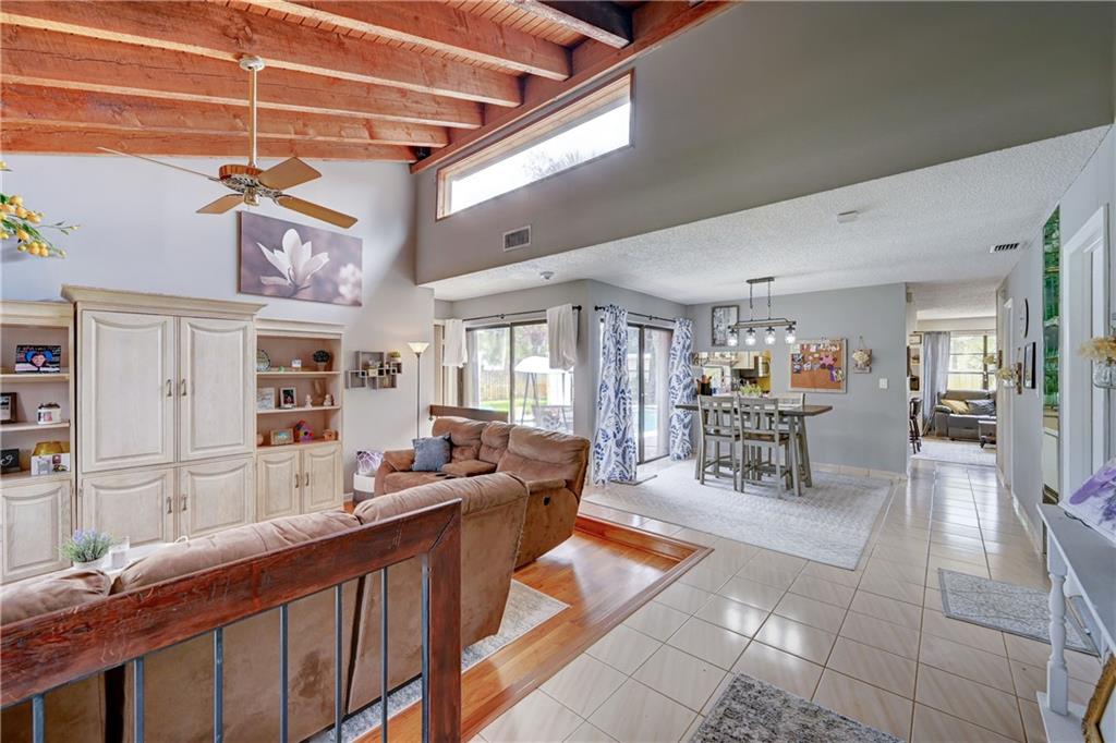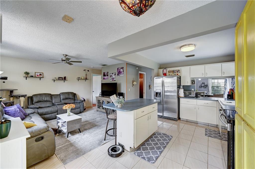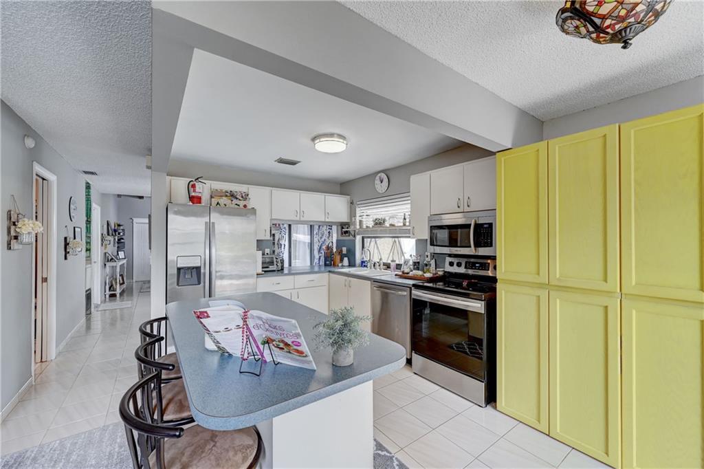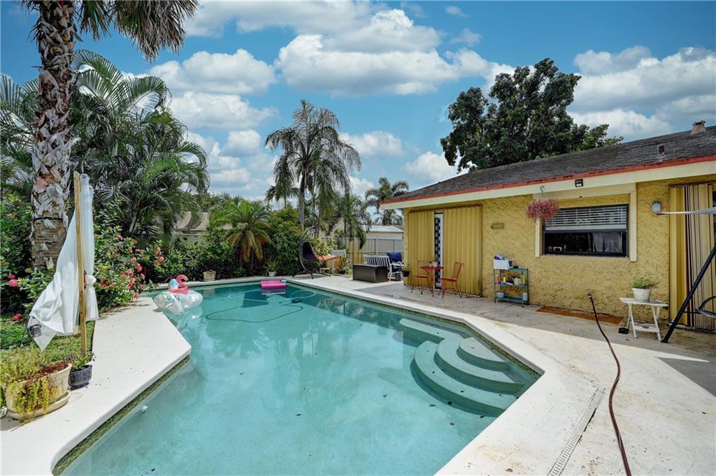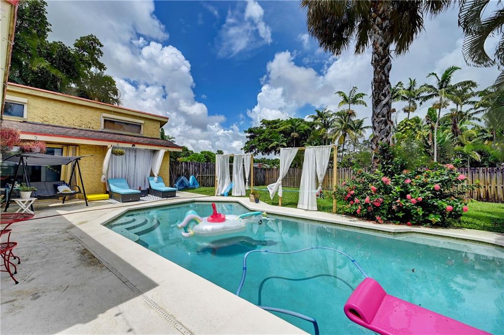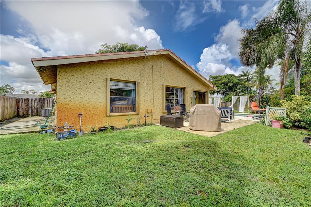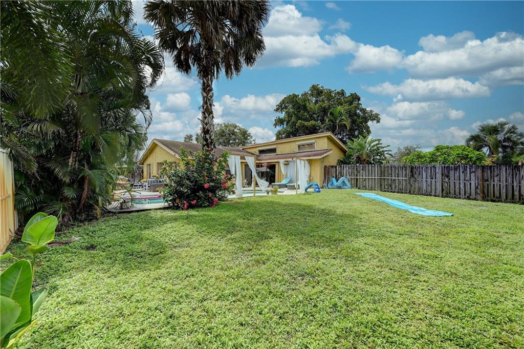 Almost 2000 square ft under air home on an oversized corner lot, split floor plan, vaulted ceilings, open kitchen with an island, stainless steel appliances, 2 car garage and a pool. Brand NEW ROOF going on, 6 months old AC, Perfect house for entertaining, sunken living room, family room, 5 sets of sliders, 4 open to the pool and one to back of home. Great neighborhood close to beaches, airport and dining. Hurricane shutters.