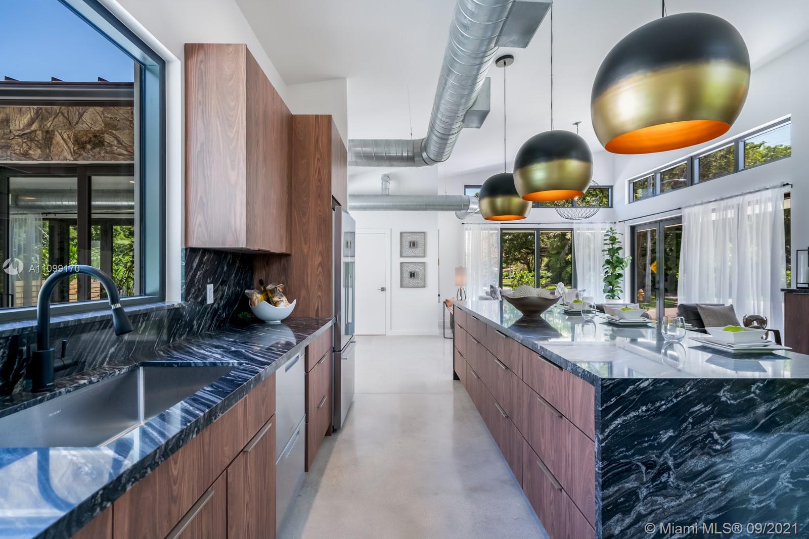 Introducing Dragonfly, the most iconoclastic new home built in Miami Shores. The Corbusier and Mies van der Rohe inspired pool home reveals “less is more” design- three planar forms, clean simple lines and honest use of materials, creating a rectilinear pedestal floating above the natural habitat. Unobstructed open free flow interiors wrapped in floor to ceiling impact glass walls and doors for abundant natural light. Triple single-pitched roofs create the iconic dragonfly form, with sloped soaring 16 ft ceilings and seamless indoor-outdoor living. Great features: luxe eat-in kitchen, artisan polished concrete floors, exposed industrial AC ducts, custom closet systems, designer baths and access to lush gardens from every room. For a truly unique non-traditional design, discover Dragonfly!
