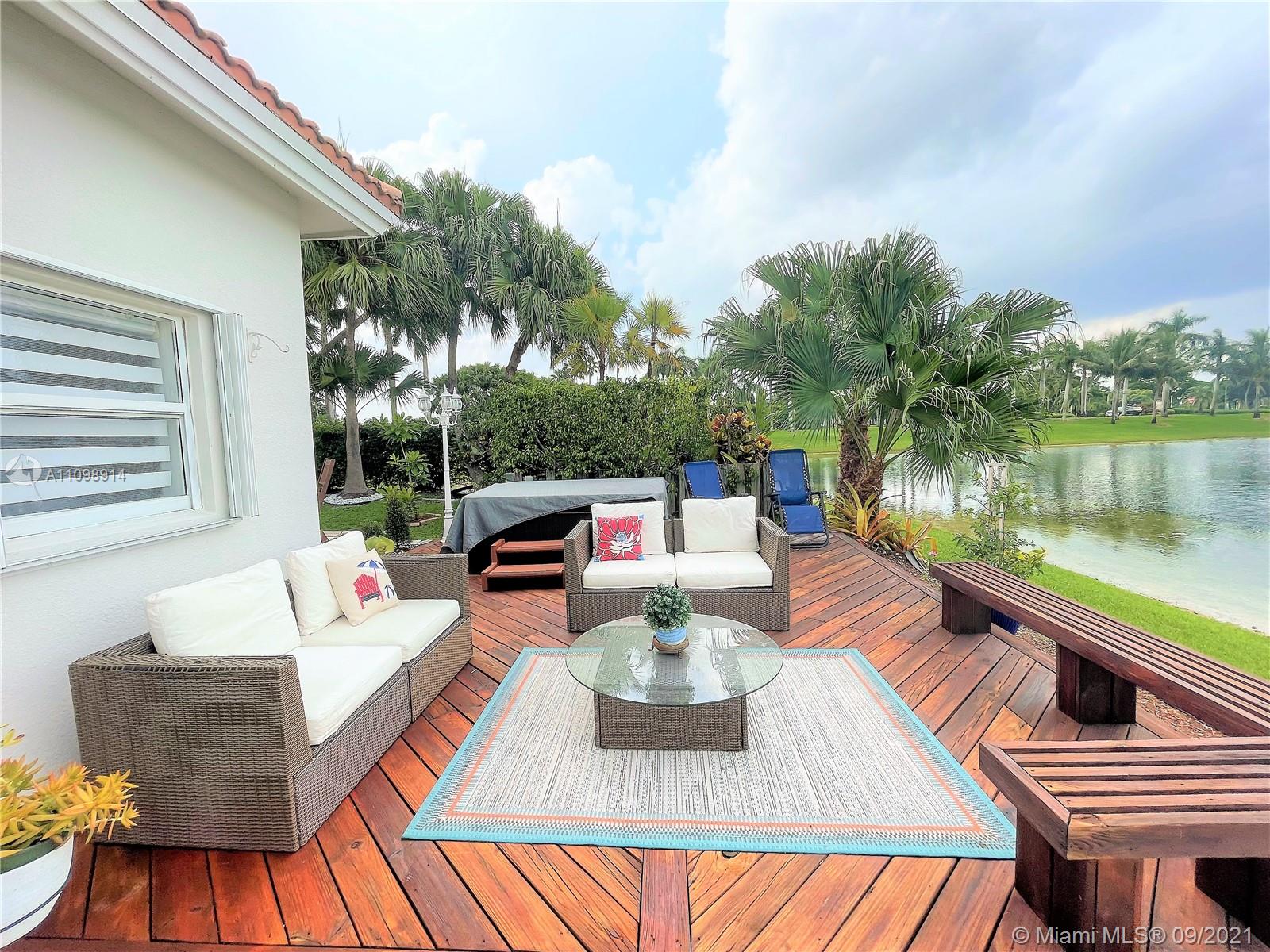 Great corner house in the prestigious community of Doral Isles Beautiful lake front, one story single family home, featuring 4 bedrooms and 2 full bathrooms 2 cars garage plus up to 4 or more cars driveway, accordion shutters MASTER BED LAKE VIEW, WALKING CLOSET, MASTER BATHROOM WITH DUAL SINK AND HOT TUB IF YOU LIKE TO RELAX AND ENTERTAIN ENJOY THE BIG PATIO, HANG THE HAMMOCK OR TAKE A BATH AT THE OUTDOOR JACUZZI-NO NEIGHBORS ON BACK THIS WILL NOT LAST. Doral Isles' clubhouse has it all: pools, restaurants, huge gym, tennis courts, soccer fields, basketball courts, sauna, beach volleyball, private beach, entertainment room, event room, and more! 60 Days Post Occupancy after closing date