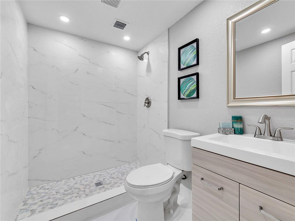 Unbelievable upgraded home ready to move in. Large, bright and with lots of room inside and out, this home has it all. Brand new roof, kitchen with soft closing cabinets, calacatta countertops, SS appliances, gorgeous waterproof vinyl flooring throughout, modern fixtures, beautiful 3 full bathrooms, split master bedroom, inside laundry, and much more. Oversized yard with new sod, irrigation system and privacy areca palm hedge, has more than enough room for a pool and many other entertainment possibilities. Separate utility shed is perfect for storage or workshop room. Located in highly desirable Pompano/Deerfield line, this amazing home is minutes from the beach, newly developed shopping centers and all East living has to offer. Can't miss!!