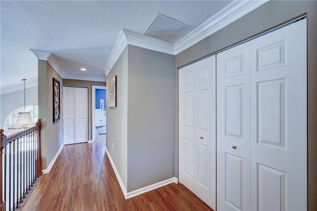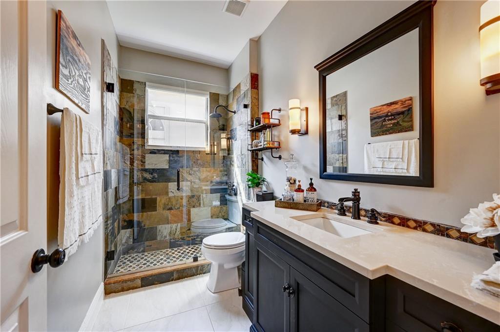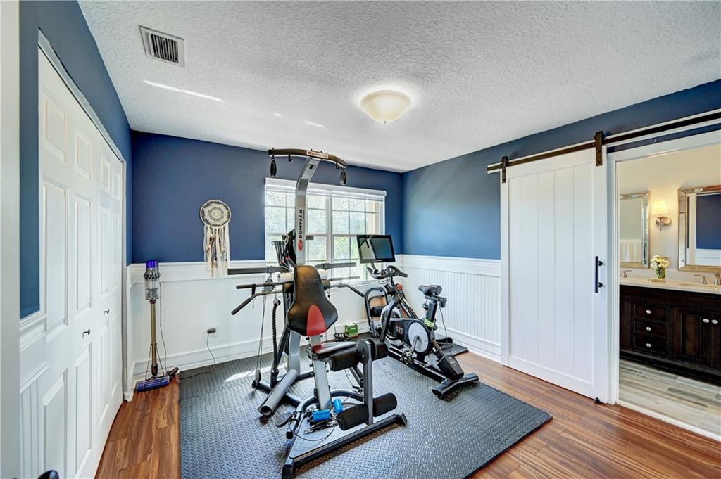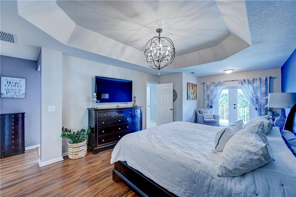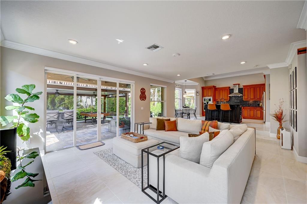 2978 sq ft home in gated community with natural light and custom upgrades throughout that include Cat5 cable and hurricane shutters. Modern floor plan with large living spaces and vaulted ceilings. Kitchen has granite counters, stainless 3-door fridge (Samsung), dishwasher, built in oven, stove and microwave (LG). 2 new central A/C units (Carrier) with Smart Thermostats. New exterior paint. Master bed has his/her bathrooms with shared shower, his/her walk in closets that measure 10'x5' and 7'x5' and French doors onto a balcony. Entertainer's paradise with privacy landscaping, putting green, Pergola with shade screens (can be lowered/raised), recessed lighting, TV, grill, fridge and pool table with table top/ping pong. Low HOA fee @ 145/mo (includes internet, pool, gym, 24hr security)