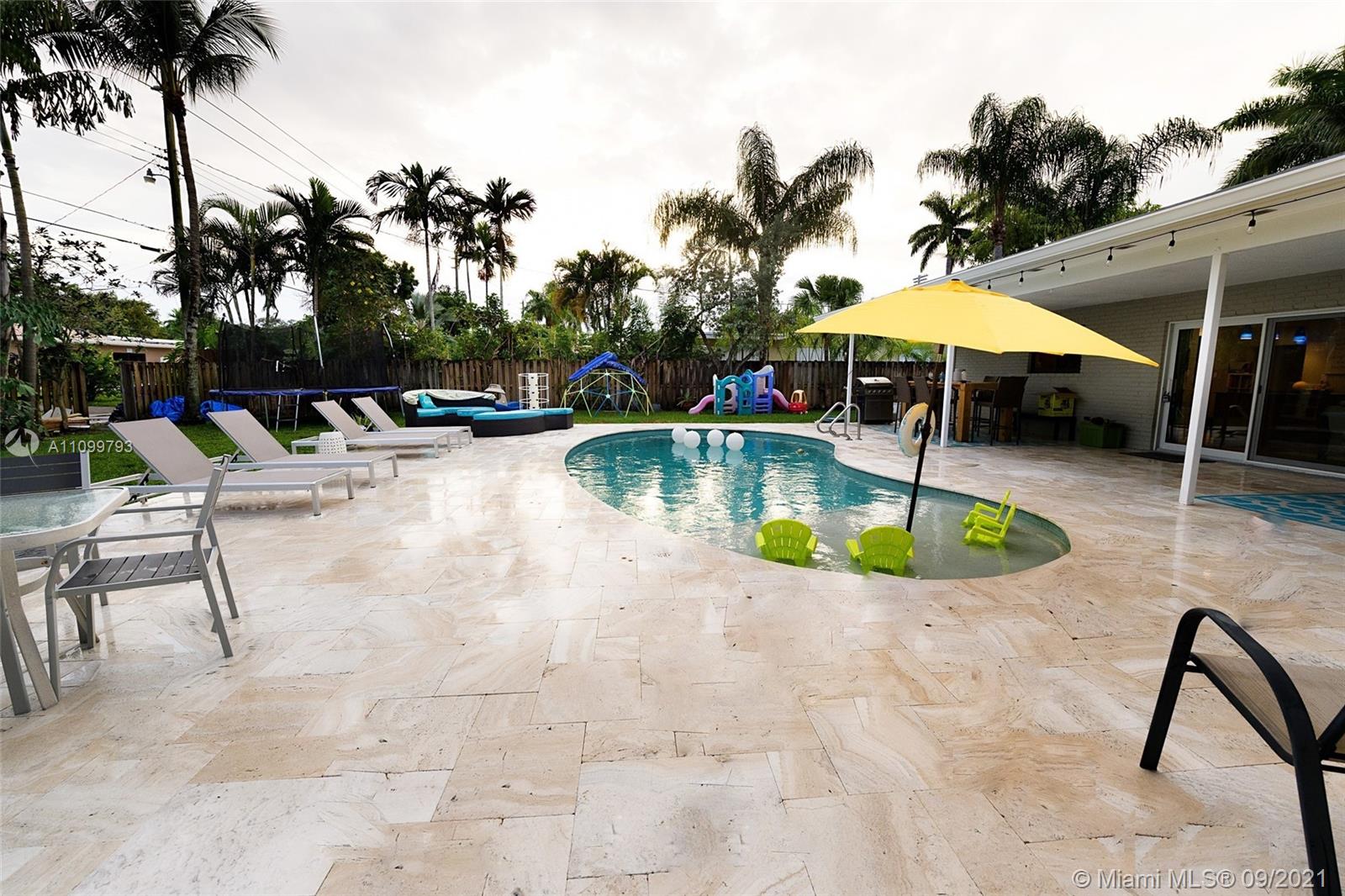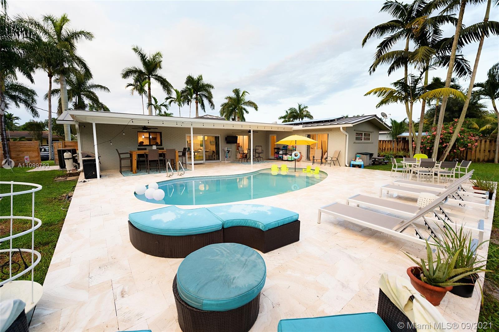 Beautiful 4 bedroom 2 bath remodeled pool home in one of the most desirable areas in Hollywood Hills. This is not a house, this is a home. Large open kitchen with custom wood cabinets, granite countertops, stainless steel appliances. Wood floors throughout. Brand 2021 new metal 50-year roof, new 2021 25-year solar panels, partial hurricane windows and doors, new 2021 electric, gorgeous remodel resort-style pool surrounded by Travertine. You will feel as if you are vacationing in your own home. Large lushly landscaped double lot with RV or boat parking. Large multi-purpose storage shed. Steps away prestigious Chaminade-Madonna prep school. Centrally located. Close to restaurants, place of worship, parks and major hwys. This is the home you have been waiting for.
