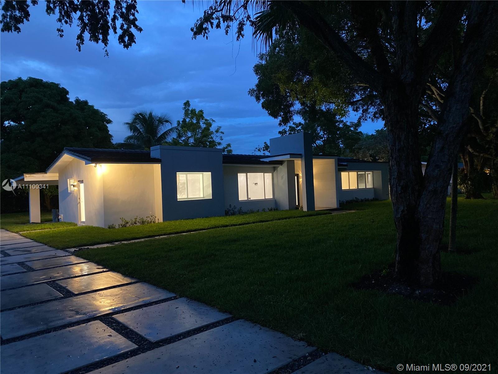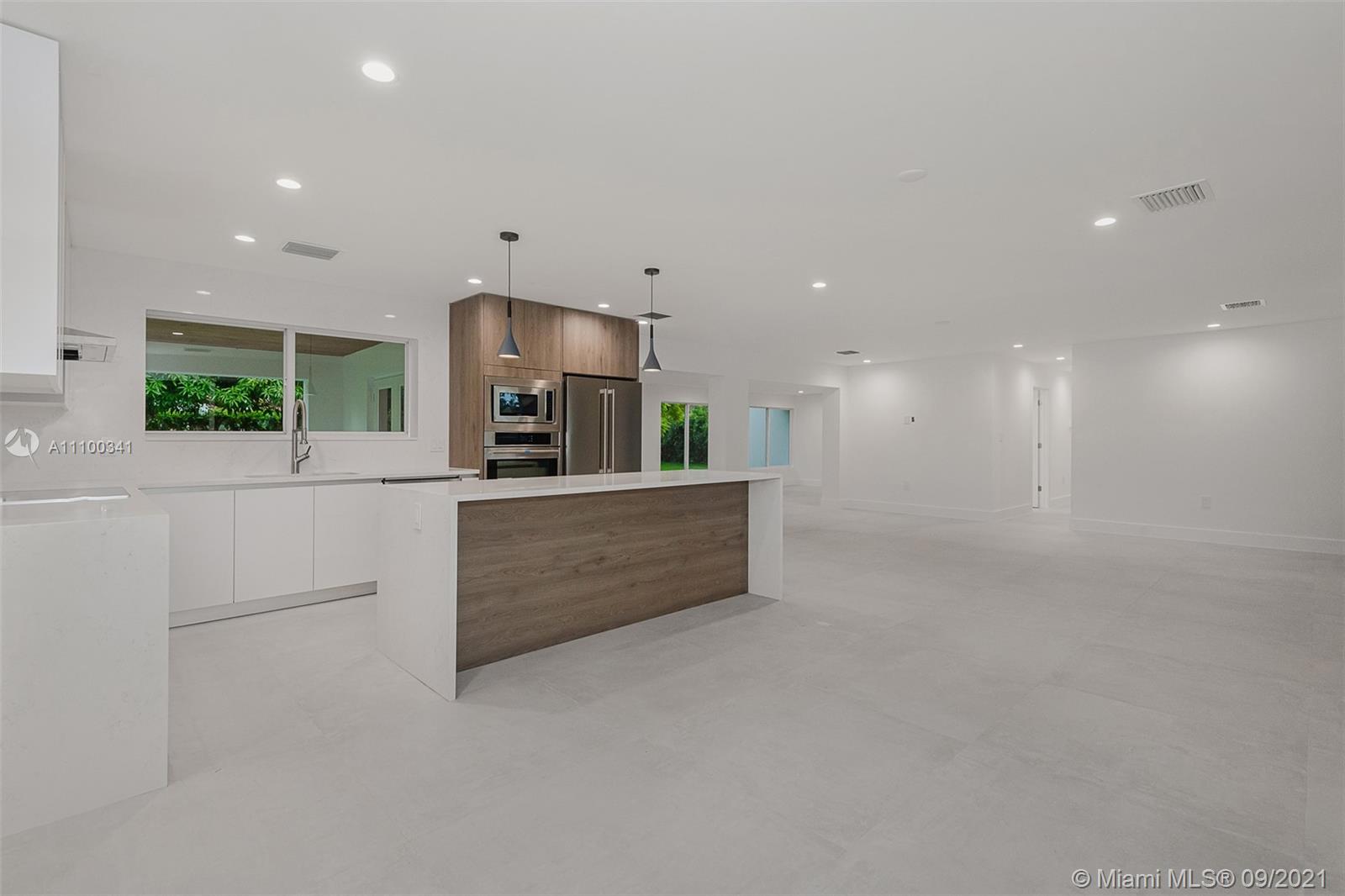 2515 sq.ft. completely renovated home in the heart of Pinecrest. Over 1000+ sq ft were added to the previously existing structure [will be updated in public records]. Open floor plan features large rooms with impact windows throughout, beautifully illuminating the entire residence overlooking the gorgeous grounds with mature fruit trees. Gourmet kitchen with an over-sized island, quartz countertops, and back-splash, all new Italian appliances. Huge pantry. Private master suite. Two over-sized bedrooms, sharing a large bathroom. New roof, new electric, new plumbing, new A/C, new driveway, new everything. This is practically a newly built home; the owners spared no expense. Ample room to put in a pool of any size.