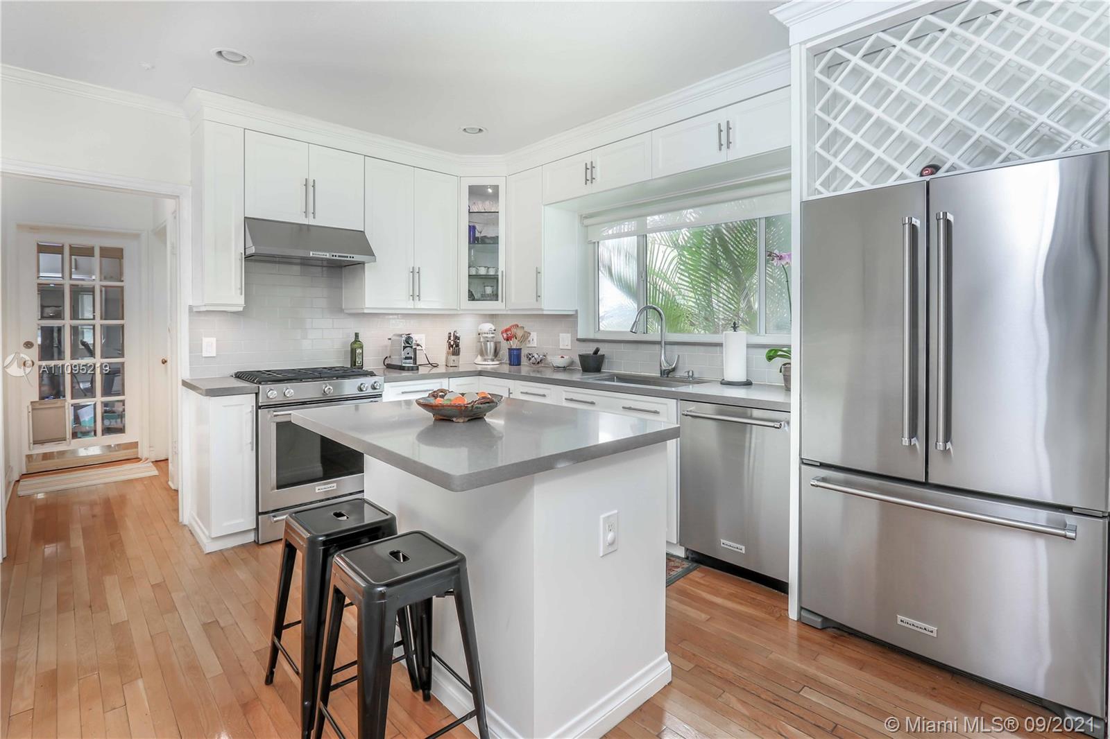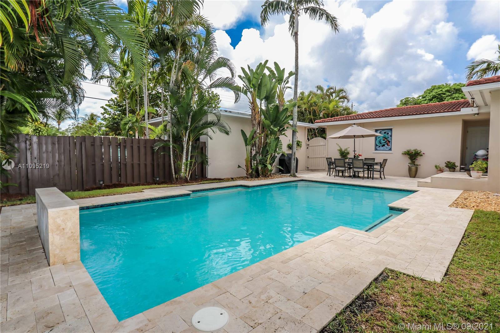GREAT OPPORTUNITY IN THE HEART OF HOLLYWOOD LAKES! MAIN HOUSE 3BED / 2BATH FORMAL LIVING ROOM AND DINING ROOM ~ VOLUME CEILINGS ~ WOOD FLOORS ~FAMILY ROOM WITH BEAUTIFUL TERRAZZO FLOOR ~KITCHEN FEATURES WHITE CUSTOM CABINETS, STAINLESS-STEELAPPLIANCES, GAS STOVE AND ISLAND WITH SITTING AREA ~ BEAUTIFUL SALT WATER HEATED POOL WITH WATERFALL SURROUNDED BY TRAVERTINE PATIO AND ROOM FOR OUTDOOR SITTING AREA GREAT FOR ENTERTAINING ~TROPICAL LANDSCAPE ~ PRIVATE FENCED BACK YARD ~ 2 CAR GARAGE ~ SPACIOUS DRIVEWAY IN THE BACK FOR AT LEAST 4 CARS. GUEST HOUSE OFFERS SPACIOUS 1BED / 1BATH GRANITE COUNTERTOPS, STAINLESS-STEEL APPLIANCES ~ TERRAZZO FLOORS THROUGHOUT ~ FENCED BACK YARD ~1 CAR DRIVEWAY ~ NEWER ROOF AND A/C ~ SEPARATE ELECTRIC METER ~WALK TO LOCAL PARKS/DOWNTOWN AND BIKE TO THE BEACH