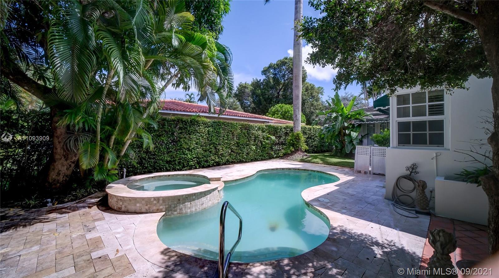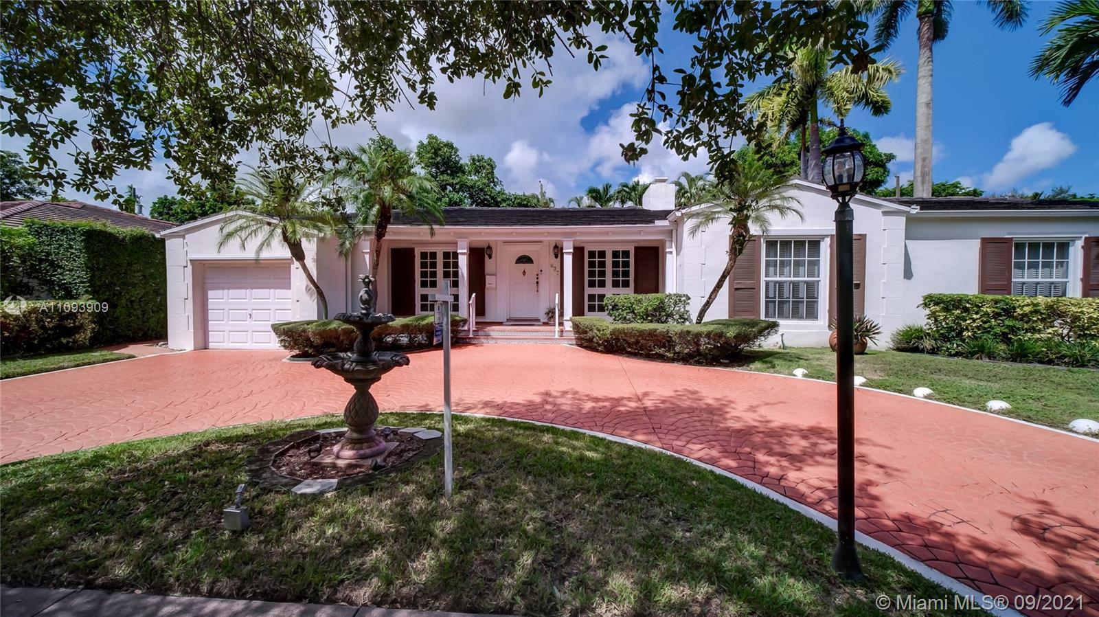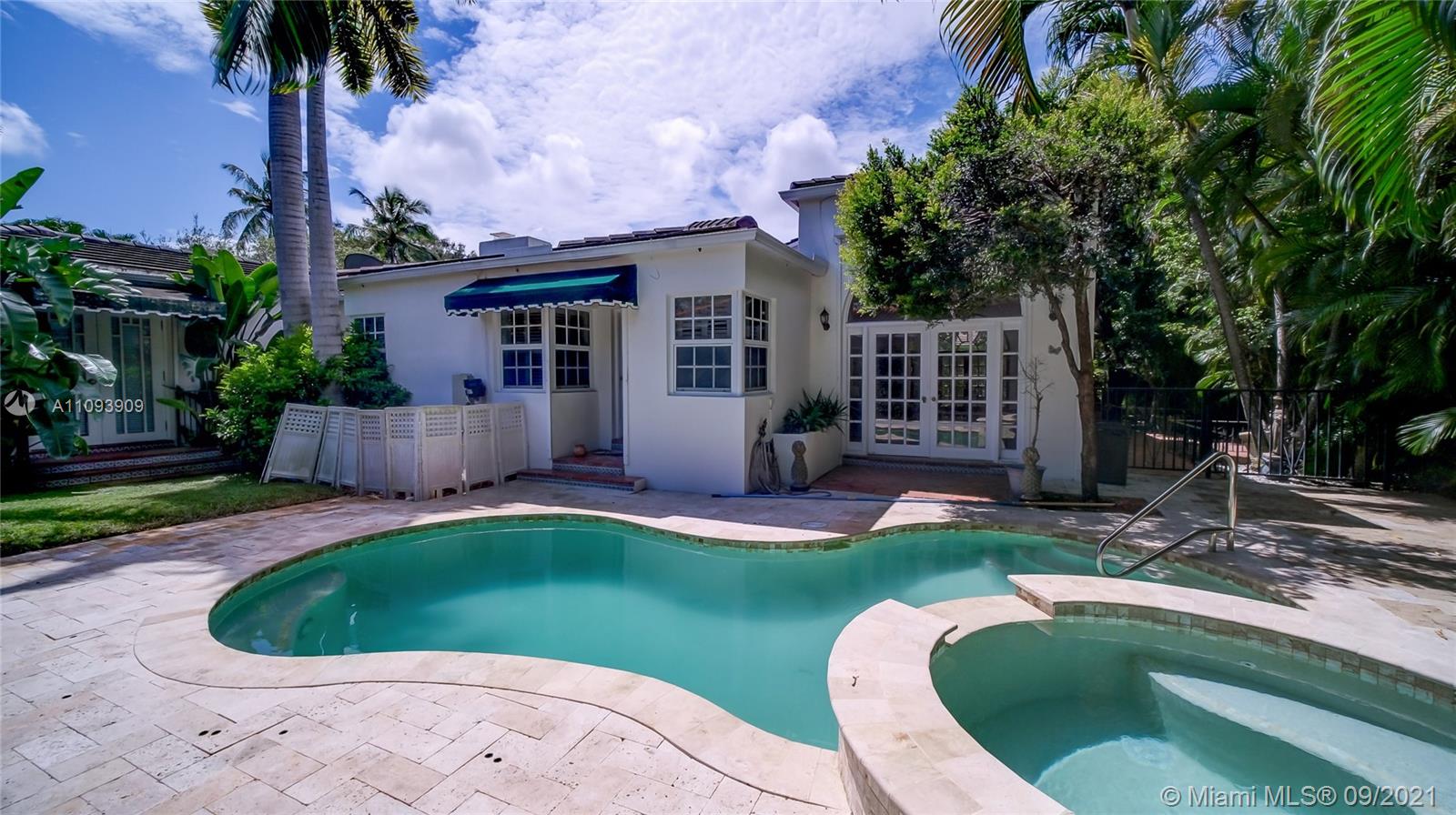 Exceptional home in the prestigious Golden Triangle of Coral Gables, close to Merrick Park, Coral Gables Library, and Miracle Mile. Located on a quiet street, this elegant home with over 3100 Square Feet features 3 bedrooms, 2 and a half bathrooms, formal living and dining rooms with hardwood floors that open into spacious and charming family room with bar and additional dining area, over 12 feet tall high ceilings, that open to a free form pool with jacuzzi with patio to make this house a very special home. The home has full generator plus high impact windows. One car garage, spacious master bedroom plus two additional bedrooms.