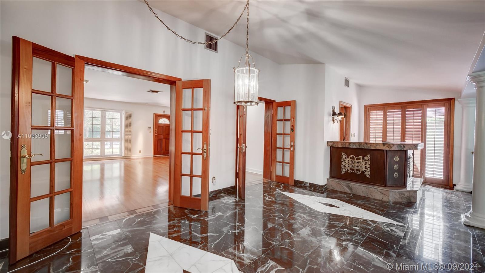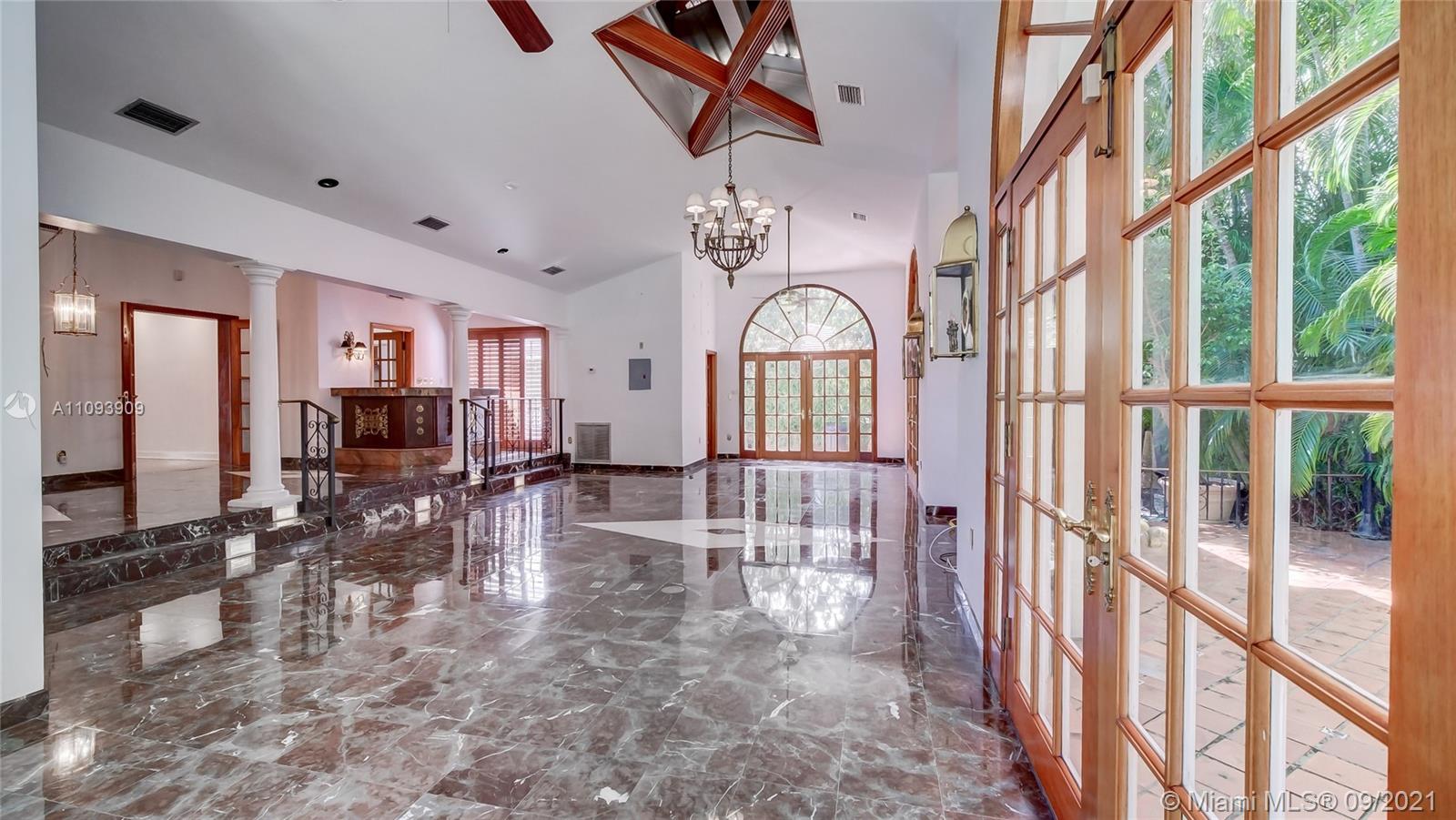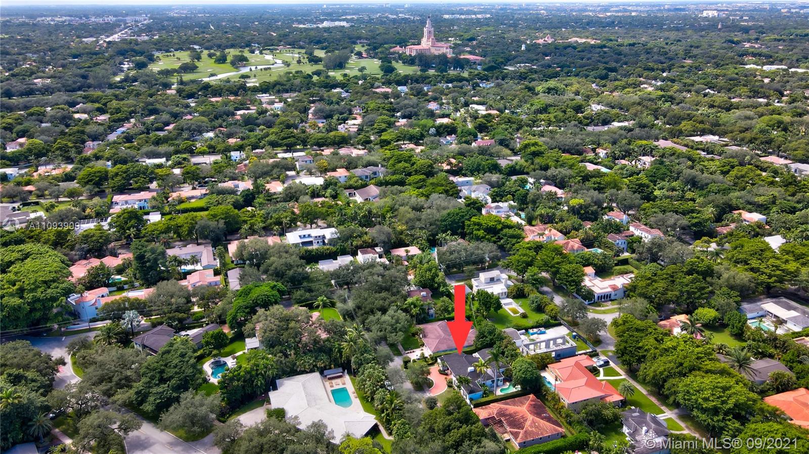 Exceptional home in the prestigious Golden Triangle of Coral Gables, close to Merrick Park, Coral Gables Library, and Miracle Mile. Located on a quiet street, this elegant home with over 3100 Square Feet features 3 bedrooms, 2 and a half bathrooms, formal living and dining rooms with hardwood floors that open into spacious and charming family room with bar and additional dining area, over 12 feet tall high ceilings, that open to a free form pool with jacuzzi with patio to make this house a very special home. The home has full generator plus high impact windows. One car garage, spacious master bedroom plus two additional bedrooms.