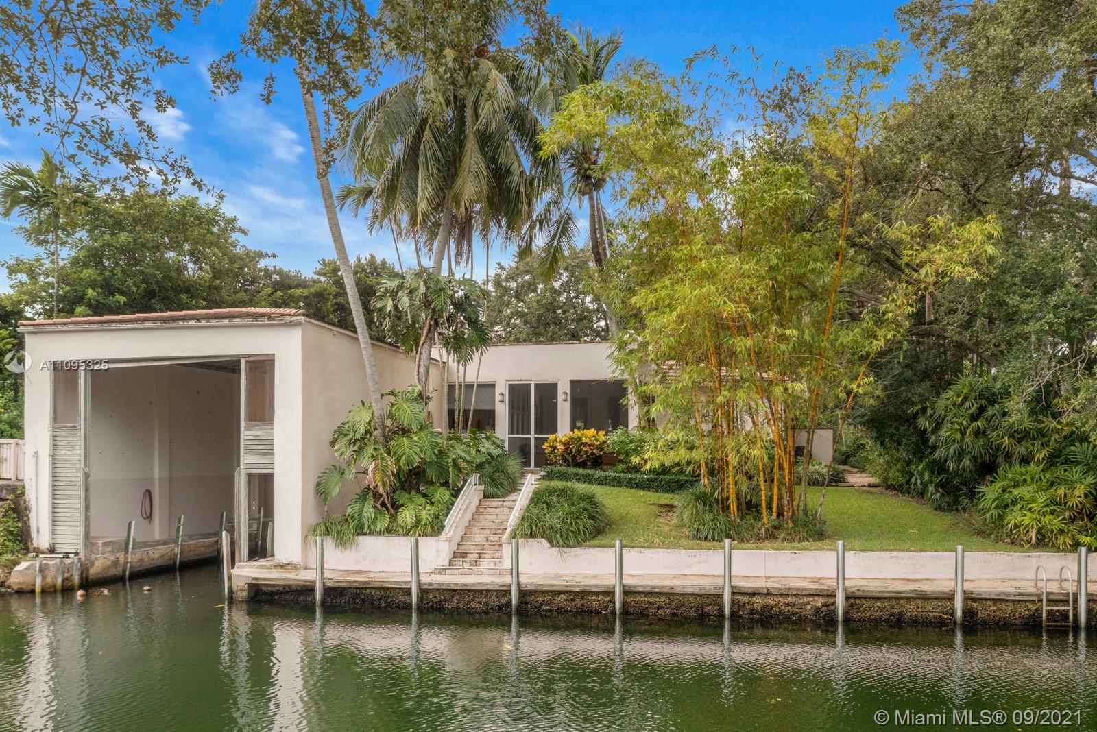 Amazing opportunity to live on the Prestigious Coral Gables Waterway with access to the Bay with both a dock and a boathouse. This charming home exudes graceful elegance. Beautifully maintained and landscaped 4 bed/3 bath home with keystone floors, impact windows and doors. Perfect home for entertaining with open living space and lots of natural light. Large master bedroom with sitting area overlooking boathouse/waterway, working fireplace, enclosed outdoor patio, kitchen features granite countertops, stainless steel appliances and eat in area.