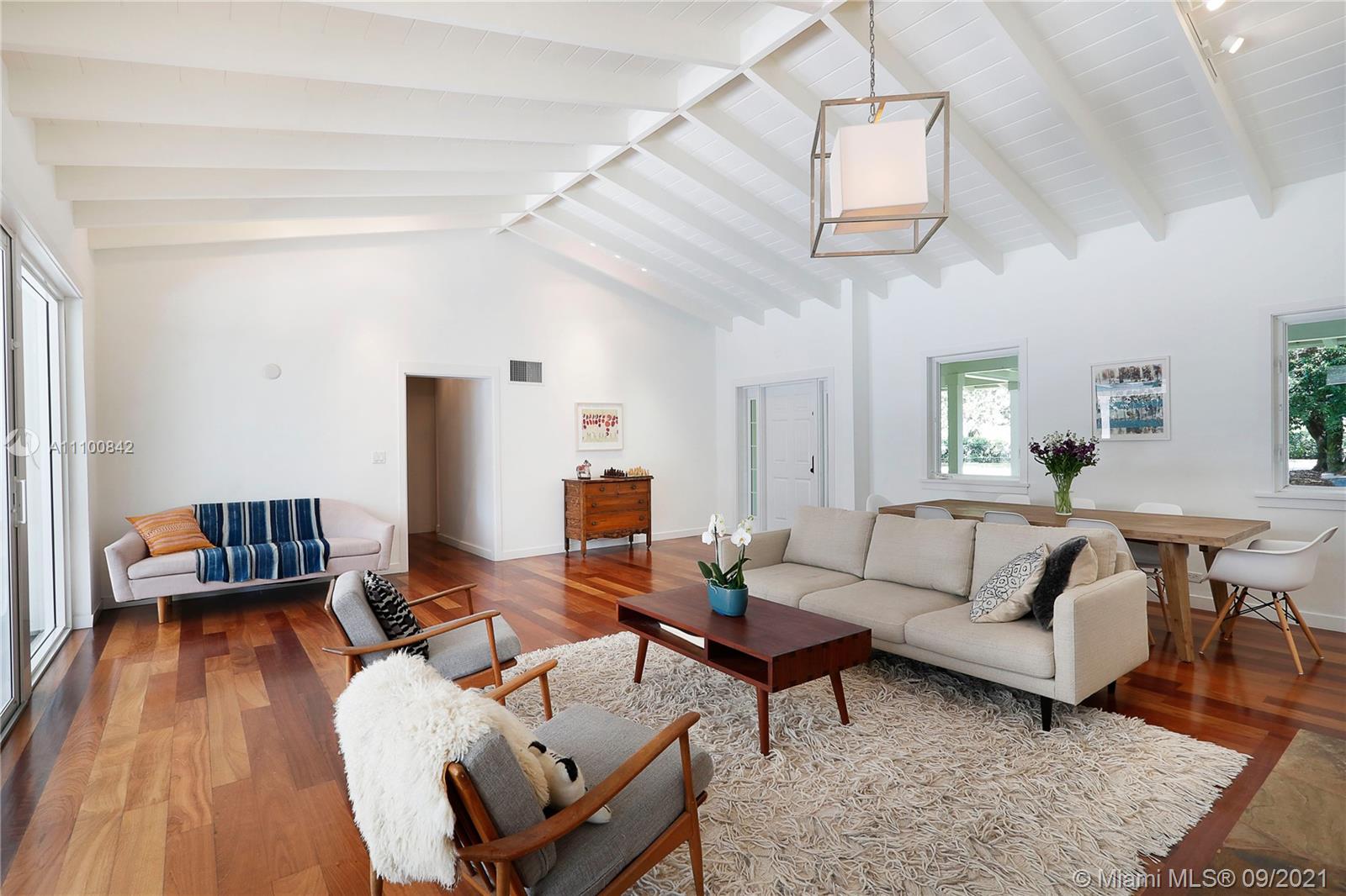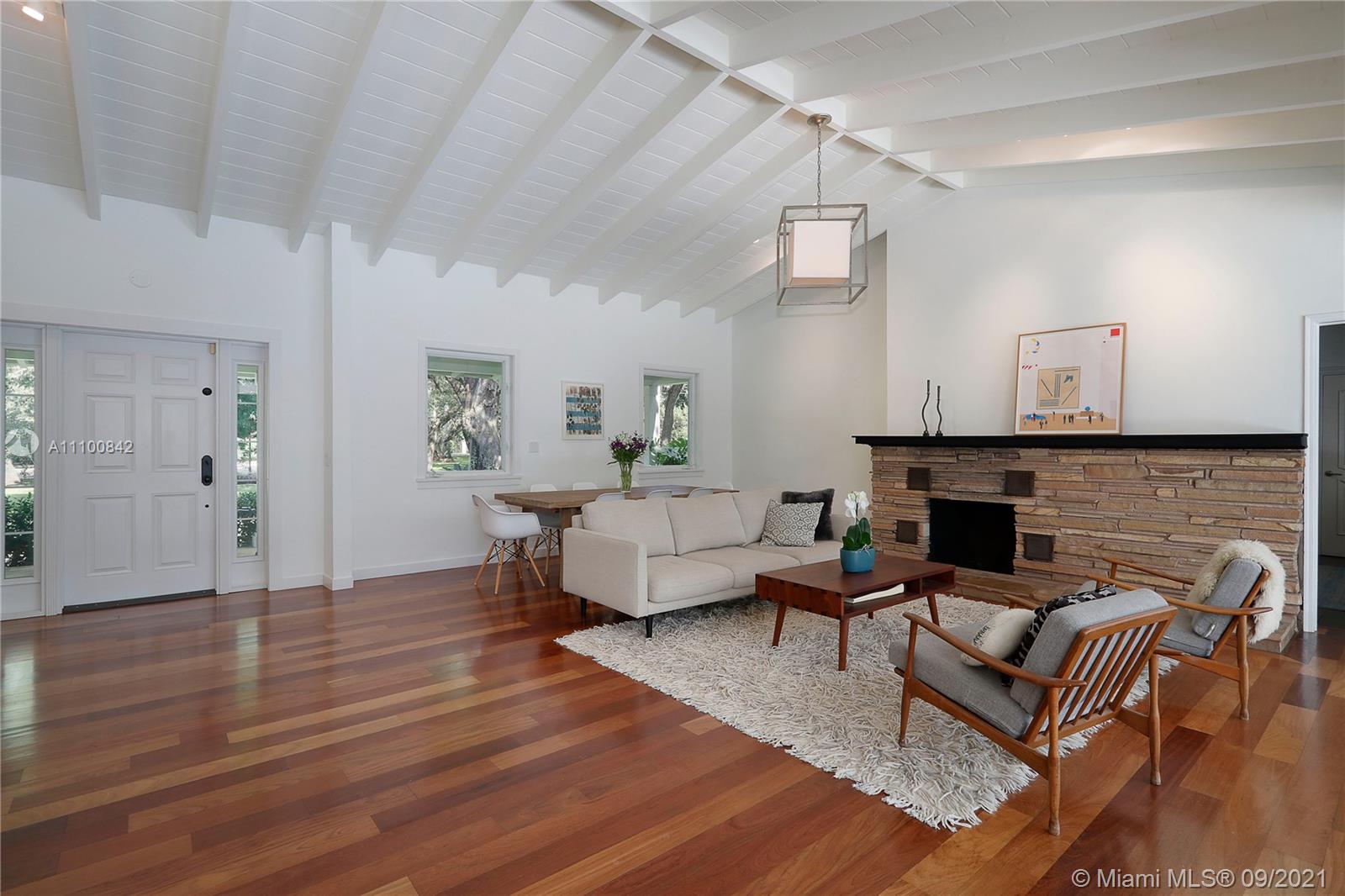 This picture-perfect Key West-style 4 BR, 4 BA home is situated on the prettiest oak-filled lot in N Pinecrest. This home brings you indoor/outdoor living is at its finest w/ covered porches on 3 sides and views of foliage from every window. Inside, the elegant formal liv & din rm features vaulted ceilings, fireplace, & impact glass sliding doors that showcase the patio, pool, & lush grounds. The spacious kitchen has an eat-in area, bench seat, high-end appliances, pantry, & sits off the sunny family room. The 2nd floor primary suite has 2 walk-in closets, lge BA with Jacuzzi tub, private office, & its own balcony. 2 more bedrooms share a bathroom upstairs, + 1 bedroom w ensuite bath downstairs. Impact glass, metal roof, 2 car gar, carport, & more in Pinecrest school district!
