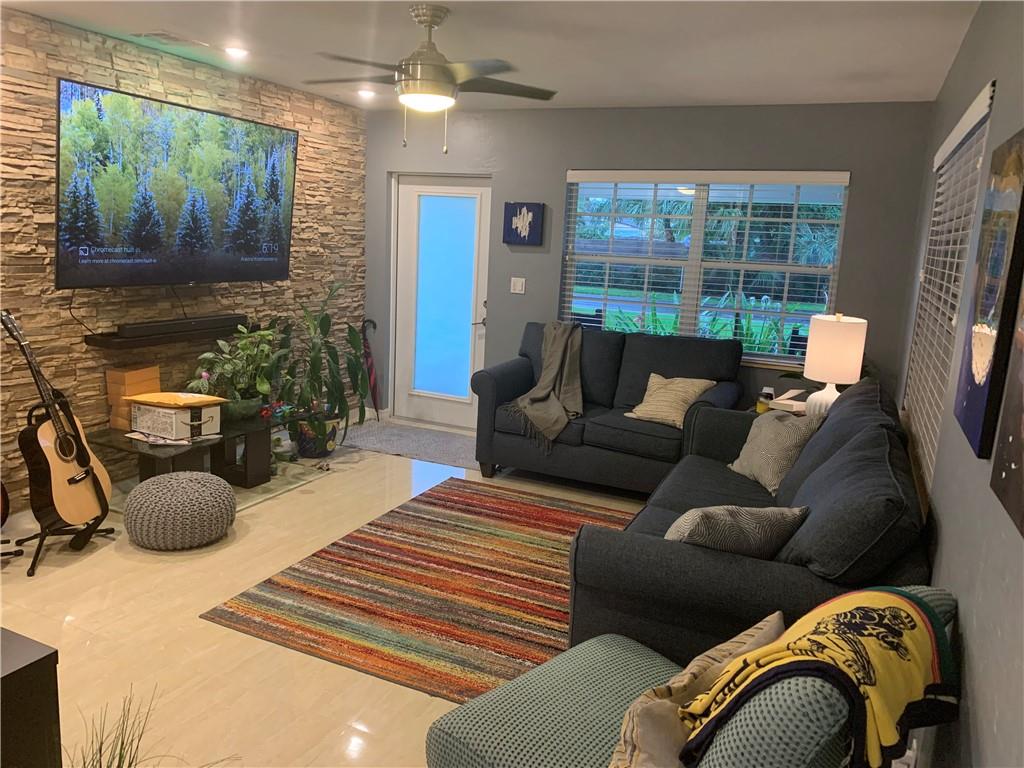 This Beautiful 3 Bedroom 2 Bathroom home features great light and a large back yard with a hot tub. This home has been renovated. The tastefully remodeled kitchen features wooden expresso colored cabinets with granite countertops and stainless appliances. There is stunning tile throughout the entire home. The bathrooms are elegant and cool. Updated electrical and plumbing (5 years), the AC is new and Roof is less than 5 years old. There is a large lush tropical back yard featuring a paver deck and hot tub. This home has a cozy rambling comfortable feel to it nice space to entertain The furniture is negotiable in the sale making it Perfect for Airbnb or keep it for yourself and enjoy all South Florida has to offer.