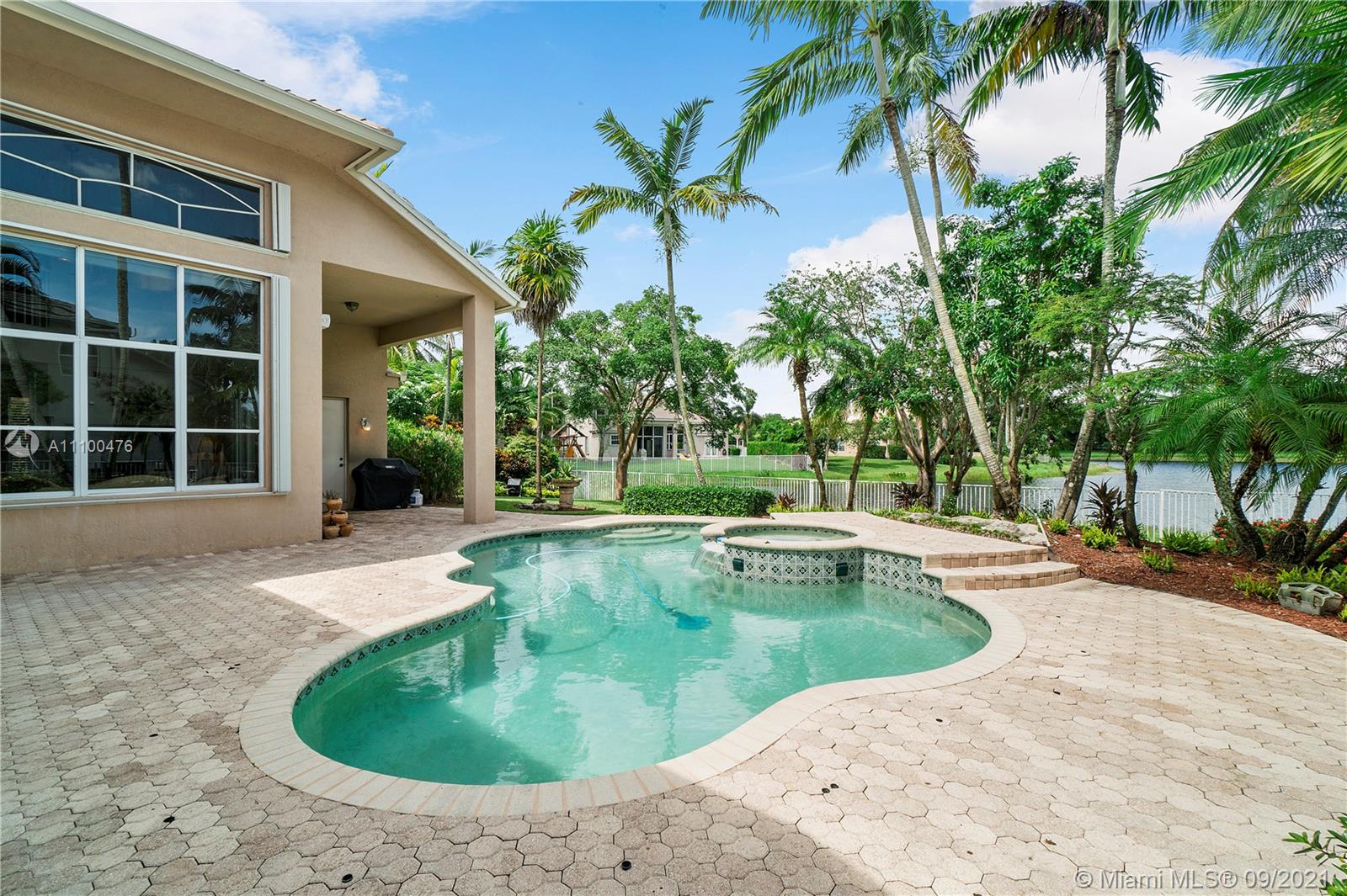 Beautiful 5 bedroom 4 bathroom lake front home in the golf community of Lake Estates. 24 hour guard gated entrance. Brand new roof, installed 2020. Volume ceilings accompanied by large windows allowing plenty of natural light throughout the home. Master bedroom downstairs + cabana bath & an additional bedroom. 3 bedrooms, 2 full bathrooms upstairs, one being a Jack & Jill bathroom. Serene backyard with a beautiful pool + spa over looking the lake surrounded by tropical landscaping. Laundry room with sink & plenty of storage, plus large 2 car garage. HOA paid quarterly & includes ADT alarm services and basic cable. A rated school zone for Elementary, Middle & High School.