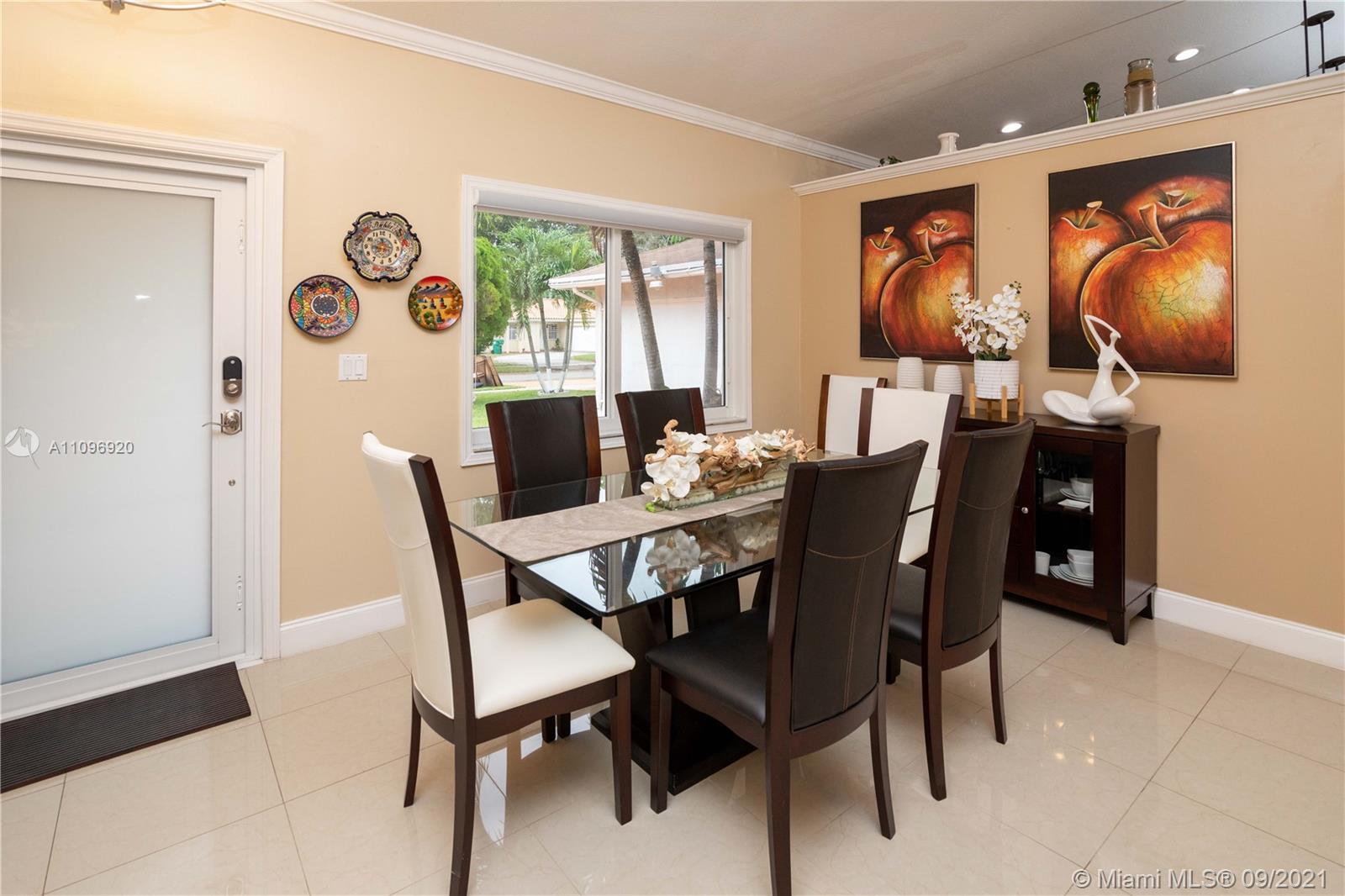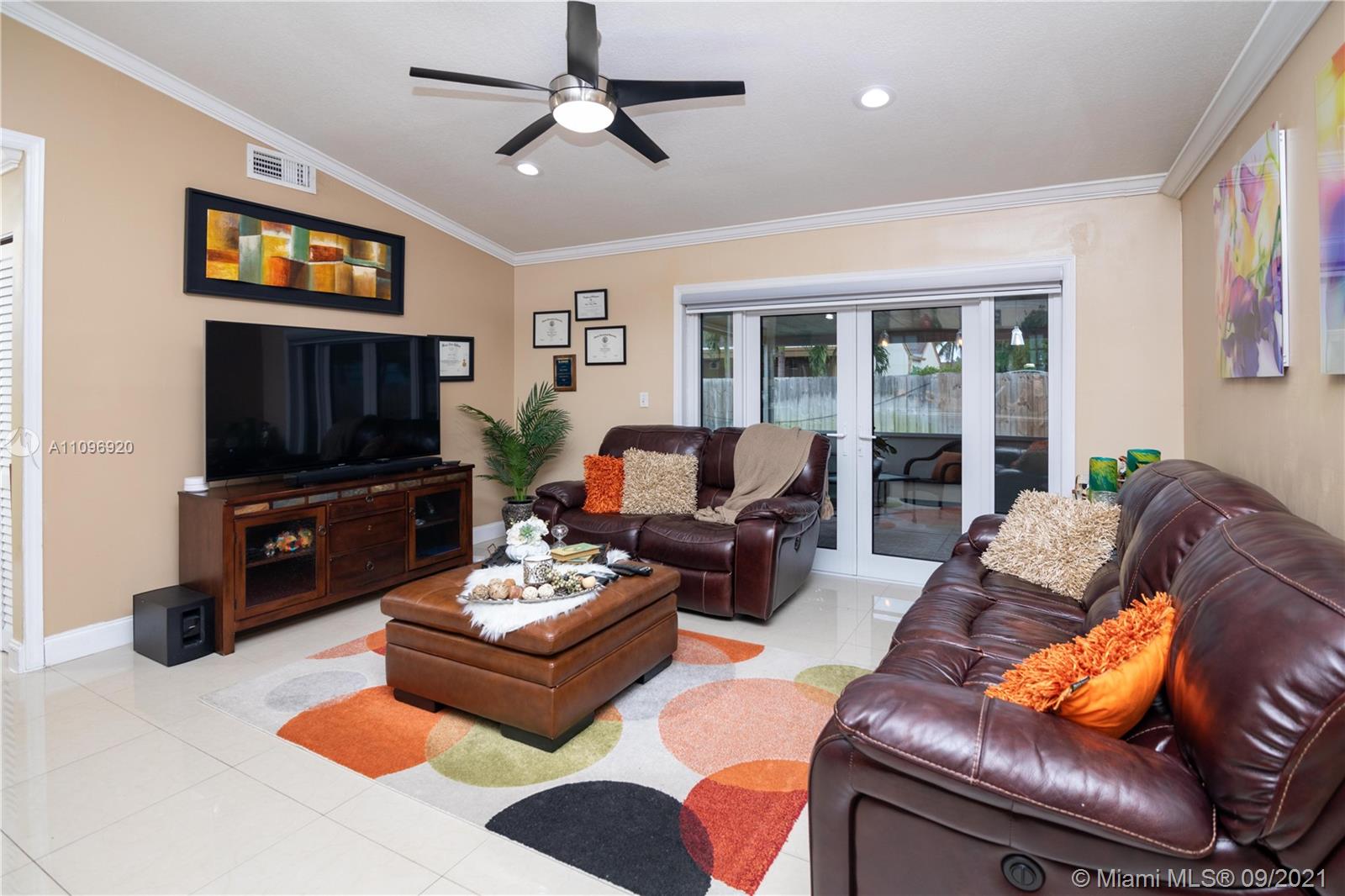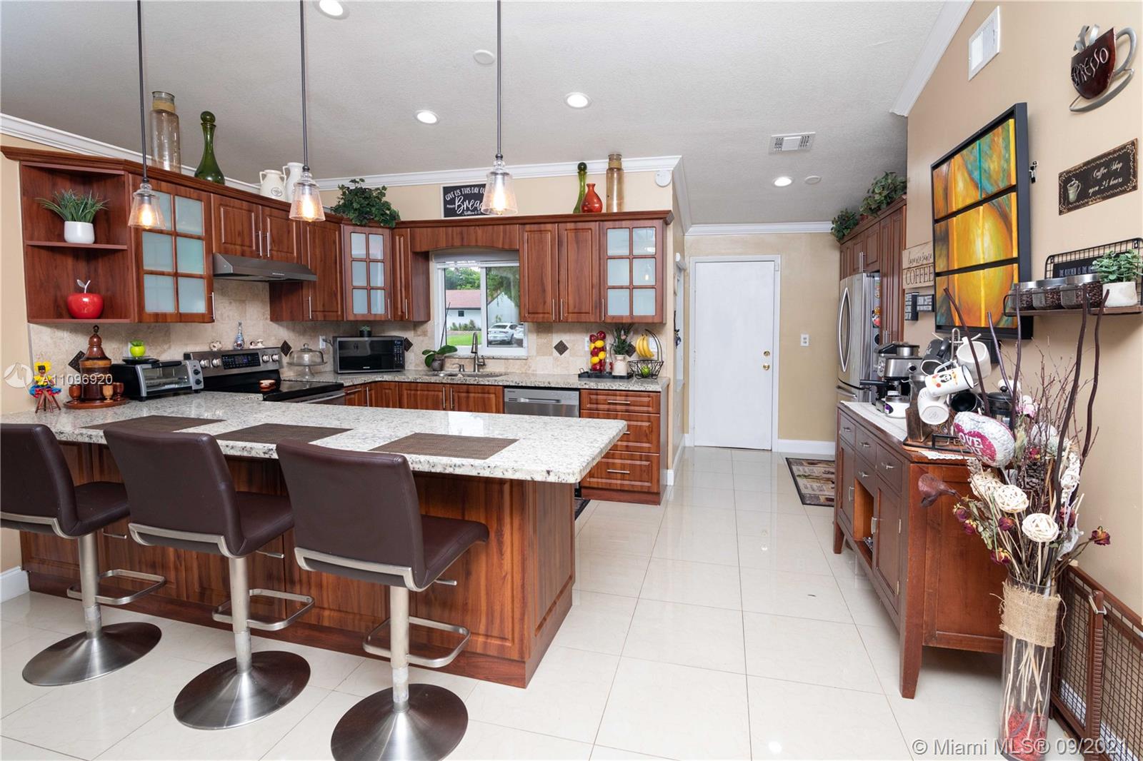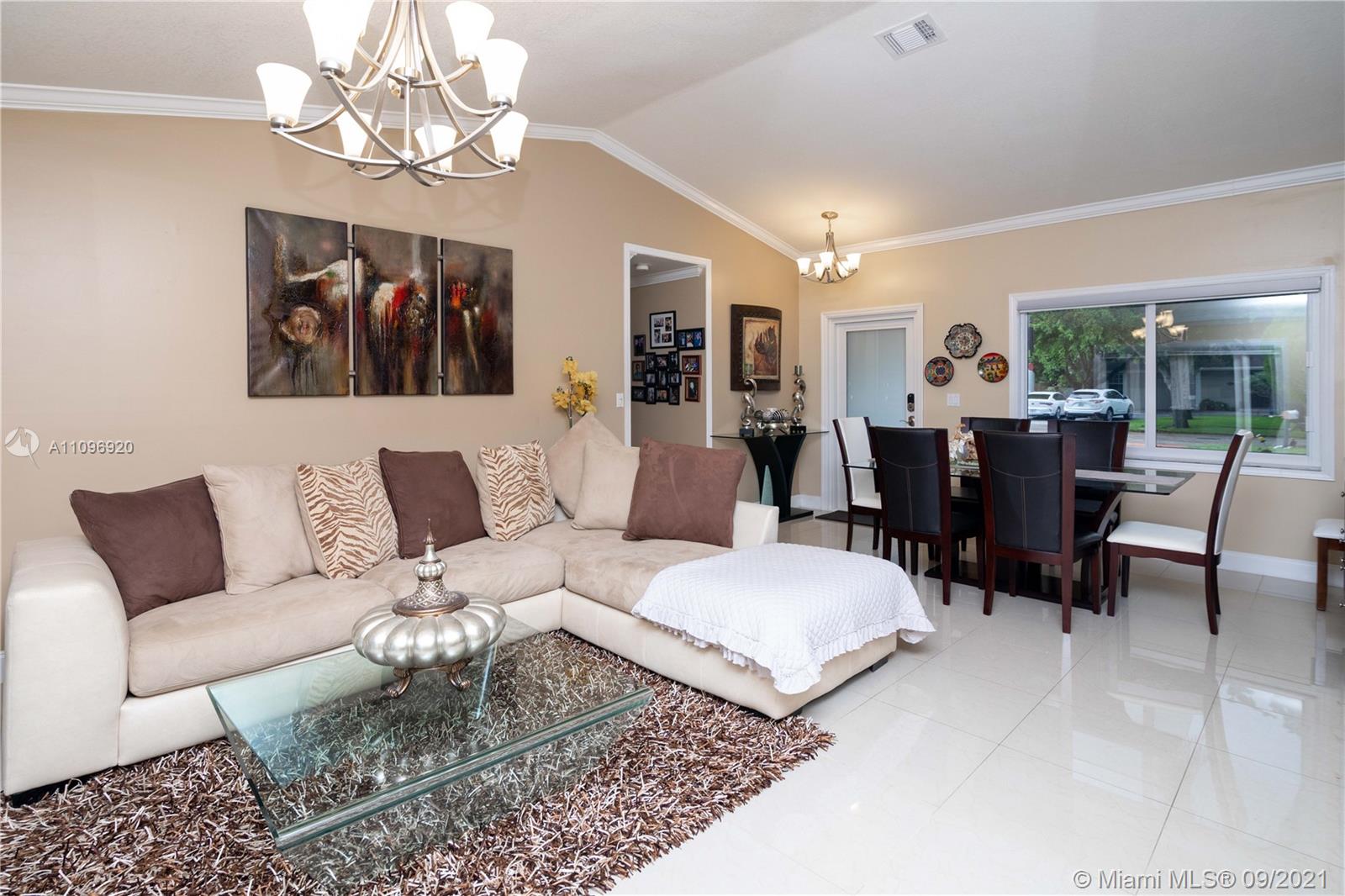 Beautiful house in Country Lakes Manor. Very spacious living, dining and family rooms. High ceilings. Tile floor through the house. Amazing kitchen built in 2017 with granite countertop and stainless-steel appliances (no microwave). Impact doors and windows in all the house. Crown molding, modern new blinds, roof was replaced by previous owner in 2005.Garage converted into a 4th bedroom with full bath. Garage stove and refrigerator will not be included in the sale. Huge backyard with space for pool with Screen terrace. Big driveway with parking space for 8 cars. Don’t miss it!!!