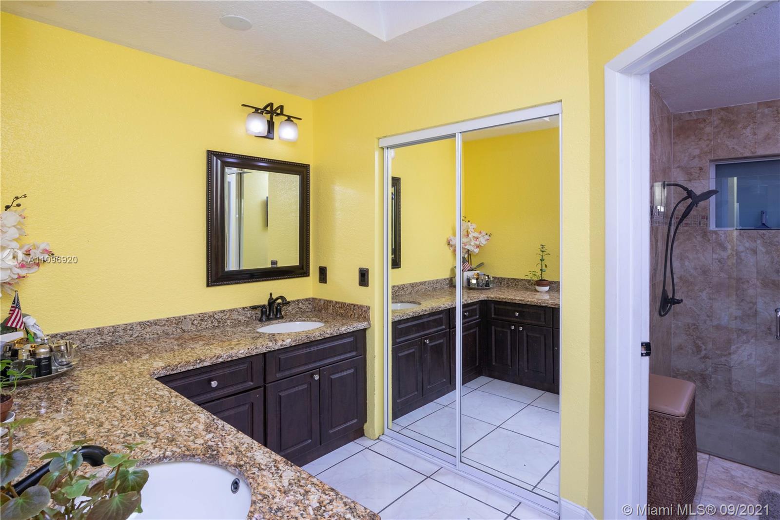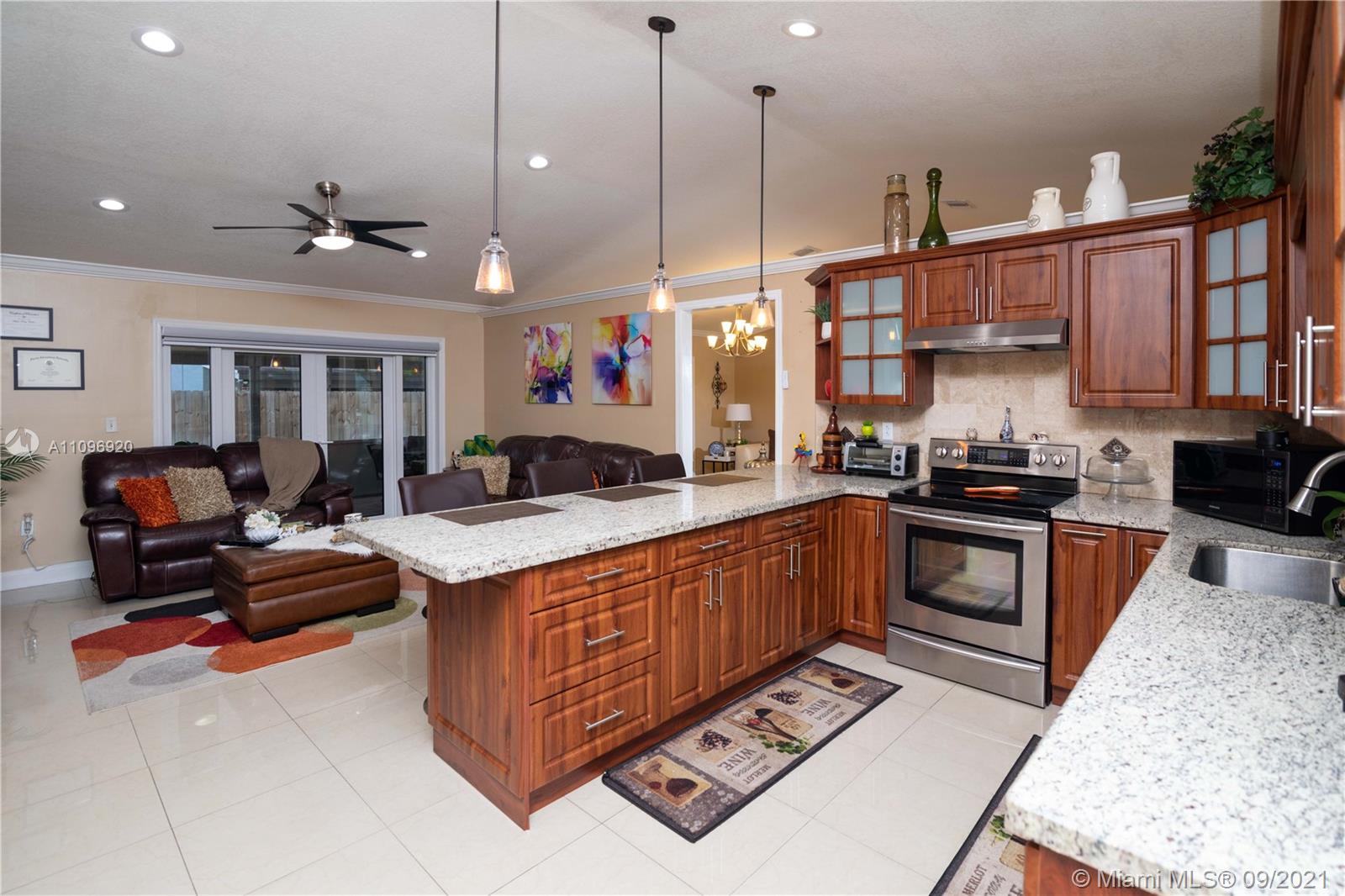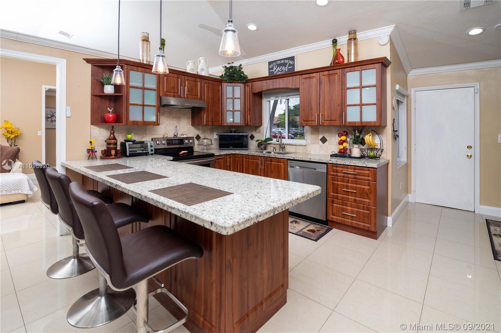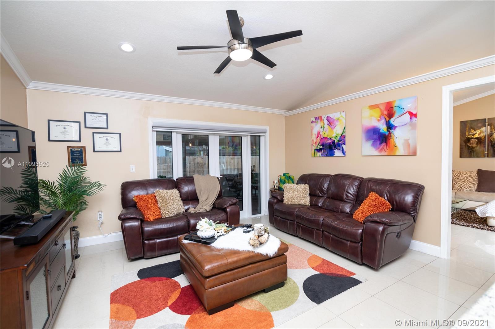 Beautiful house in Country Lakes Manor. Very spacious living, dining and family rooms. High ceilings. Tile floor through the house. Amazing kitchen built in 2017 with granite countertop and stainless-steel appliances (no microwave). Impact doors and windows in all the house. Crown molding, modern new blinds, roof was replaced by previous owner in 2005.Garage converted into a 4th bedroom with full bath. Garage stove and refrigerator will not be included in the sale. Huge backyard with space for pool with Screen terrace. Big driveway with parking space for 8 cars. Don’t miss it!!!