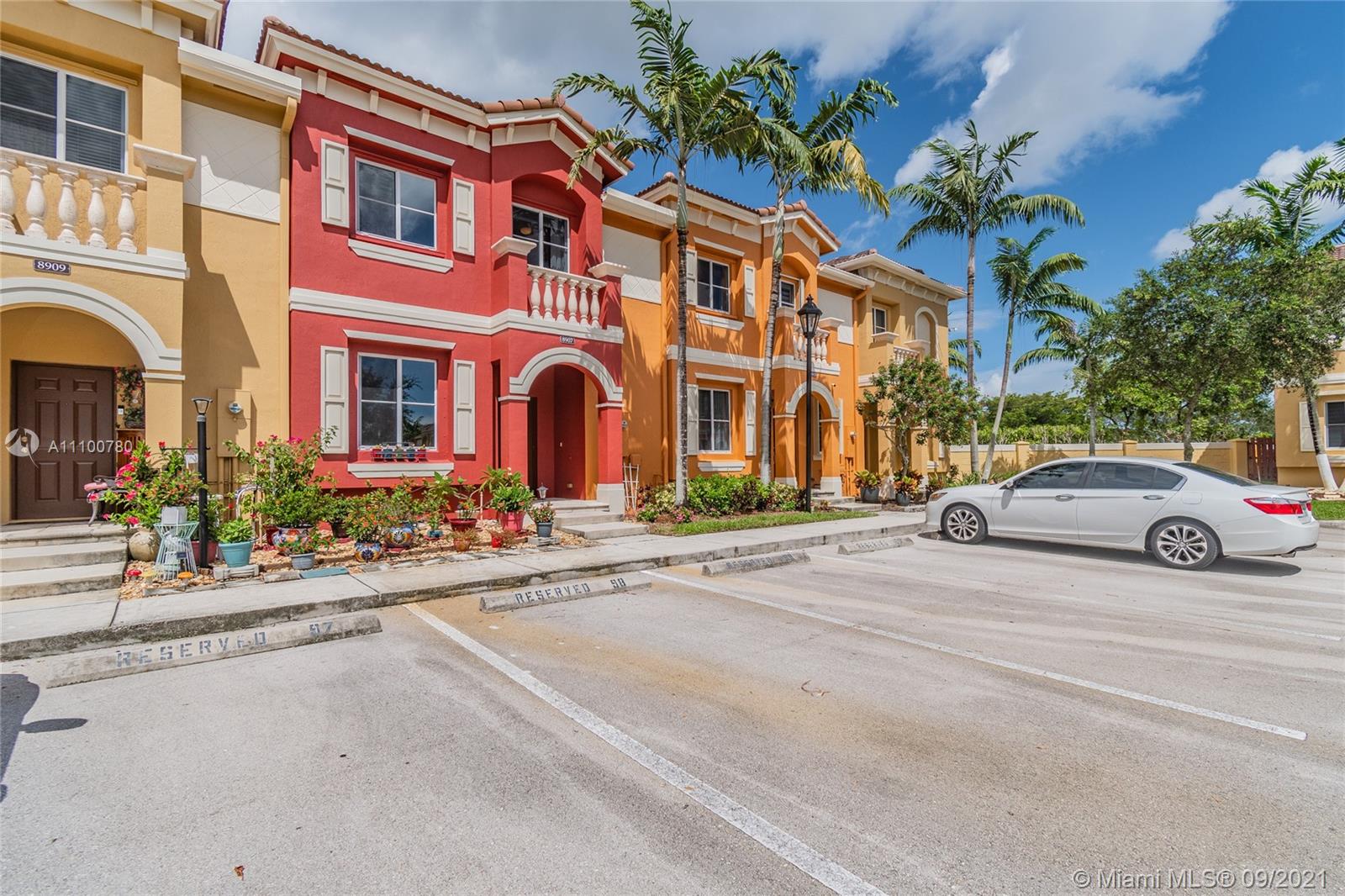 These go Quickly… Come see this Spacious 3-bedroom 2.5- bathroom Townhouse in the Gated Community of The Village at Miramar. This ‘Cayman’ is one of the Largest 3 Bedroom Townhomes with Over 1500 sq ft under air. First Level features High Ceilings, Living/Dining, Family Room Plus a Patio with a Pergola. Granite Counter Tops and Breakfast Counter and Pantry in the Kitchen. Landing area Upstairs could serve as a Workstation. All bedrooms and Washer and Dryer upstairs. Tile and Laminate Wood floors through-out. 2 Assigned Parking just Outside. Pet Friendly Boutique Community with Pool/Clubhouse and Tot Lot/Playground. Maintenance Includes: Exterior Painting, Landscaping, Sprinklers, Security Patrol, Roof/ Building Insurance and Alarm Monitoring. See Virtual Walk-Through Tour.
