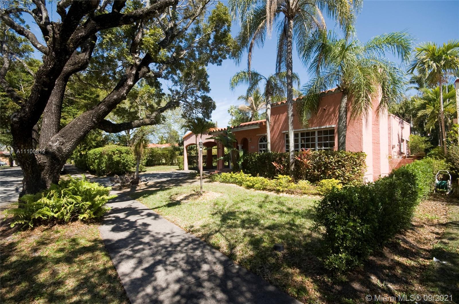 4/3 Mediterranean style home (2817 sq.ft) located in a quiet tree lined cul-de-sac street in Coral Gables, w/ fireplace and a large kitchen with a breakfast nook. The dining room & kitchen have direct access to the backyard yard. The home includes a spacious 1/1 cottage (with its own AC & electric meter) that is perfect for a home office, in-laws or a nanny. New roof in 2021. 10k sq. ft. lot might allow for a pool build-out.