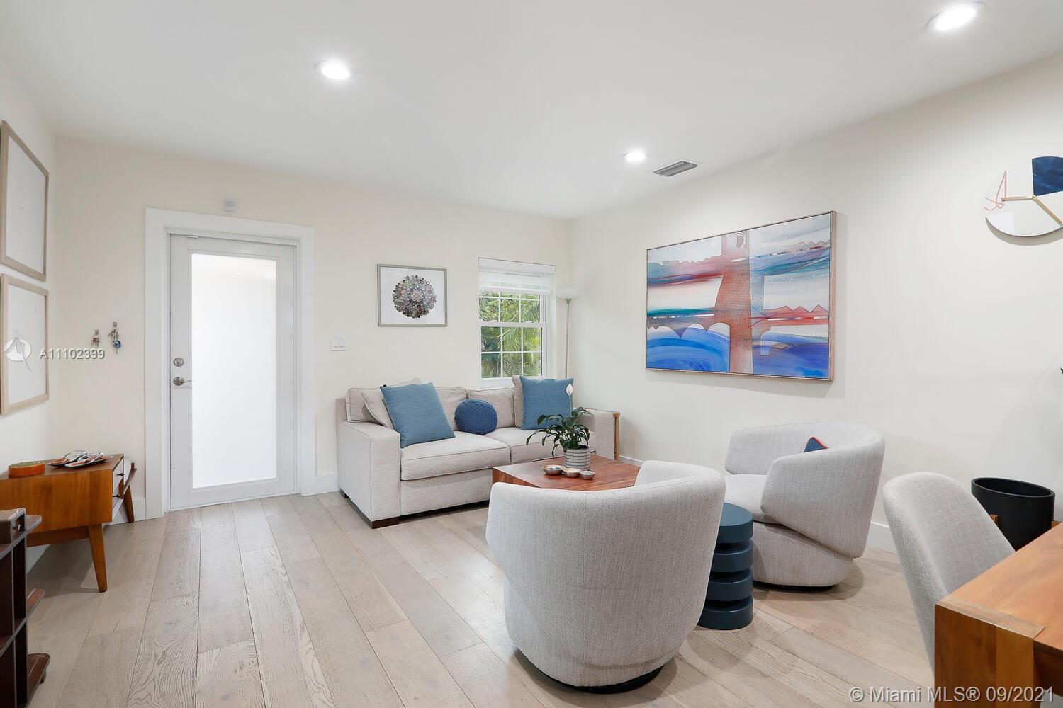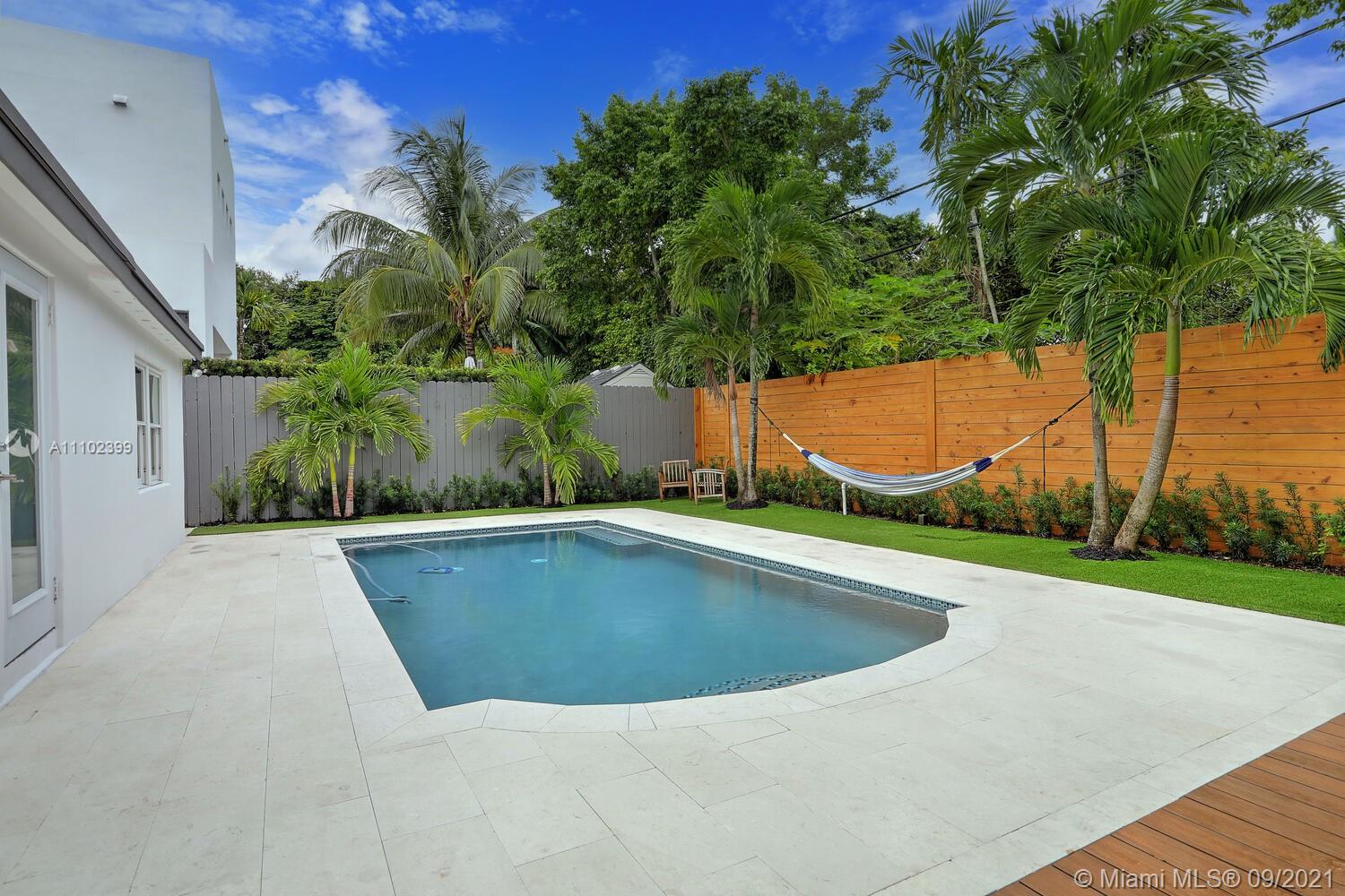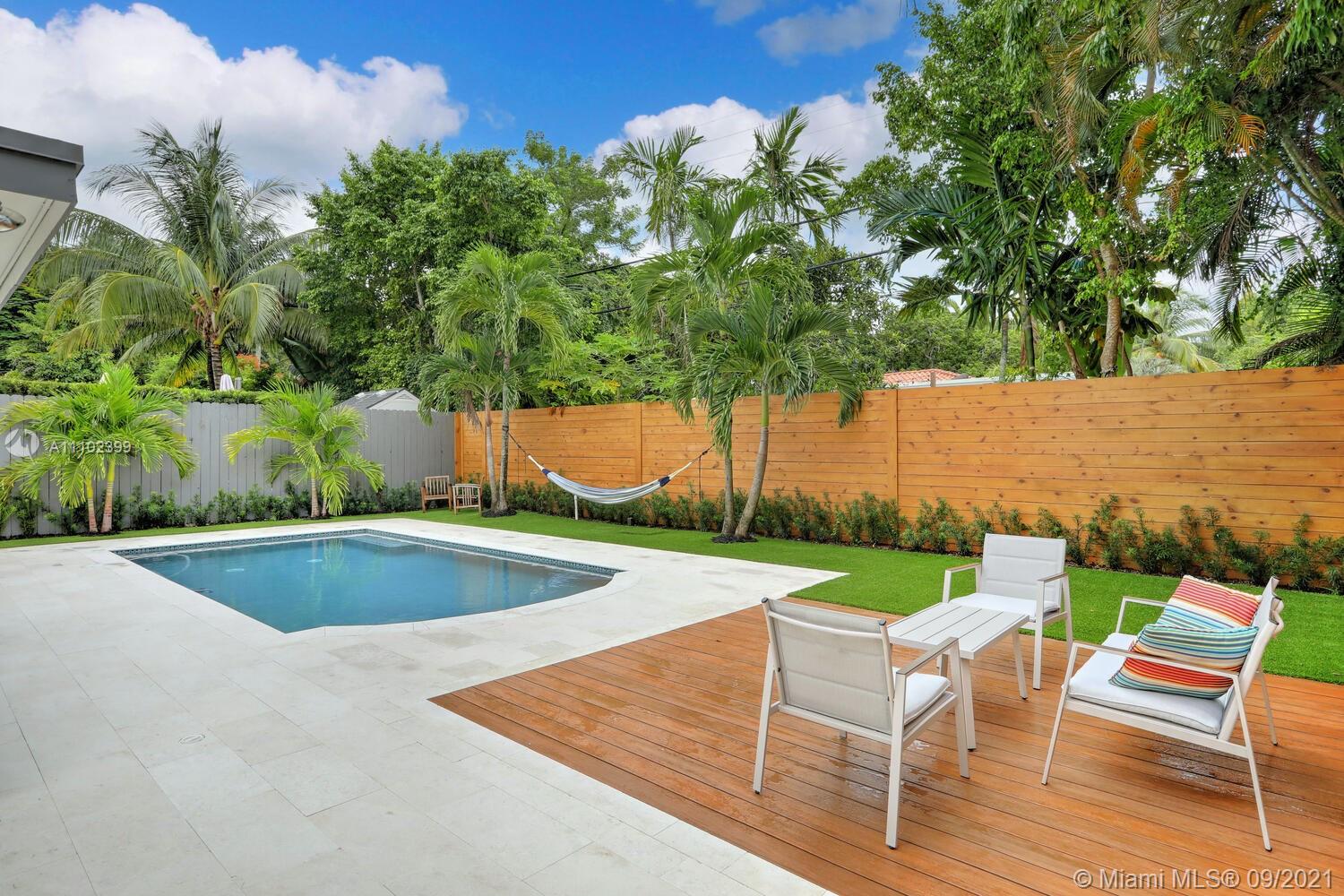 Charming home on quiet North Grove street just a short walk or bike ride to bayfront parks & marinas. Light-filled, open living spaces with wood flooring & a neutral color palette. Major renovation includes sleek euro-style kitchen with double-bowl farmhouse SS sink, quartz countertops & top-of-the-line appliances. Additional updates include: all modern-style baths w/ frameless glass enclosures, recessed lighting w/Bluetooth option, totally pre-wired for cable/internet, lots of built-out custom closets & impact glass throughout. Family room opens to a private garden w/ wood deck and expansive patio surrounding the tranquil pool for year-round outdoor living & entertaining. Close to the Grove village & minutes to downtown, MIA, Coral Gables, Key Biscayne and the Beaches.