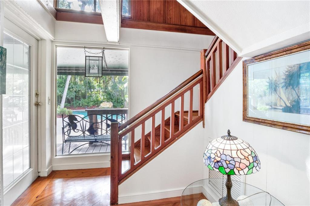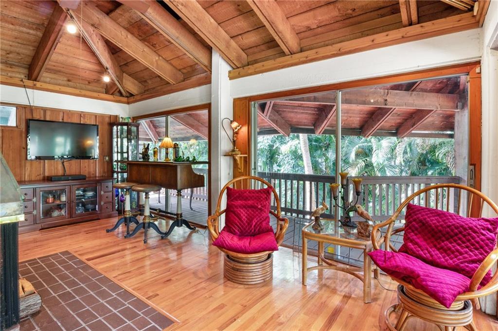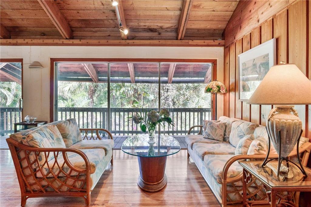 Run to see this very rare architect designed Florida home set in a half acre of tropical paradise - won't last! It is like living in a secluded tree house downtown while listening to the white egrets and blue herons throughout this light filled 4bed/2.5 bath home. The whole house is framed in solid concrete and filled with rare cedar wood on the walls and Dade County pine and oak flooring. Upstairs the master bedroom has 3 walls of glass windows looking out to the mature oak trees and canal to the east and the large pool to the west. To find this home you access a very private road, home to only 7 homes and a community dock to launch your boat on the canal. Air handlers are one and two year's old. House was built in 1975 and there is a large working fireplace upstairs in the den. New W/D.