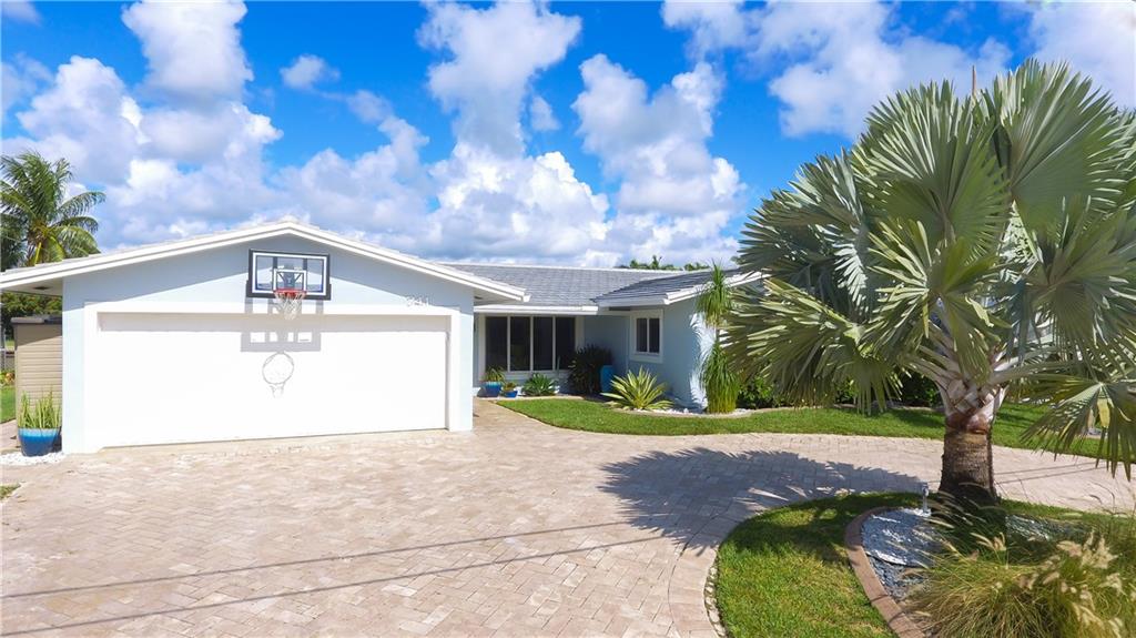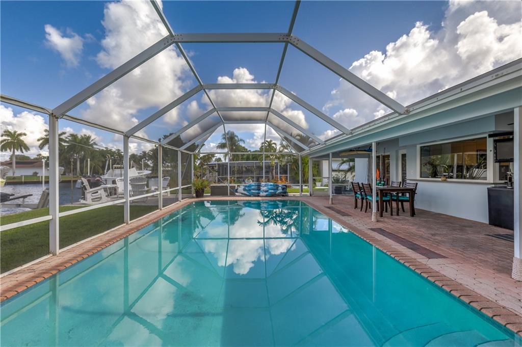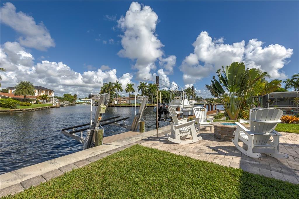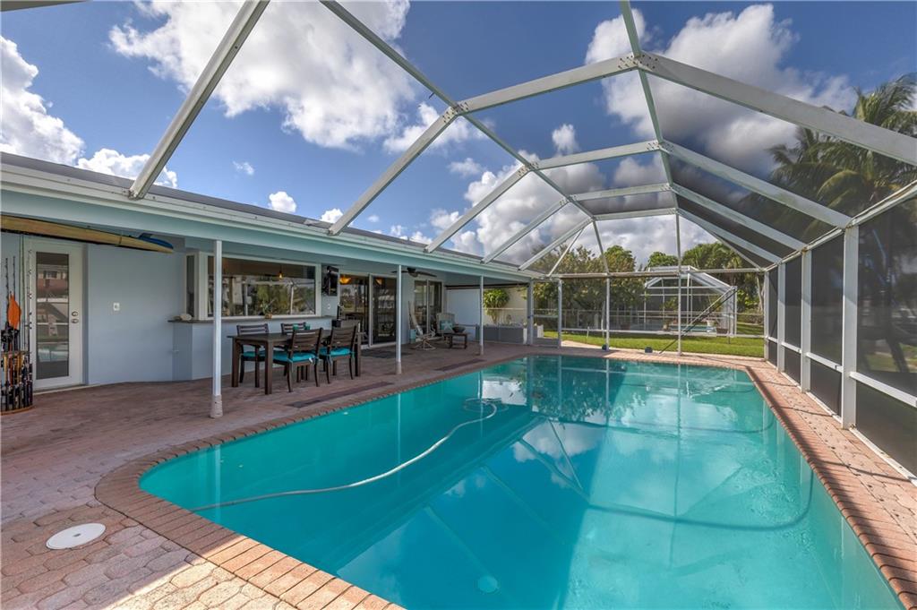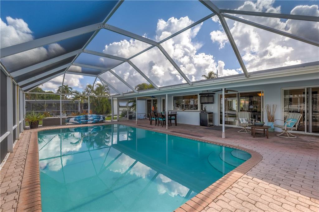 Look no further: spacious 4 bedroom 2 bath home on 80 feet of waterfront on large main canal just minutes from the intracoastal. New tile roof in 2021, 2 boat lifts and piped natural gas for: the tiki torches on the dock, plus the fire pit, double oven, stove, water heater and pool. Ready to hookup full house gas generator and gas dryer. Impact windows, saltwater pool, full two car garage on a great dead end street with culdesac. Located minutes to brand new pier, restaurants, shopping, parks and water activities. Square footage is larger than stated in tax records- all rooms measured with laser. Total square footage with garage is 2200, under air 1765.