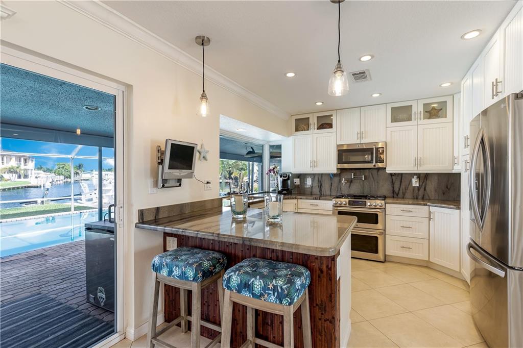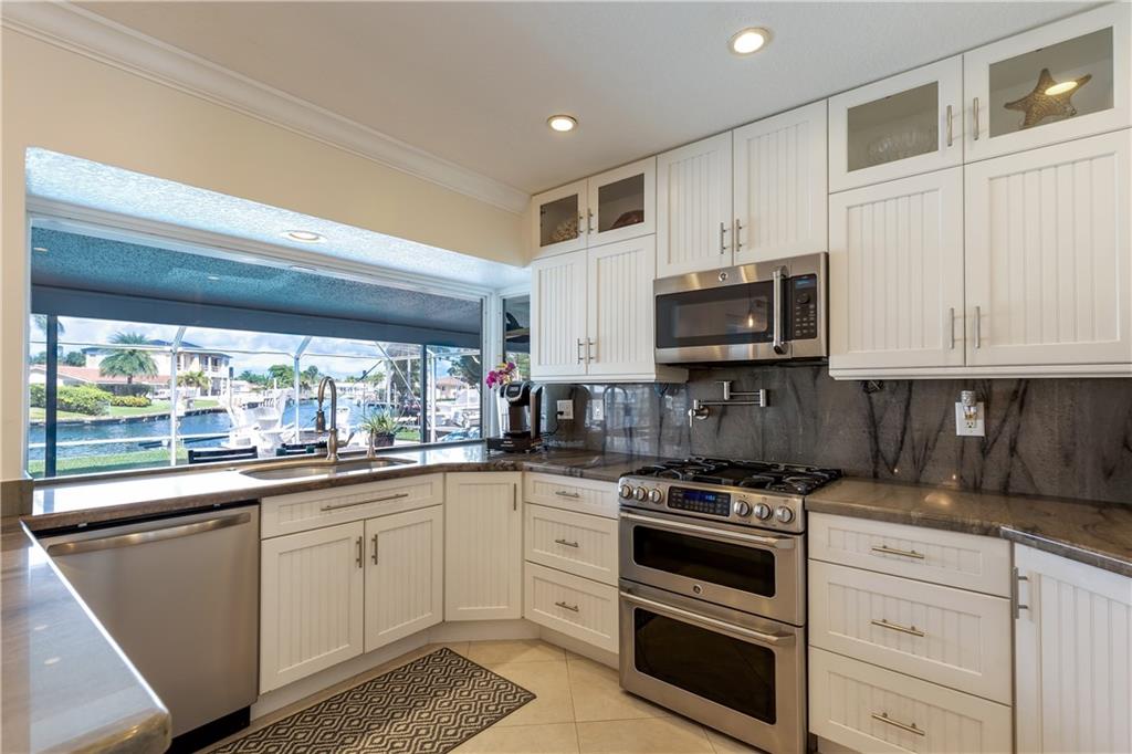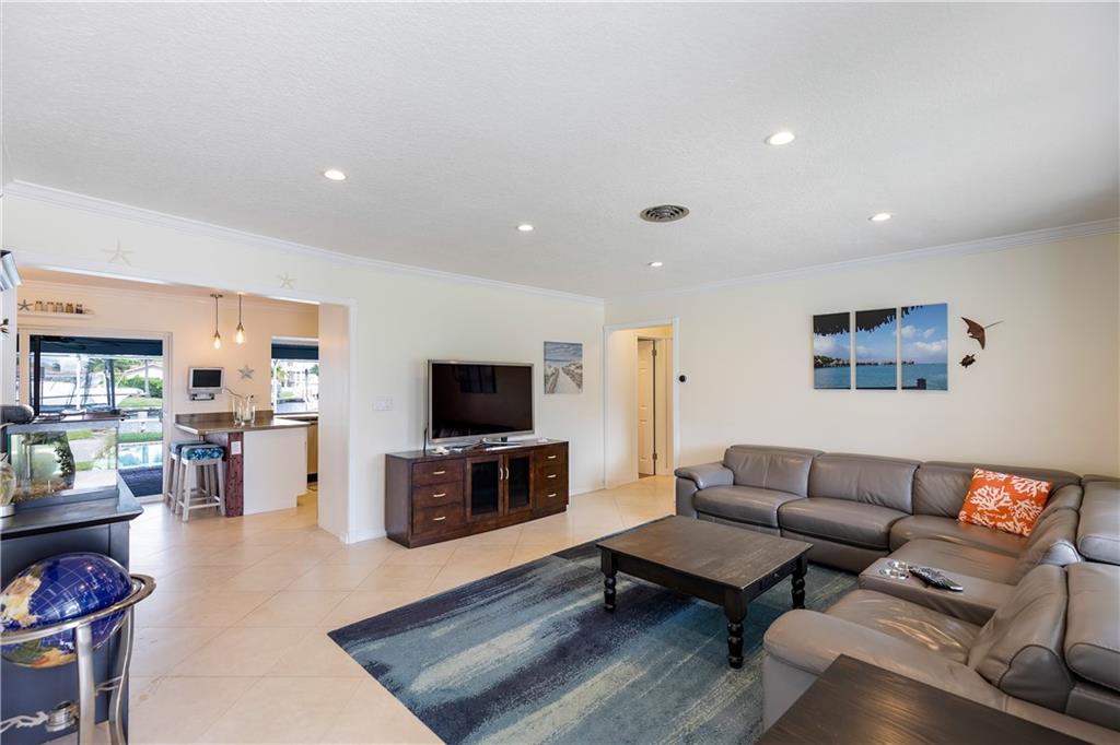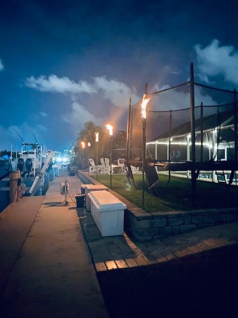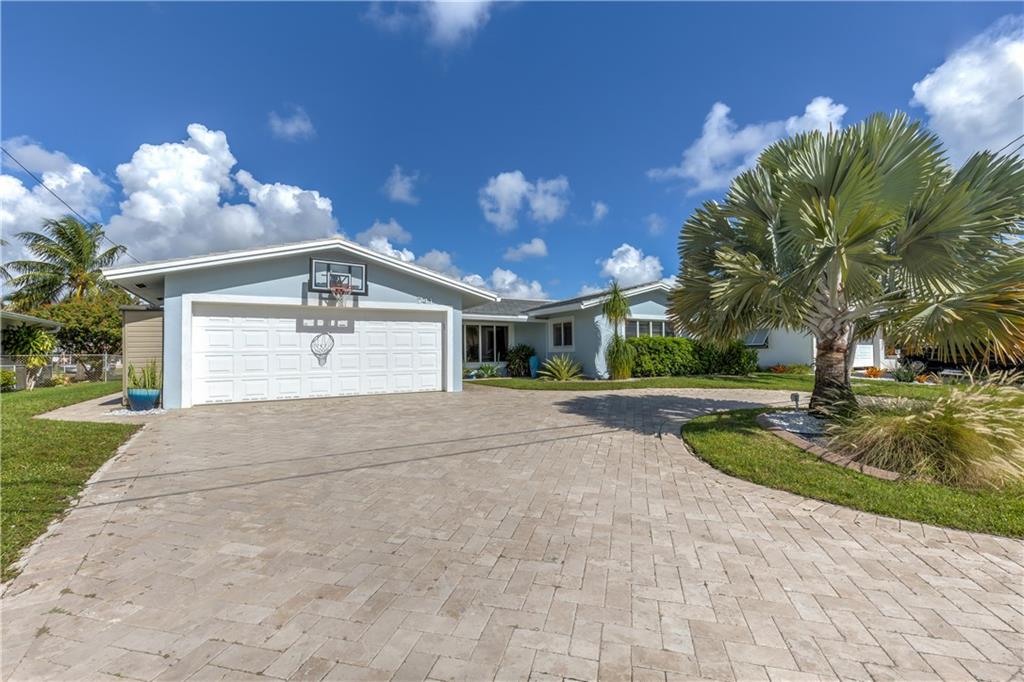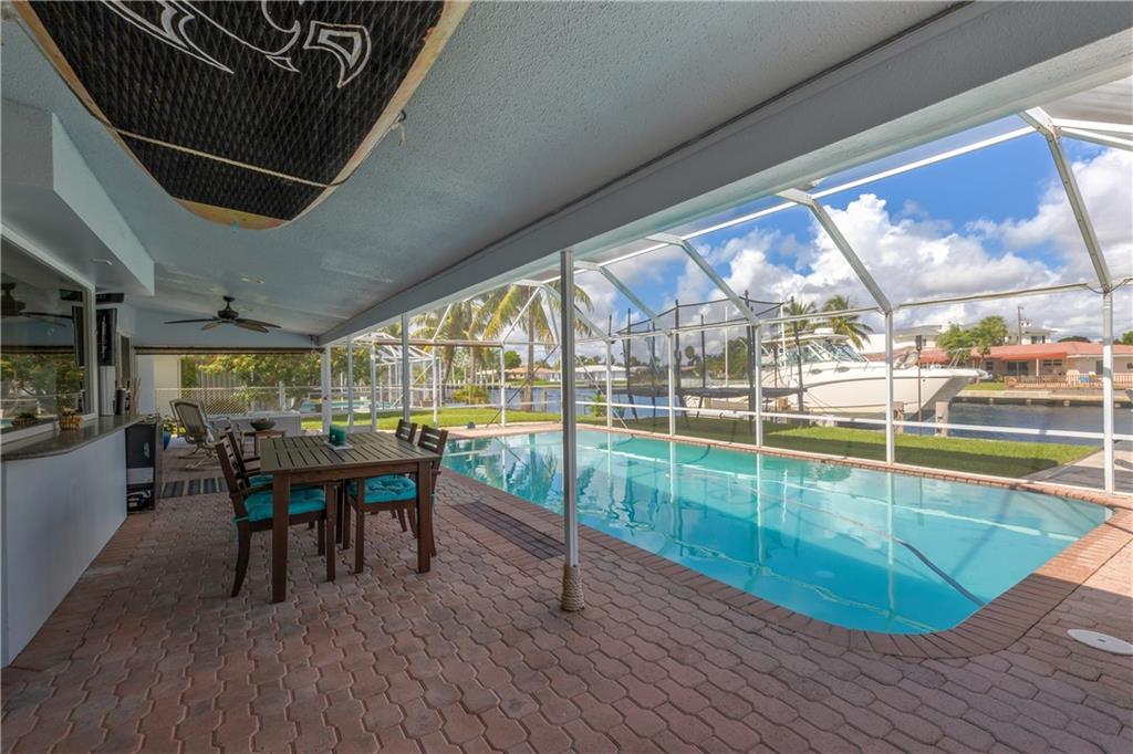 Look no further: spacious 4 bedroom 2 bath home on 80 feet of waterfront on large main canal just minutes from the intracoastal. New tile roof in 2021, 2 boat lifts and piped natural gas for: the tiki torches on the dock, plus the fire pit, double oven, stove, water heater and pool. Ready to hookup full house gas generator and gas dryer. Impact windows, saltwater pool, full two car garage on a great dead end street with culdesac. Located minutes to brand new pier, restaurants, shopping, parks and water activities. Square footage is larger than stated in tax records- all rooms measured with laser. Total square footage with garage is 2200, under air 1765.