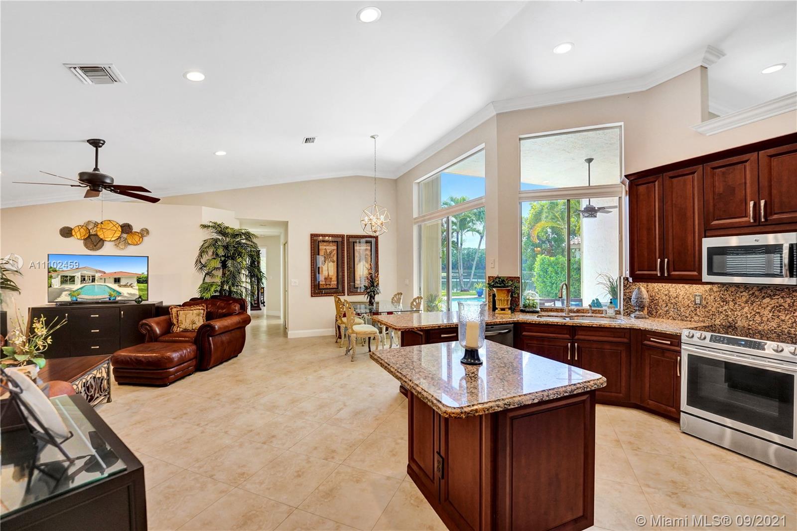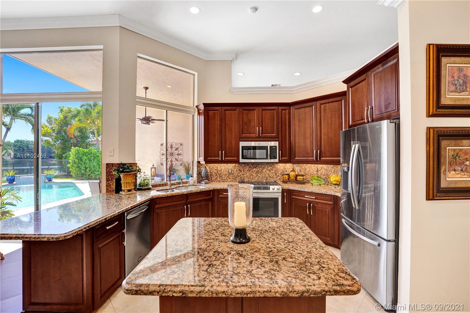 Enjoy living in a tropical oasis in sought after Weston Hills. This lovely home features a rare private large fenced backyard lushly landscaped, tranquil long & wide lake views, pool and waterfall. Tastefully updated, Plantation shutters on all windows, marble & porcelain floors, LED lighting, kitchen with 42" wood cabinets with pull outs & newer appliances including washer, dryer, water heater & more. Abundant storage everywhere with Butler's Pantry and California-type closets. Roof replaced in 2007, HURRICANE IMPACT WINDOWS & SLIDING GLASS DOORS COMING! Enjoy the South Florida lifestyle stroll to Weston Hills Country Club for Golf, Tennis, Social and Dining. (Membership required) also walk to Weston Town Center for more dining, shopping and events year round! A rated Weston Schools.