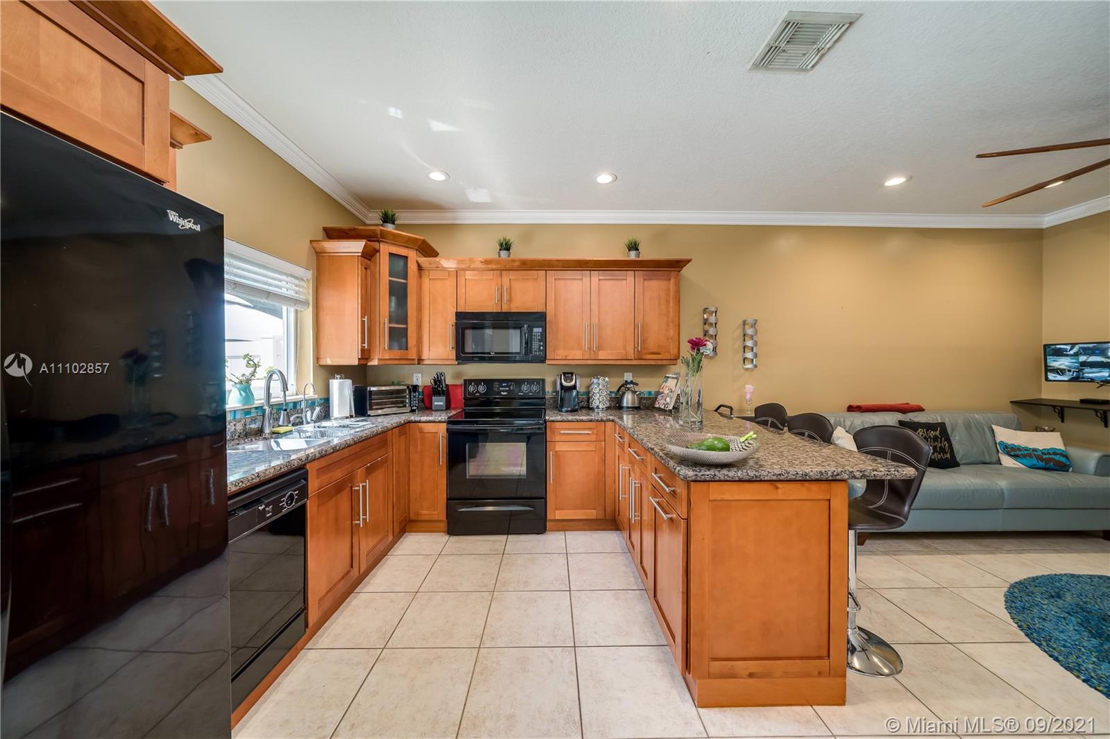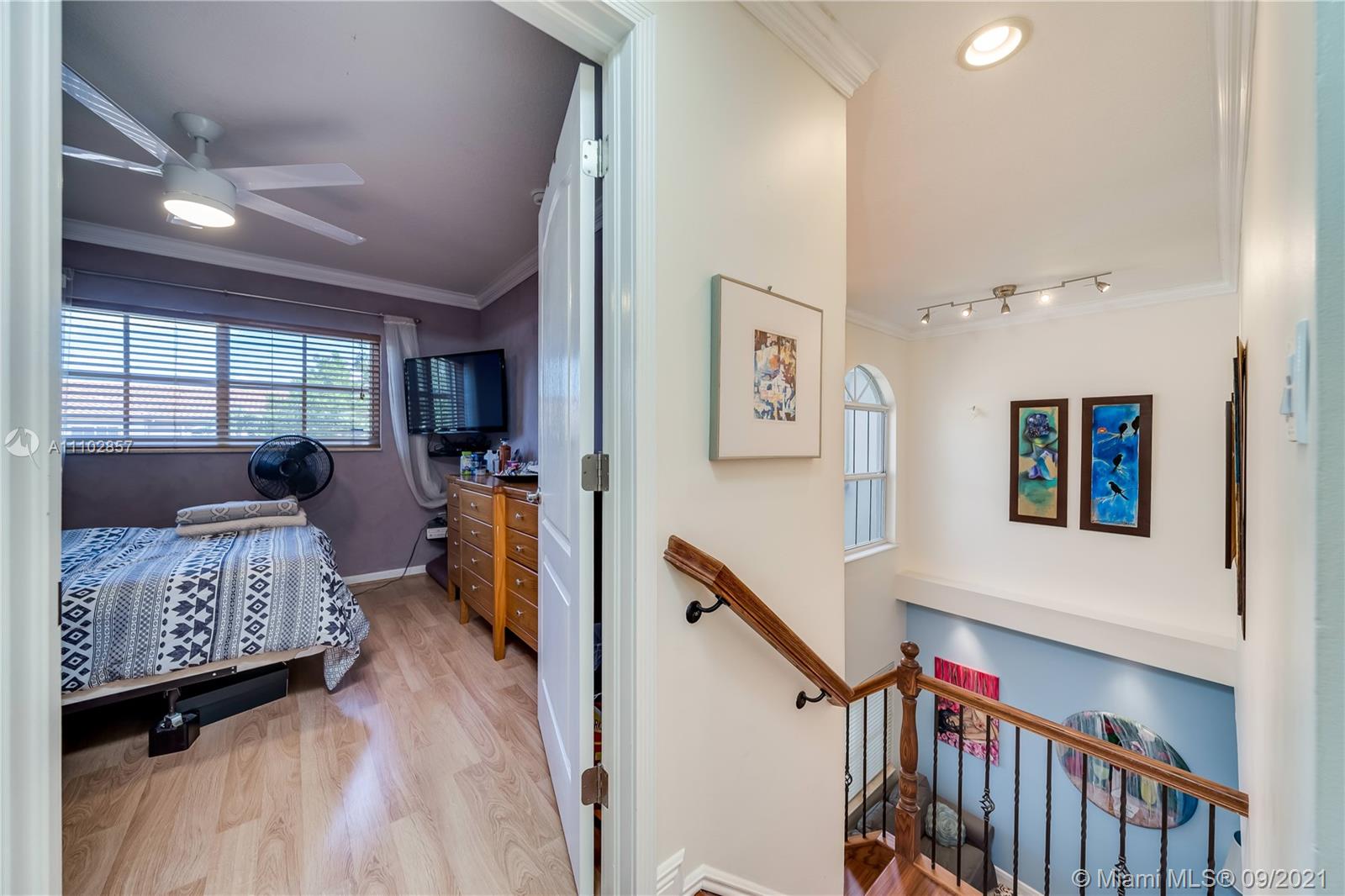 Beautiful Mediterranean-style townhome in the prestigious gated community of Vizcaya. Perfect neighborhood for families with excellent schools. Crown molding throughout and offers high impact windows and doors. Both the kitchen and bathrooms feature granite counters and cherry-wood cabinetry. This home is a rare find and embodies tranquility. Relax in the fenced-in backyard inclusive of travertine pavers as well as your very own fire pit. Most appliances replaced in 2015. Water heater replaced in 2019.