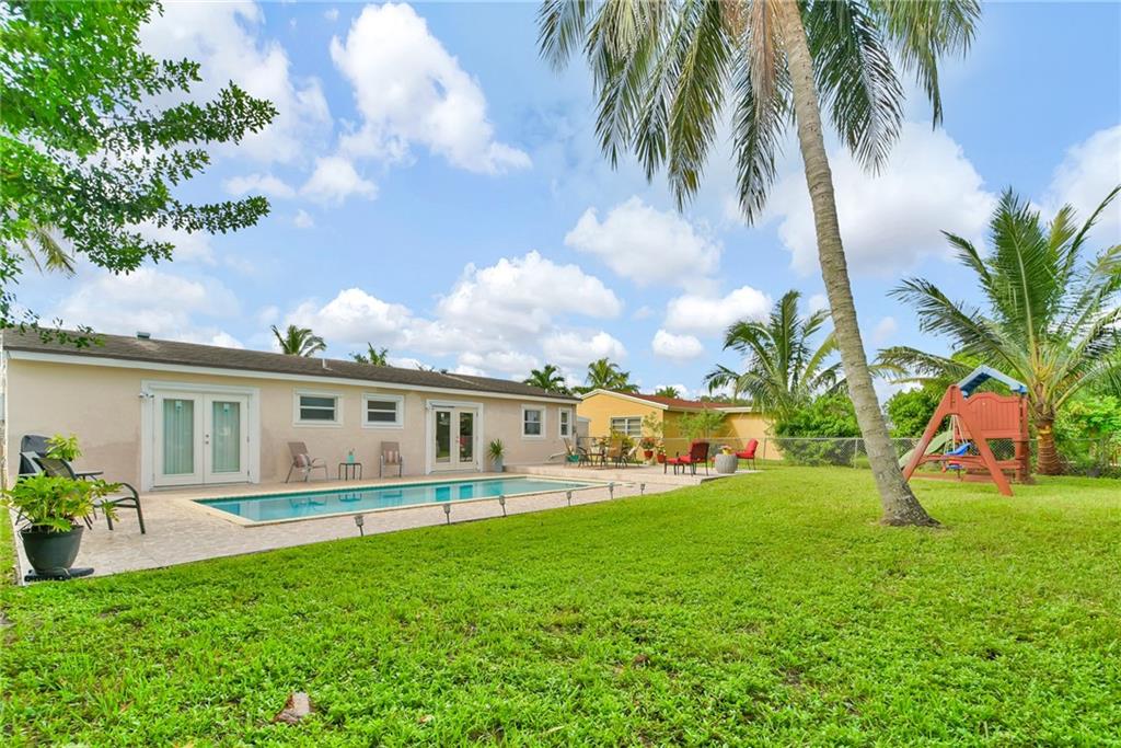 Enjoy a year round the sunny days of South Florida in this beautiful 3 bedrooms, two bathrooms, CBS construction true Florida ranch-style updated home ; what sets it apart is its stunning backyard boosting 7,208 sq.ft with a paved deck and oversize pool. featuring French doors, kitchen with wood cabinetry, stainless steel appliances, and a den or Florida room! Delight in the perfect vacation destination residence while living just a couple of miles away from entertainment, such as casinos, the Hard Rock Café, and not to mention the most beautiful beaches: Hollywood, Hallandale, Dania Miami Beach, and Sunny Isles. This beauty is nestled in the DRIFTWOOD ACRES is located in the proximity of the international airports and two of the most convenient highways in South Florida. NO HOA.