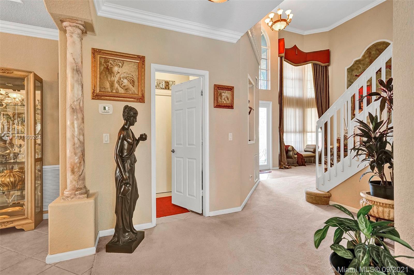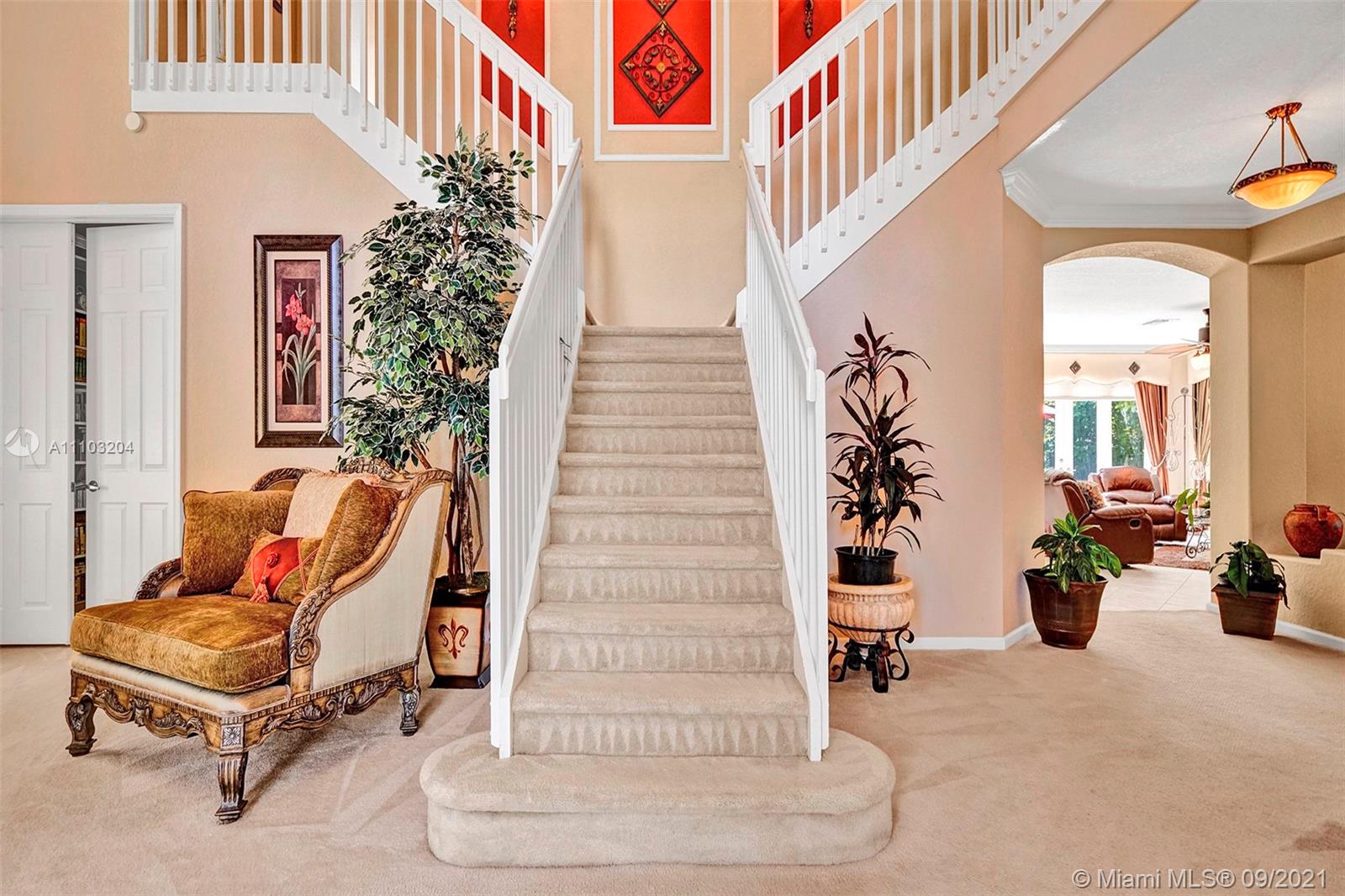 Sun-filled, well maintained GL Rebecca model with western exposure. 6/4, 3750 sqft., 3 car garage. Elegant split staircase leading to a private second master on the left, remaining rooms on the right. Bedroom & full bath downstairs. Spacious Master with walk-in closets. Captivating tray ceilings in the formal dining + master bedrooms. Open kitchen with a walk-in pantry. Hurricane impact French doors, accordion shutters throughout. Aged fruit trees with 11 different types of fruit. Room to add a pool. Low HOA. Manned gate, 24-hour security patrol. Silver Shores, Glades, Everglades district. Desirable home for multi-generational families especially during the holidays. Short walk to the Clubhouse featuring a pool, tennis, gym, playgrounds, basketball and more. Minutes to 75.