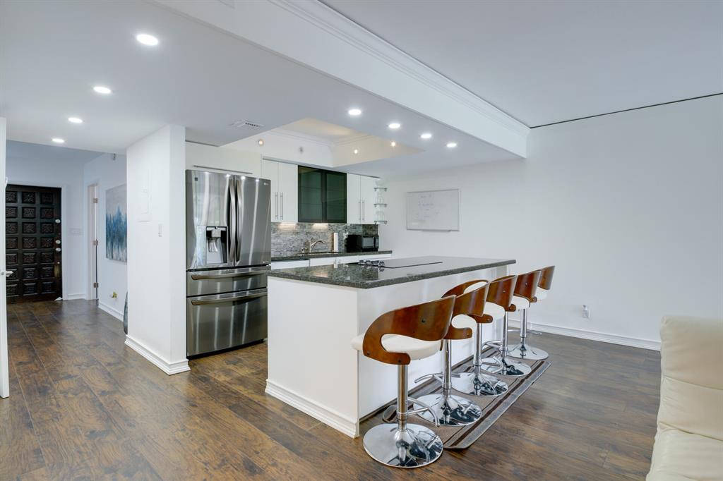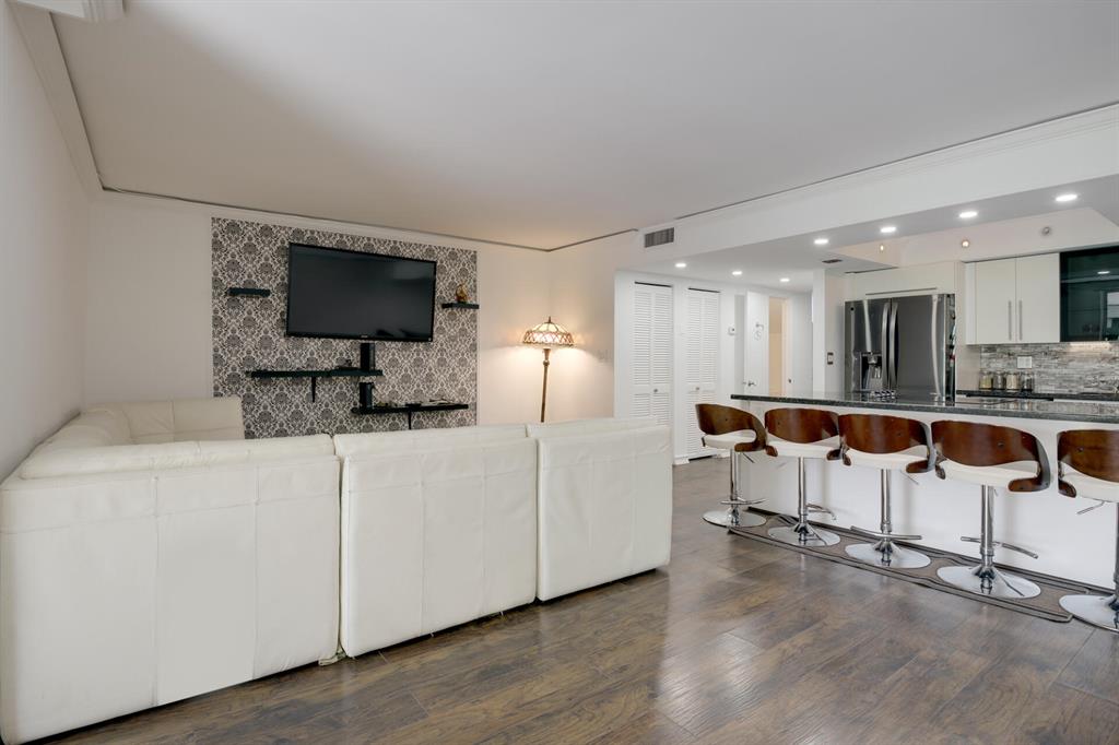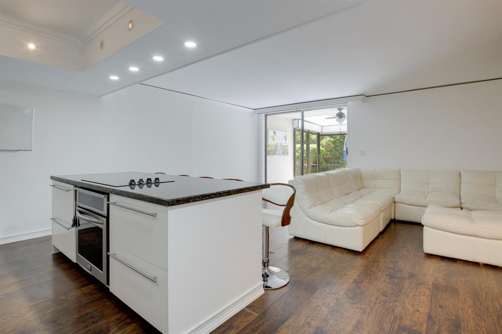 Totally renovated townhouse, open floor plan, beautiful wood floors, kitchen offers granite countertop, chic style cabinets and high end appliances, beautiful island and undercabinet lights, one bedroom on the first floor and half bathroom, the large main bedroom on the second floor offers a private balcony with beautiful view, high end bathroom and the second bedroom has in-suite bathroom.Great screened patio with laundry room and private patio excellent for grilling and entertaining.This home is located just across from the Three Islands Park, minutes away from the beach, restaurants and is a pet friendly community. Parking is right across the front door