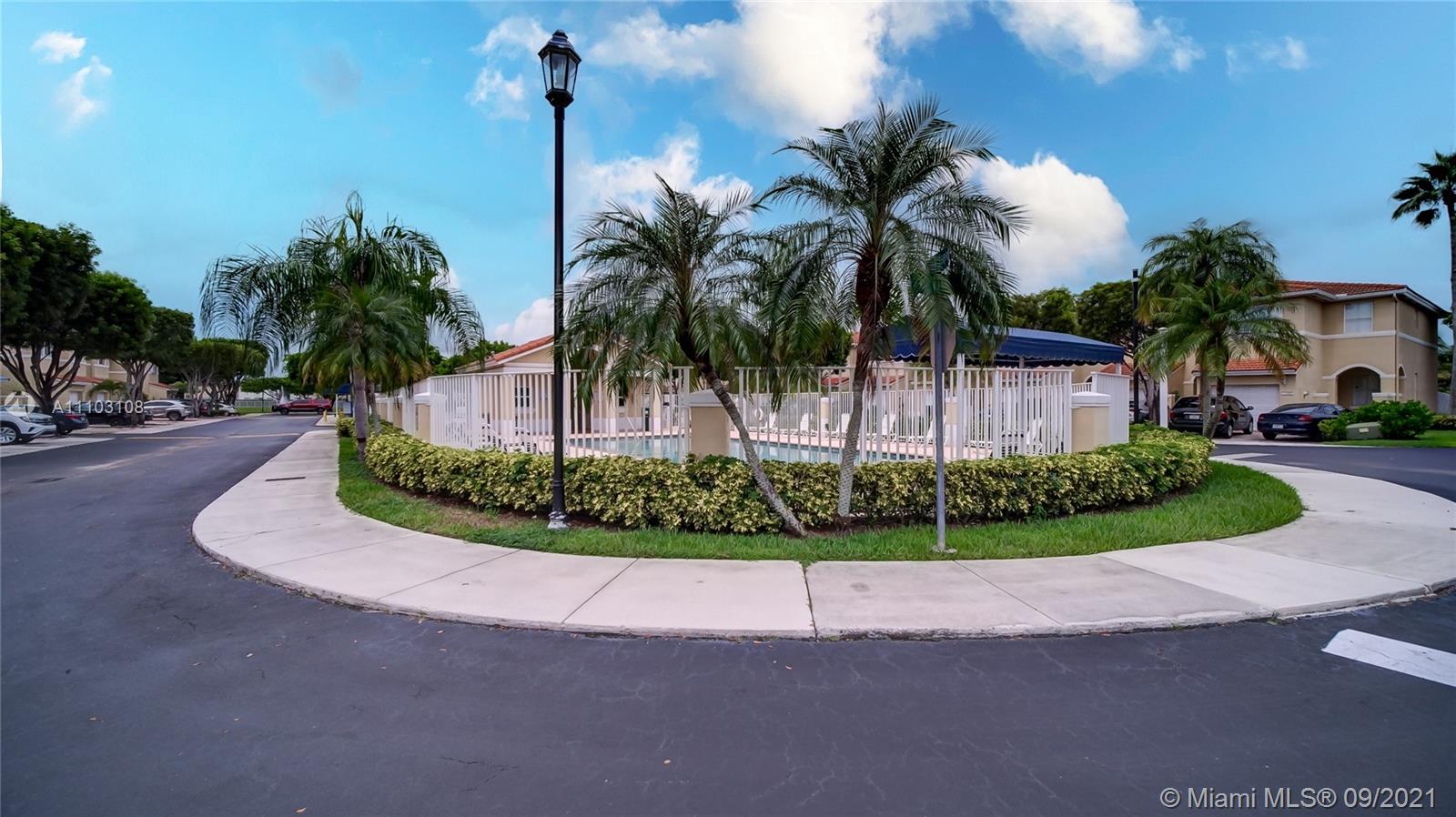 Gated Eagle Cove in Doral welcomes you to this 2 story townhouse with private fenced patio and no neighbors behind you, great for bbq. 2 parking Spaces plus 1 Car Garage (converted to office/den/3rd bed, owner can convert back if buyer chooses). 1st floor: Tile Floor, Laundry, ½ bath, Dining Room, kitchen has Granite counter & Wood cabinets with under-counter lighting and eat in Kitchen opens to Family Room. 2nd Floor: 2 large bedrooms both w/ walk in closets, Renovated Main Bathroom w/ Dual Sinks & Frameless Shower, Renovated Hall Bathroom. Low monthly HOA. All Accordion Shutters. Close to highways, Palmetto, Turnpike. 15 mins to airport. Great Dining & entertainment, City Place Doral nearby, Excellent Schools. Pets Okay, Can lease right away. FHA/VA OKAY