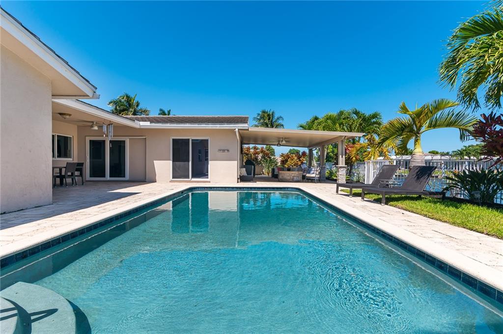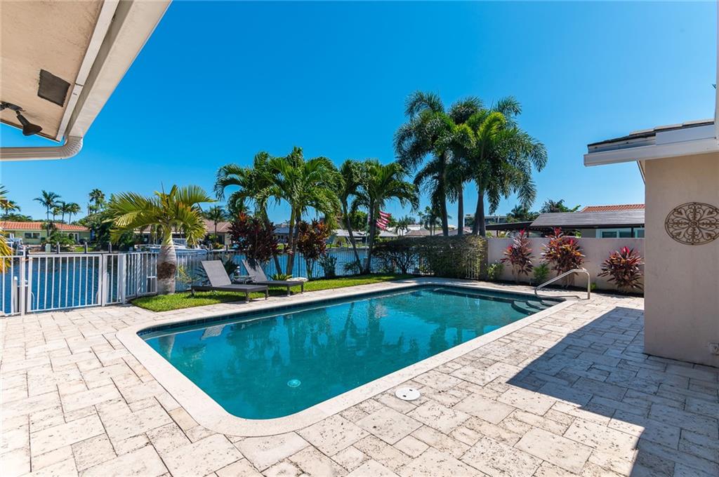 Boater’s Paradise! Located in the middle of The Landings only turning basin, 2.5 times the width of a typical canal in the neighborhood. Easy access to intracoastal and with one fixed bridge, providing approx 11 vertical feet of clearance at high tide. Stunning waterfront views from the expansive covered patio with large firepit. Desirable eastern exposure for breezy, shady evenings. This home has much to offer with gorgeous landscaping, newly refinished pool, composite dock. New roof installed in 2015 and HVAC installed in 2017. 4 bedrooms and 3 full baths in a spacious split floorplan with 2 car air conditioned garage. Home is walking distance to shops, bars, and restaurants on Commercial Blvd and only one mile from beach.