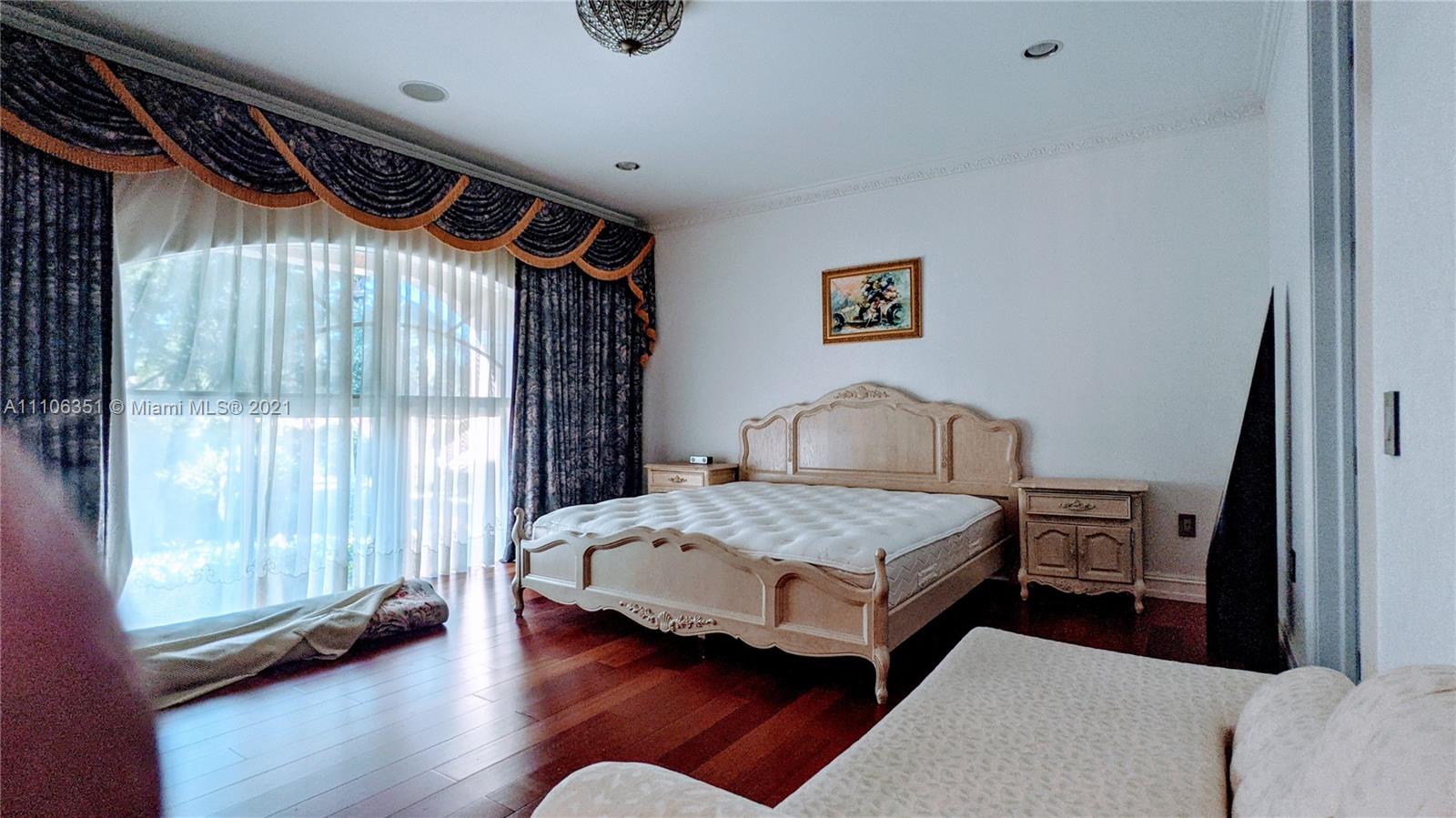 Gated, best schools, walking distance to the beach and house of worship. Best schools nearby! This home is built on the largest lot in this community. The style of Morris Lapidus lives again on this residence with all the glamour and space you need for full-time Florida living. Spacious and sunny, the house integrates an outdoor area with a pool, spa, sitting areas, outdoor kitchen, sauna. Expansive interior, with double-height ceilings in social areas, Majestic wood/artistic iron staircase. Stunning office with "trophy wall"; Large kitchen-dining room. Two-car garage. The master bedroom features a double walk-in closet. Plenty of space for your family, pets, and activities. Accordion Shutters. Additionally, the dock on the marina is available at $ 150,000. Scented by Doctor Aromas.