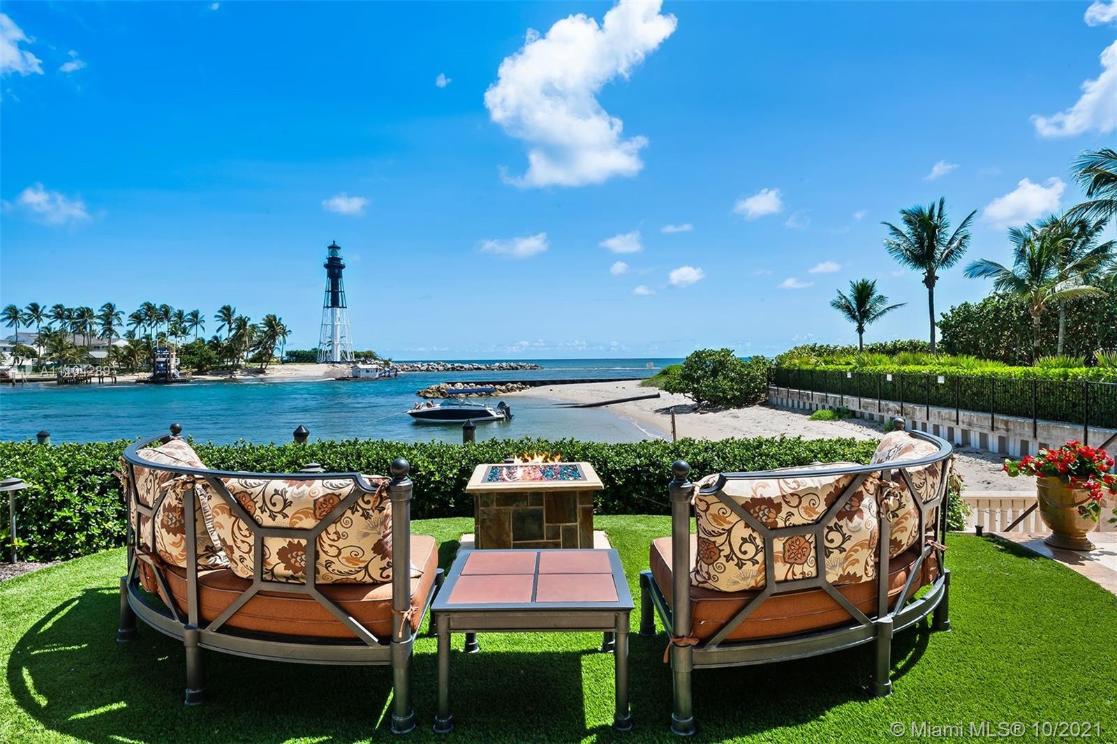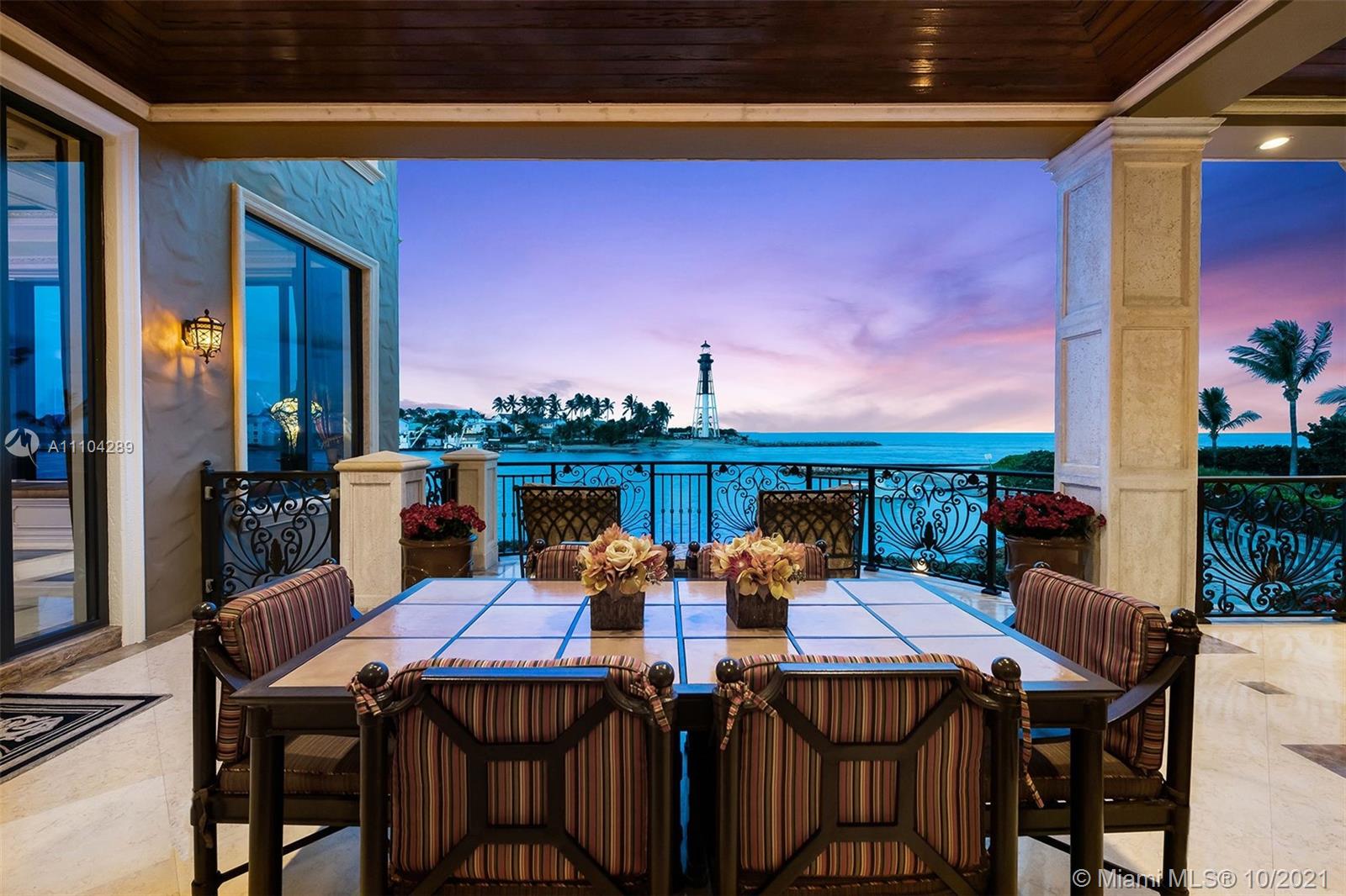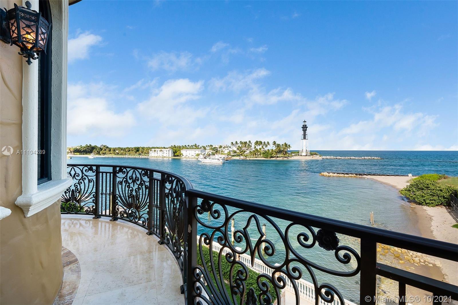 Positioned directly on the Hillsboro Inlet, this unrivaled oceanfront estate encompasses 127' feet of private beach and deep-water dockage for multiple yachts. Featuring over 9,600 sq/ft, this exceptional compound is perched high above the water and boasts rare and commanding views of the Inlet, the Atlantic Ocean, and the iconic Hillsboro Lighthouse, making this the most prized location from Miami to Palm Beach. Double height walls of glass in all main living areas capture the endless water views and natural beauty that surrounds this 6 bedroom one-of-kind estate. Features include a Billiards & Game room, Elegant Full Bar, Theater, Wine Tasting Room and secondary Catering Kitchen. Spacious elevated terraces flow to outdoor entertaining spaces that are second to none!