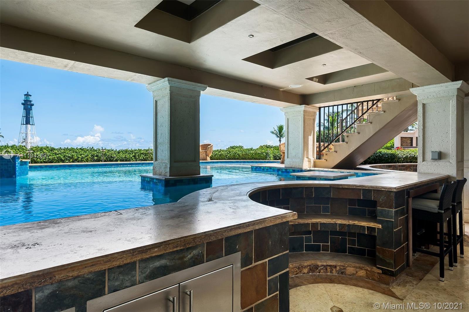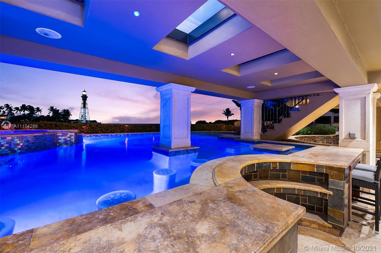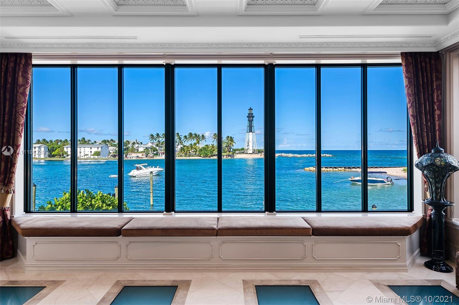 Positioned directly on the Hillsboro Inlet, this unrivaled oceanfront estate encompasses 127' feet of private beach and deep-water dockage for multiple yachts. Featuring over 9,600 sq/ft, this exceptional compound is perched high above the water and boasts rare and commanding views of the Inlet, the Atlantic Ocean, and the iconic Hillsboro Lighthouse, making this the most prized location from Miami to Palm Beach. Double height walls of glass in all main living areas capture the endless water views and natural beauty that surrounds this 6 bedroom one-of-kind estate. Features include a Billiards & Game room, Elegant Full Bar, Theater, Wine Tasting Room and secondary Catering Kitchen. Spacious elevated terraces flow to outdoor entertaining spaces that are second to none!
