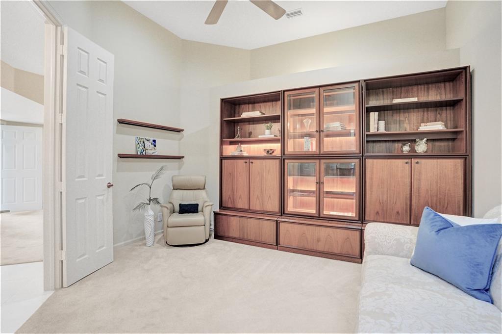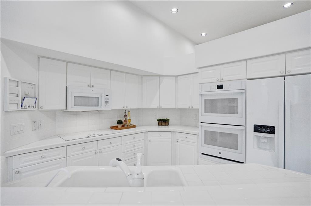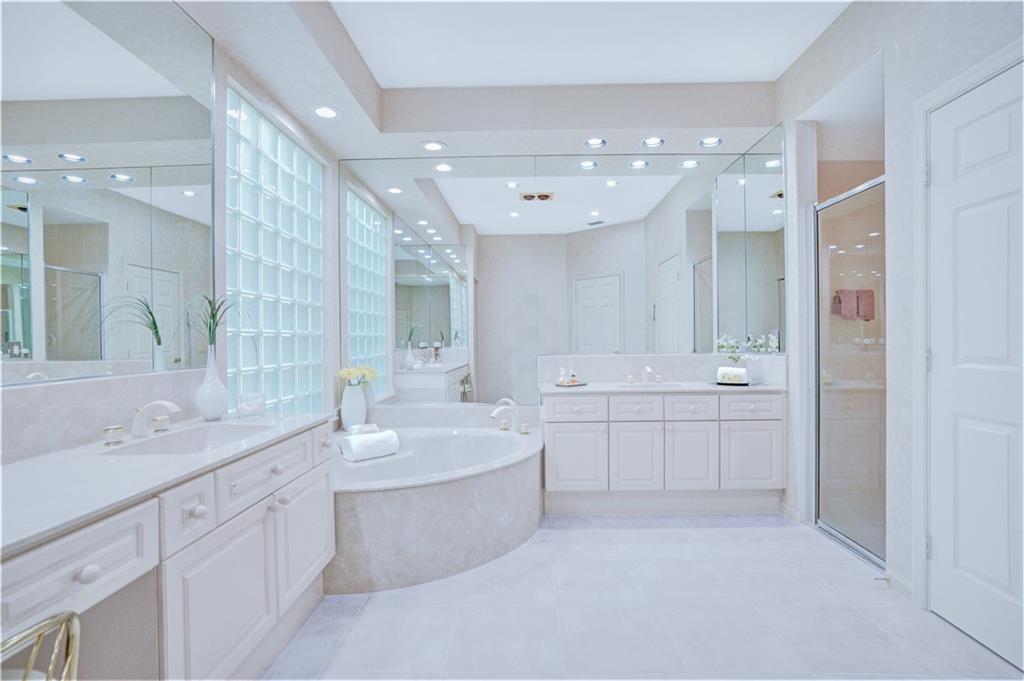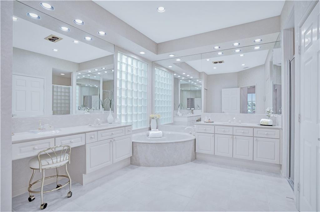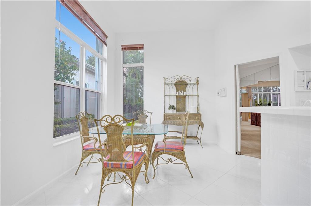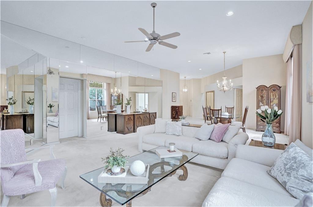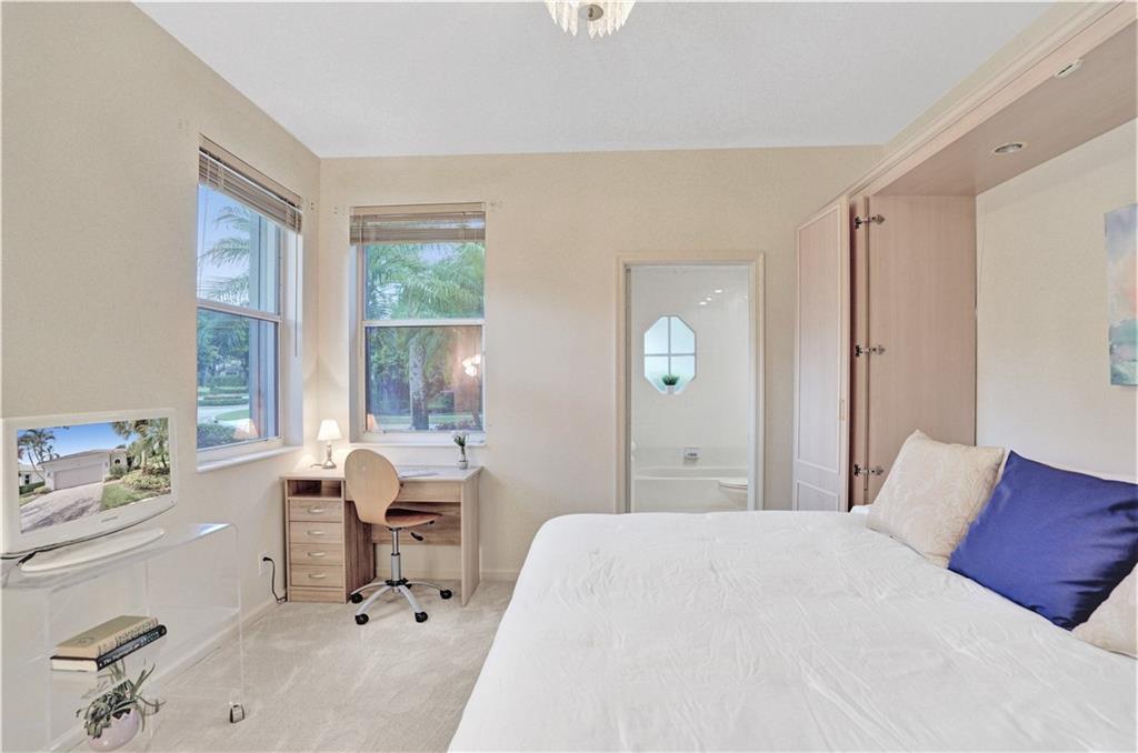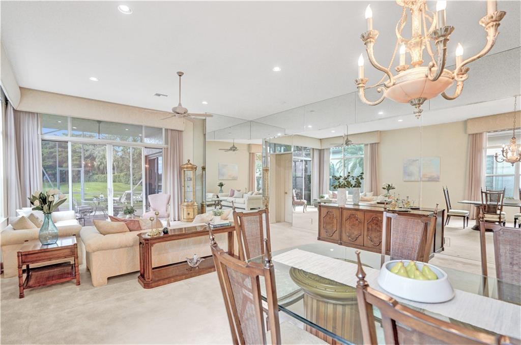 Nestled against a lush green berm on almost quarter acre with an expansive lawn that extends to the waters edge, this meticulously maintained 3/3/2CG single story LAKEFRONT home offers a maintenance-free lifestyle. Soothing shades of cream & soft pink tones exude a comfortable calm elegance. High ceilings & walls of glass create a light, bright, airy feel to the spacious great room, w/glass doors that open to the huge covered tiled patio, screened for year-round enjoyment! Huge master suite w/double walk-in custom closets & large master bath; 2nd Bed w/bathroom ensuite; 3rd Bed used as den. White-on-white kitchen w/double ovens & breakfast area. Designer chandeliers, new LED lights, accordions, plenty storage. Room for pool; golf up the road. Welcome to Weston Hills country club lifestyle!