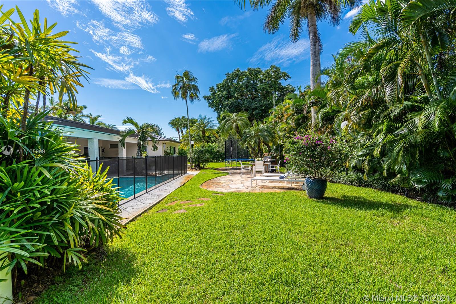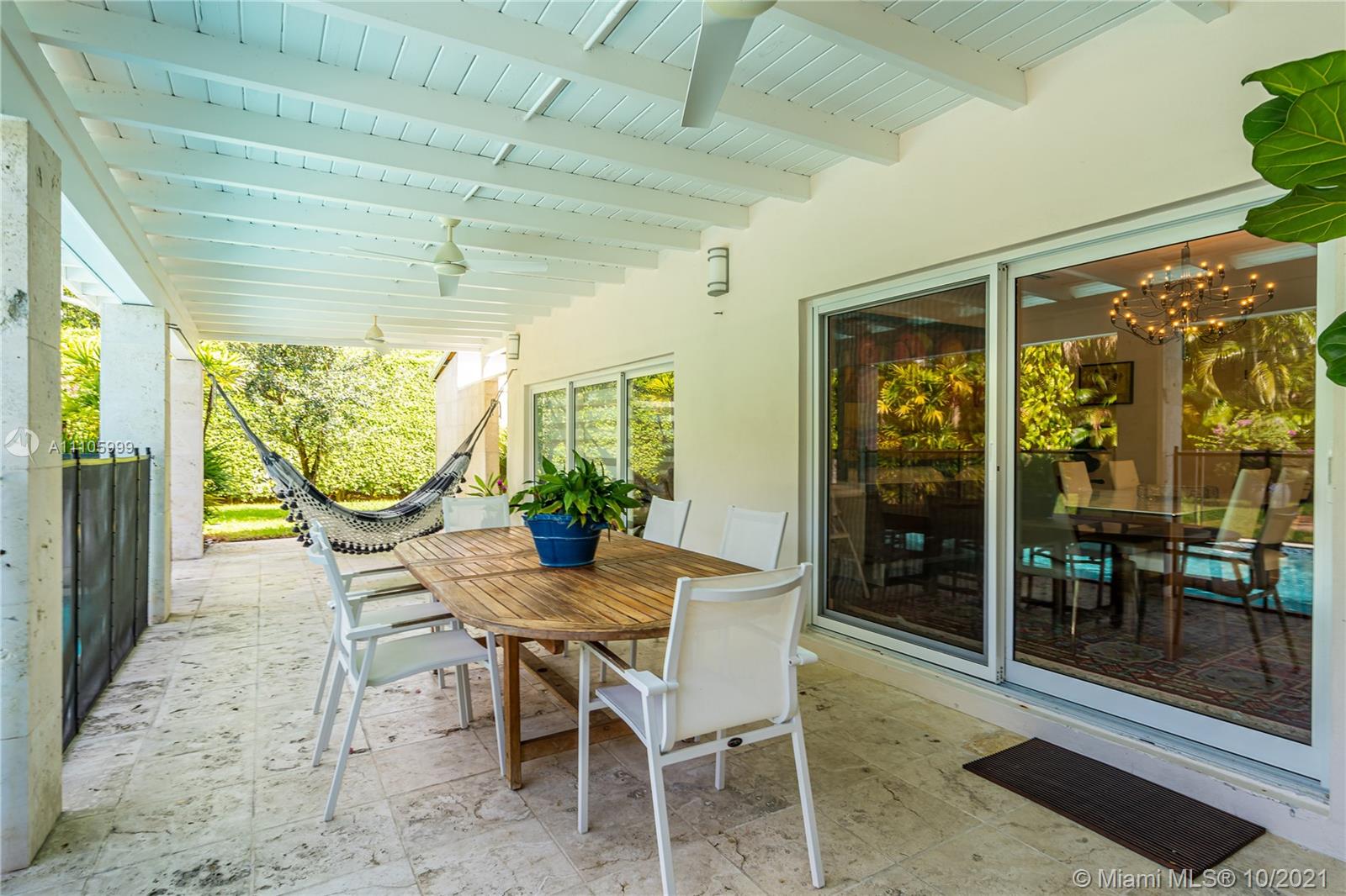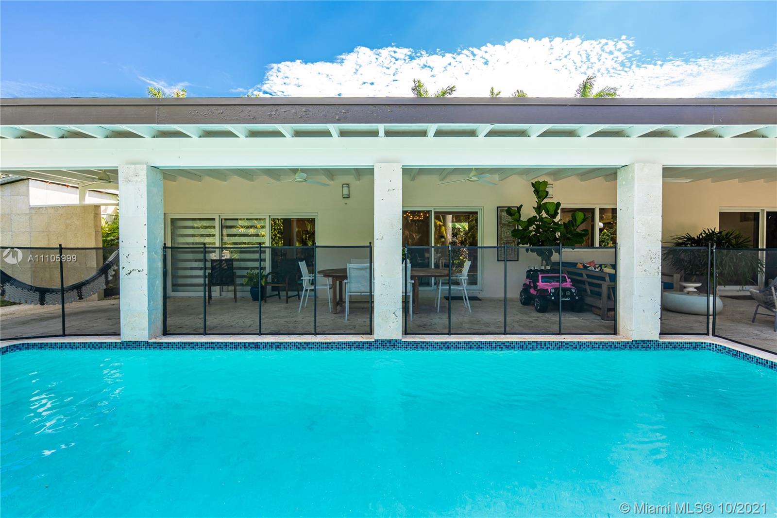 Stunning completely redone 5BR/4.5BA home. This beautiful home is finished to perfection with an excellent split plan design and inviting indoor/outdoor living. A spacious layout that includes a new Kitchen with Bosch appliances, SubZero refrigerator, overlooking the pool & patio area. Formal living/dining room which have views access to the covered patio/pool area & private garden with tropical design landscaping. Expansive master suite with big sitting area or private den, walk-in closet, master bathroom with a view from shower to the tropical landscape & pool. A second master bedroom, 3 bedrooms and 2 full bathrooms, one with access to the pool. The house was completely redone in 2019 including new electrical system, plumbing, a/c units, impact windows, metallic roof, new generator.