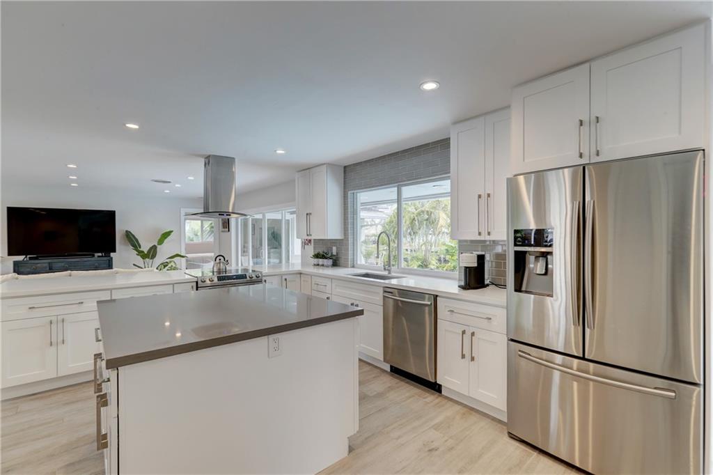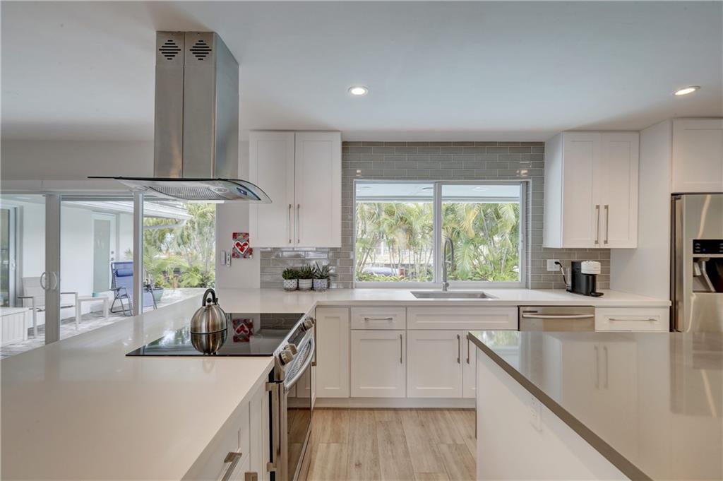 Modern Waterfront Masterpiece! Located on a quiet cul-de-sac this property literally has it all! Enter to an open floor plan with an expansive, open kitchen, 8-person bar, large island, stylish shaker cabinetry, quartz tops with top-of-the-line appliances. Italian porcelain floorings, 3 panel doors, luxurious bathrooms with floating Italian vanities, custom closets, motorized window treatments and new washer/dryer. Hurricane ready with new impact glass doors, windows, garage door and new roof. Enjoy resort style living surrounded by lush tropical landscaping with Brazilian teak accents, newly Diamond Brited pool, new pool heater, new gutters, new perimeter fence, full home generator, poured concrete driveway. Dock is completely boat ready with new planking, whips, water and power!