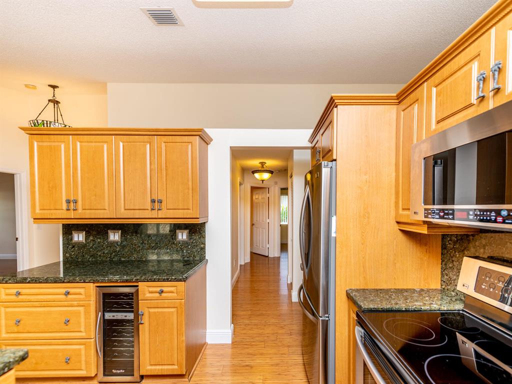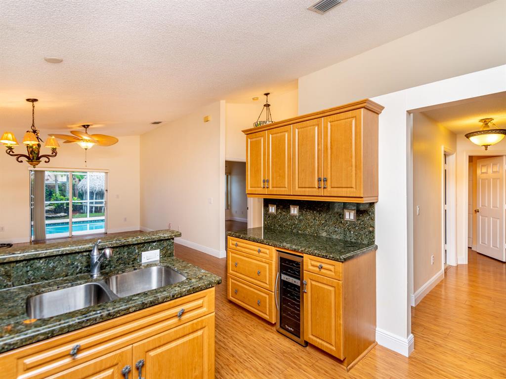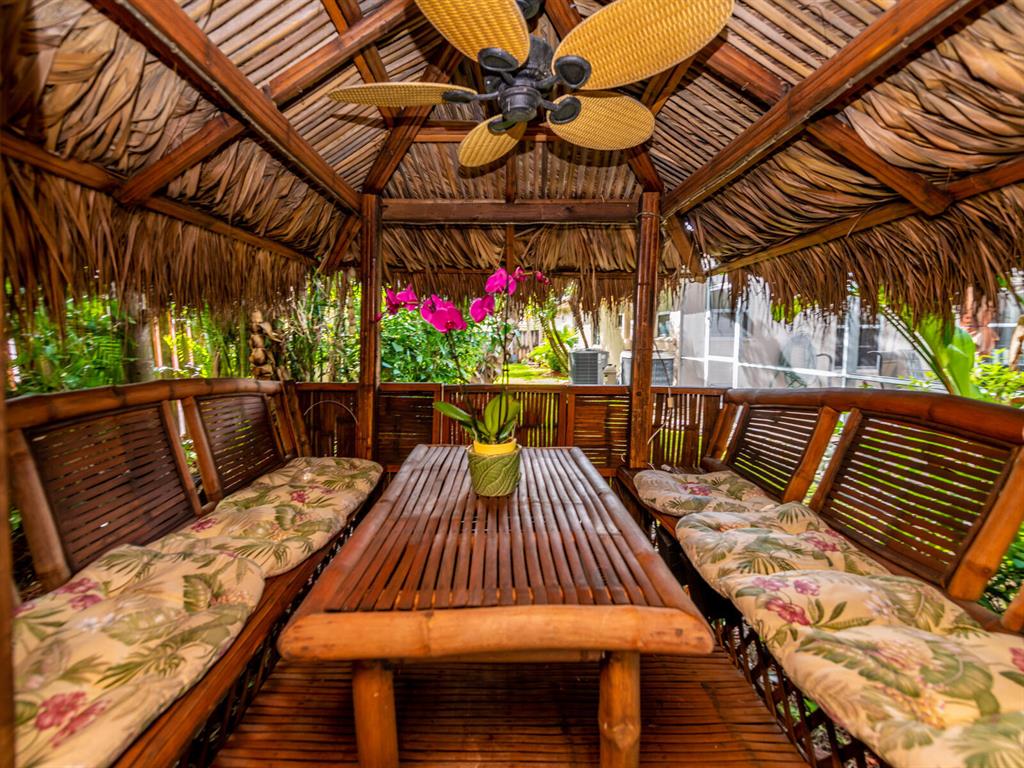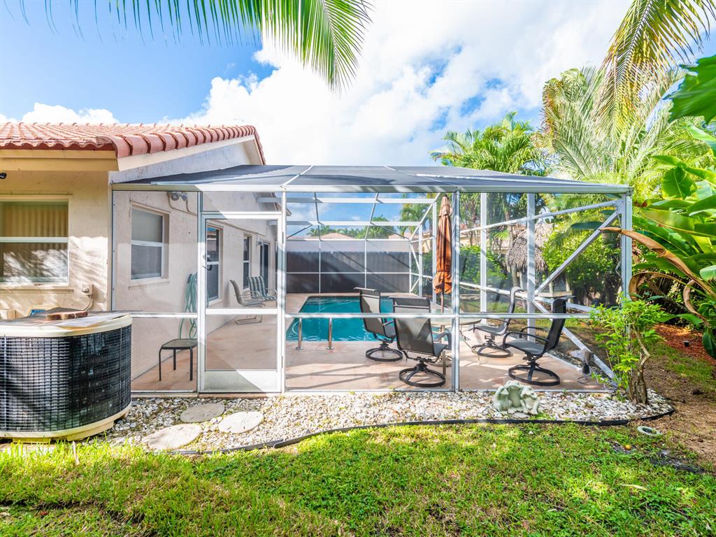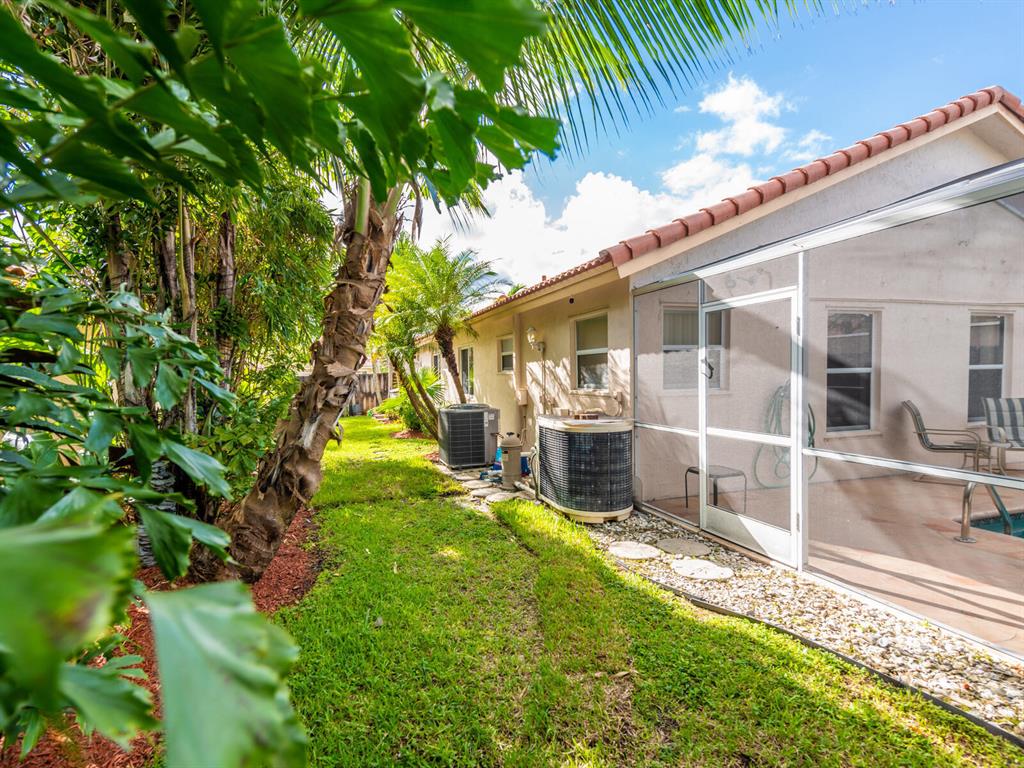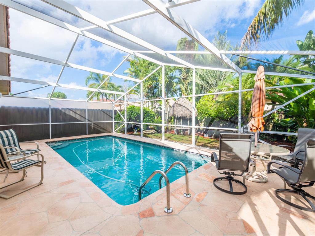 Enjoy living in a tropical oasis with a lushly landscaped backyard with heated, screened pool and a tiki hut to enjoy outside dining or just enjoying the surroundings. Lovely 3 BR home with 2 car garage. This is an immaculate and well maintained home with an updated kitchen including granite countertops and stainless steel appliances. The home has been freshly painted and is ready for move in! Vista Filare is centrally located with easy access to highways making your commutes easy. EXCLUDING the RING door & ARLO camera systems.