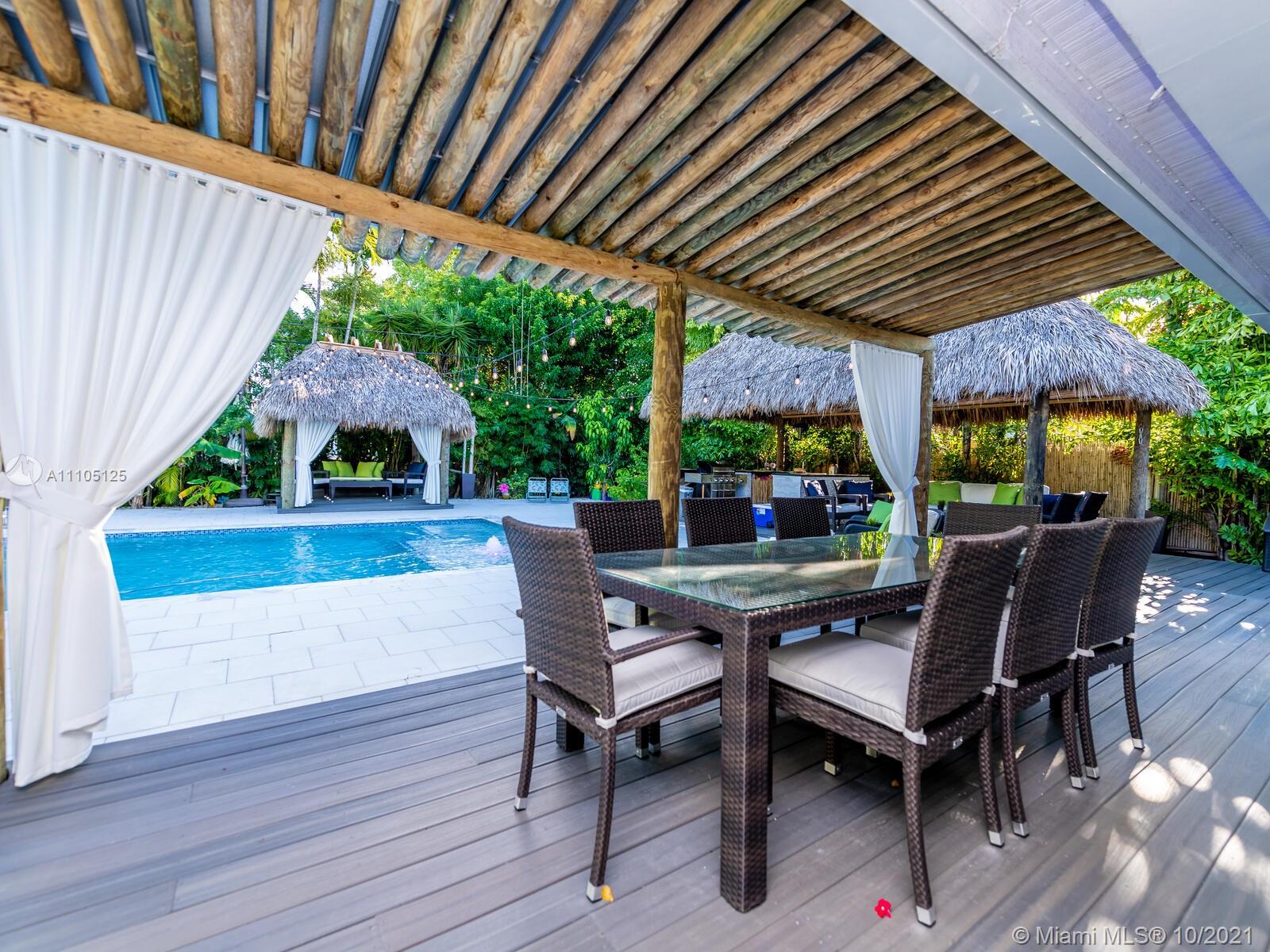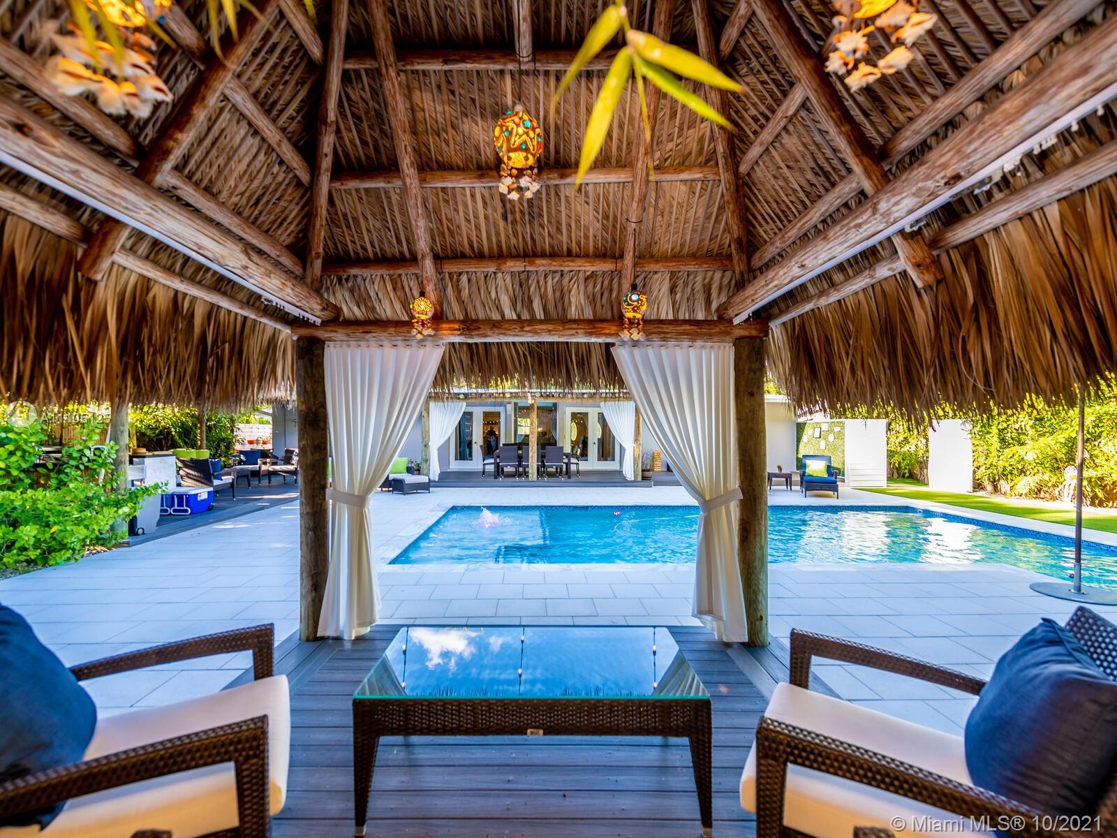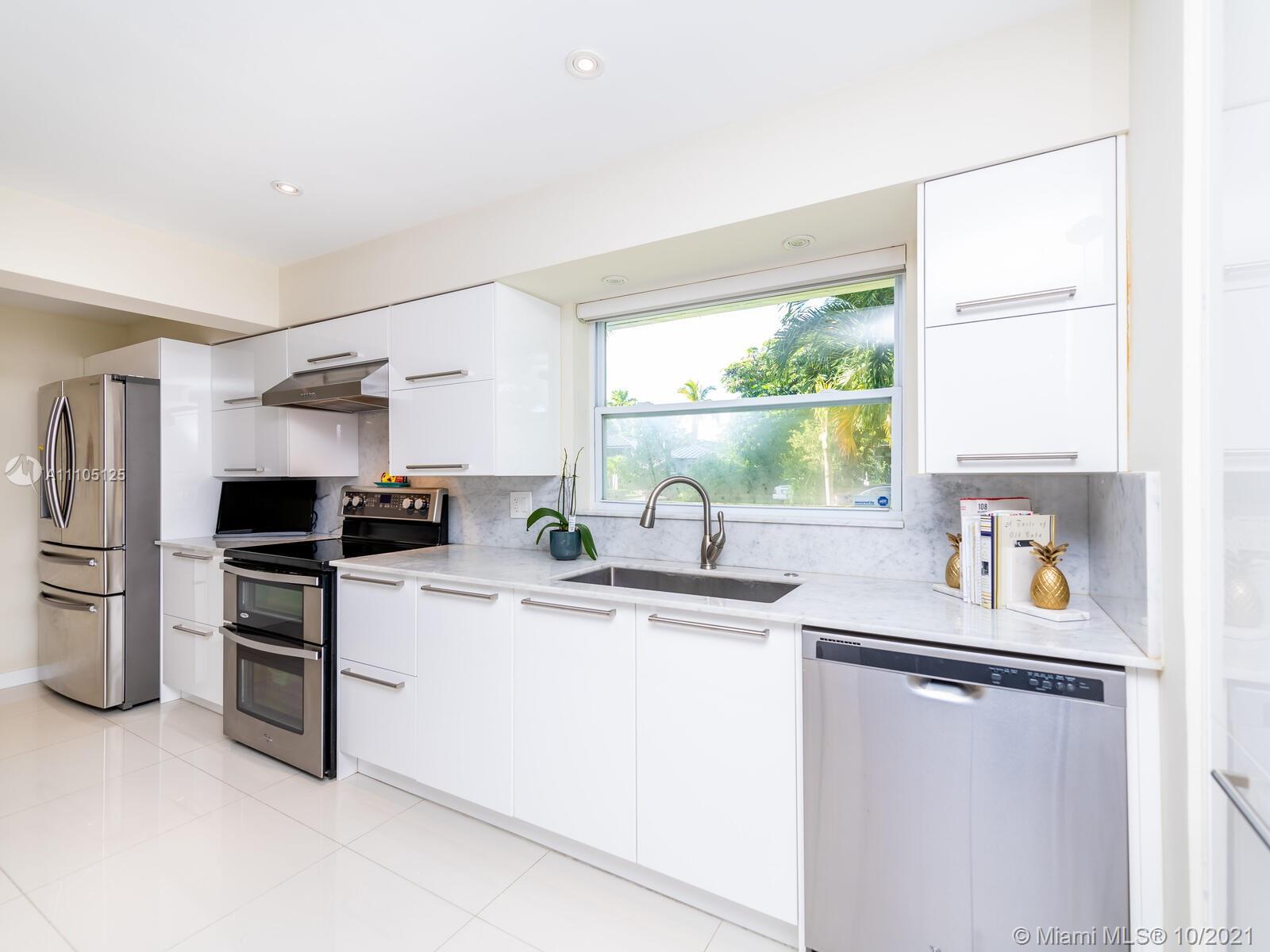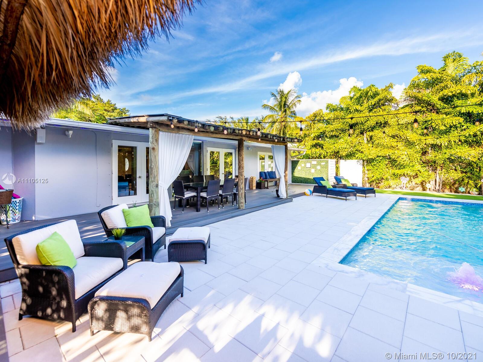 Stunning 3 bedrooms and 2 bathrooms completely remodeled with plenty of custom closets. The home boasts a large living space with plenty of natural light, white porcelain tile throughout, motorized shades, Italian style kitchen cabinets with quartz countertops. Master bedroom with sitting area to enjoy book reading or the captive view of your private oasis backyard. This is the perfect place for your staycation plans, as you can be entertained by the brand new resort style pool that can be used all year round! The pool features a gas heated system which will keep it warm. Also, enjoy the outdoor TVs and speakers , two tiki huts, BBQ , bar area and Astro turf. You can save money on insurance as the roof is 3 years old. Act now before this opportunity is missed!!!