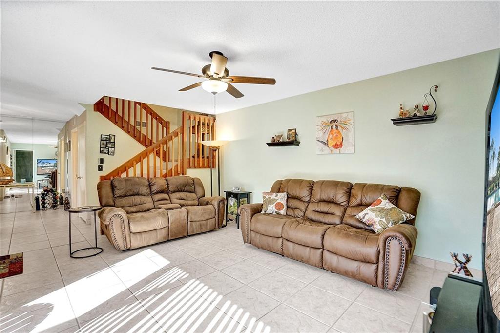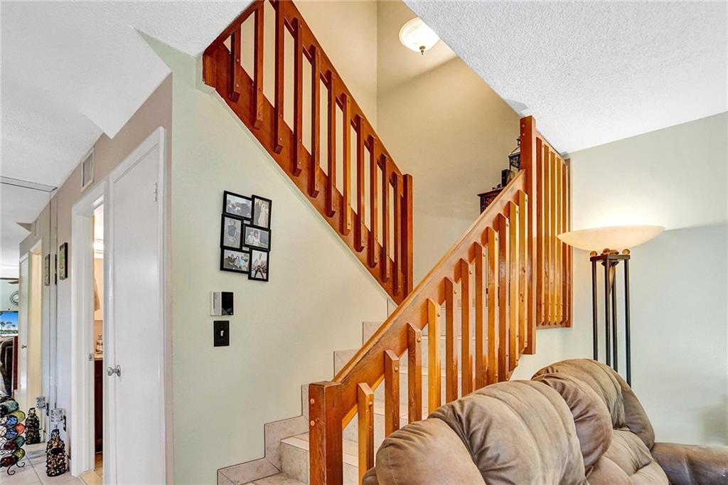 Welcome home to your beautiful, move-in ready 3 bedroom 2.5 bath townhouse! Walk right in to your large, private screened-in patio, great for entertaining! The first floor features an open floor plan kitchen, a large sit in living room, one bedroom, and a half bathroom that was renovated 5 years ago. All three spaces include slider door access to the newly resurfaced patio. The second floor features a beautiful lake view master bedroom, a full bathroom that was updated a year ago including newer washer and dryer, and the 3rd bedroom. All three bedrooms feature carpet. Tile can be found throughout the remainder of the home. A/C is 2 years old. Water Heater is 15 years old.