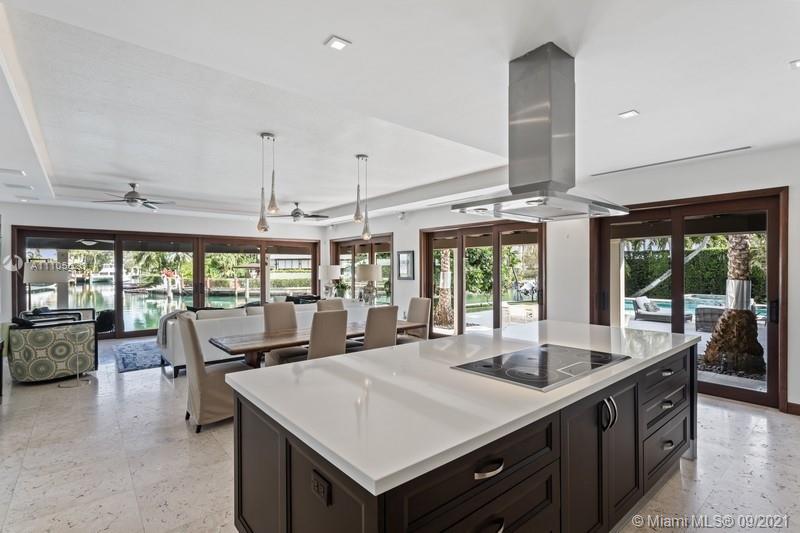 Exceptionally renovated waterfront island residence on most desirable turning basin of Cape Florida canal sits on an impressive 17,483 sq.ft. lot! No detail spared modernization was redone with the highest of standards. Some fine features include Brazilian Teak flooring throughout living and bedroom areas and marble flooring in top of the line kitchen area and adjacent grand family room with fireplace. High vaulted ceilings. Perfect home for those longing to enjoy the best of yachting. Enjoy vistas of the waterway through all impact windows and doors that lead to the wonderful outdoor patio, pool, spa and of course a TWO-level dock with 123 ft seawall. Quick and easy access to Biscayne Bay and Atlantic Ocean- No bridges.