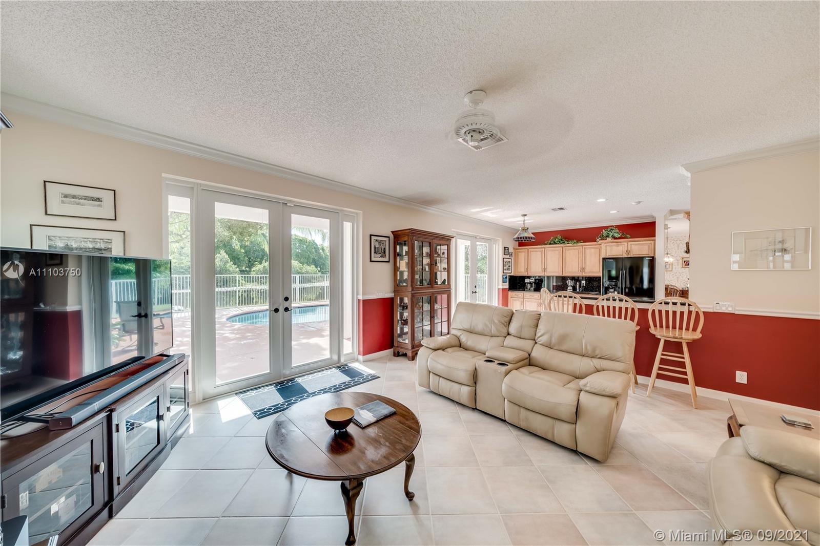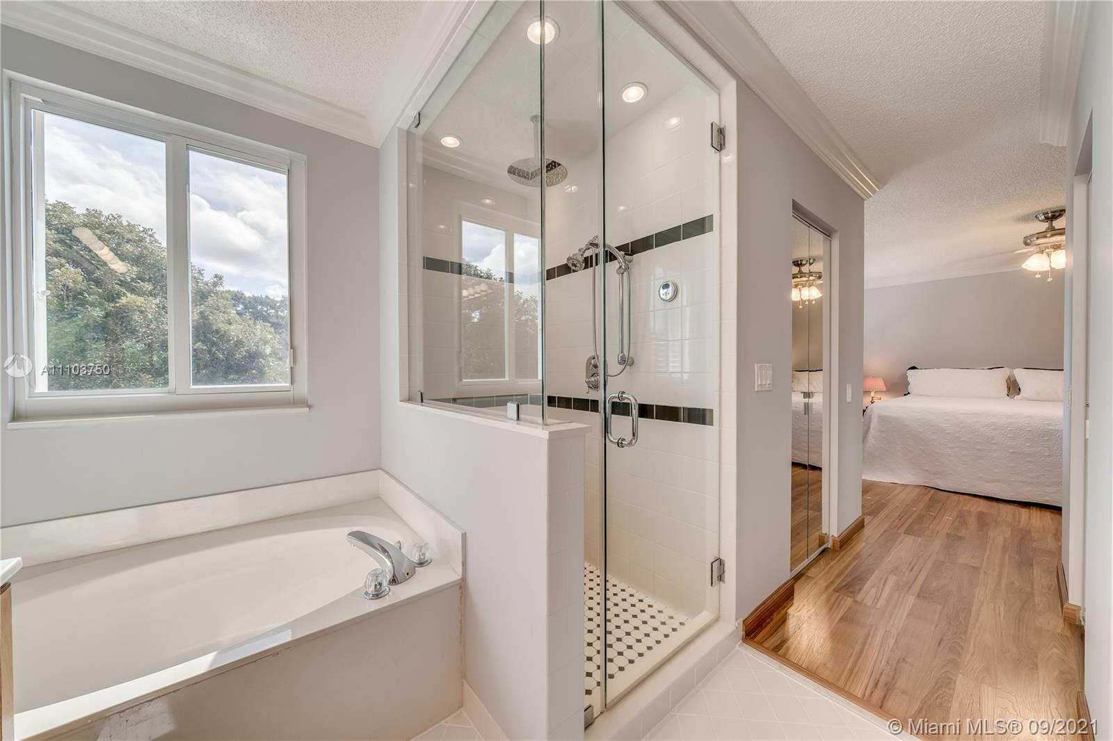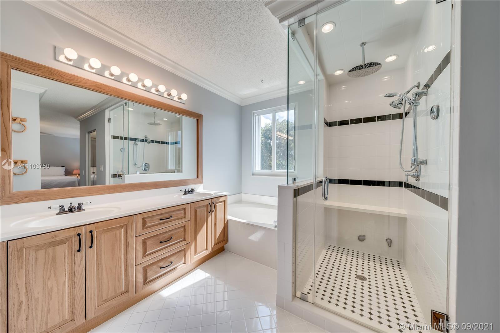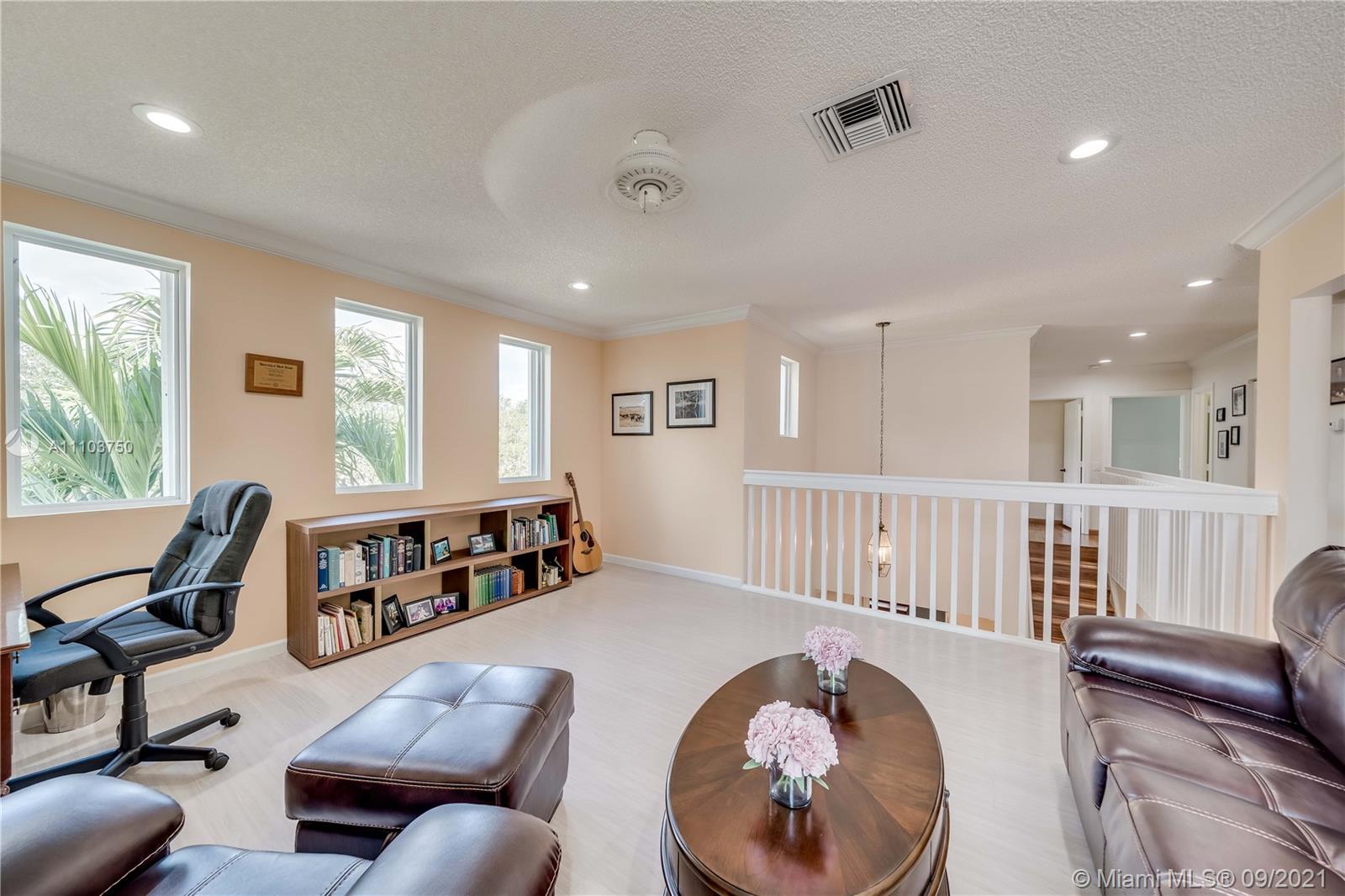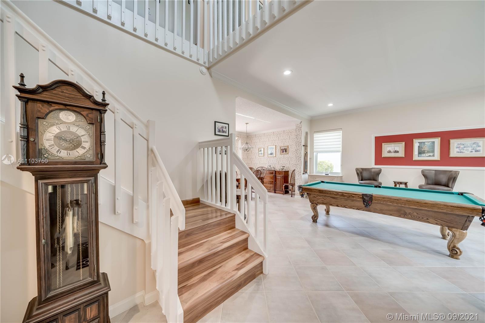 Gorgeous 5/3 plus den, pool & lakefront home located on a cul-de-sac in Guard gated community of The Falls! Impact glass windows & doors installed in 2020! Metal roof 2006. Tile flooring laid diagonally on first floor main living area. Deep baseboards, chair rail, & crown molding throughout. Bedroom & full bath on first floor. Remodeled kitchen features wood cabinetry, granite countertops & new appliances w/induction & convection stove/oven. Master bedroom has two walk in closets/ master bath with double vanity, soaking tub & separate shower w/steam & rain shower head. Additional bedrooms upstairs along w/large den, perfect for a playroom, office or movie room! AC 2016. Water heater 2015. Heated pool. A+ Rated schools. Community features pool, children's playground, full basketball court.