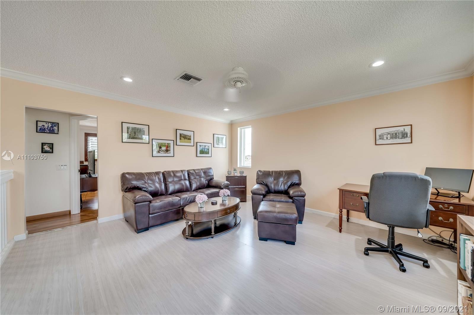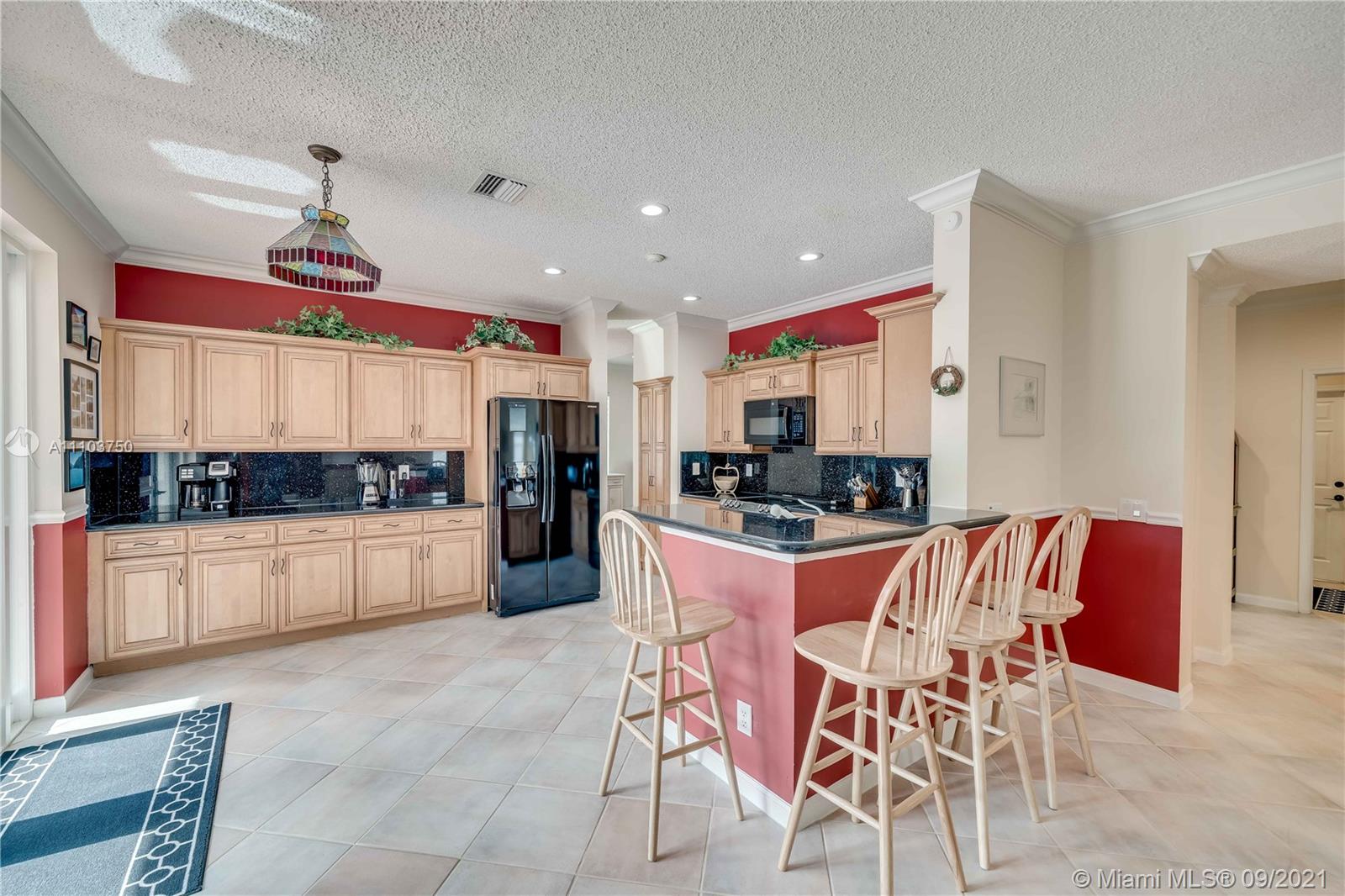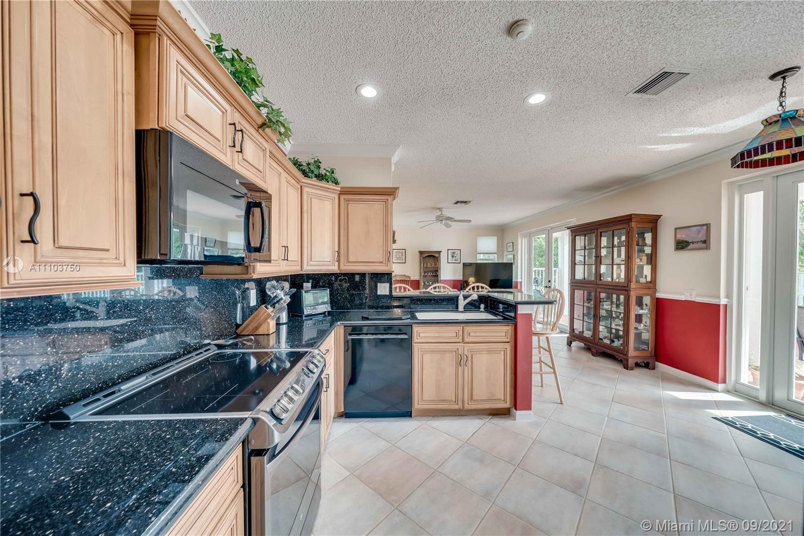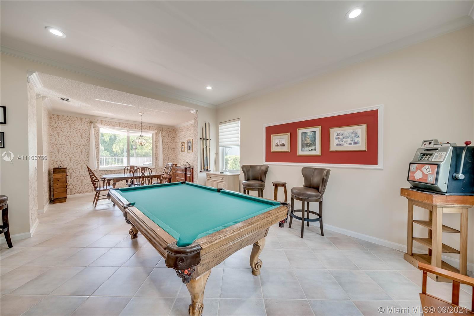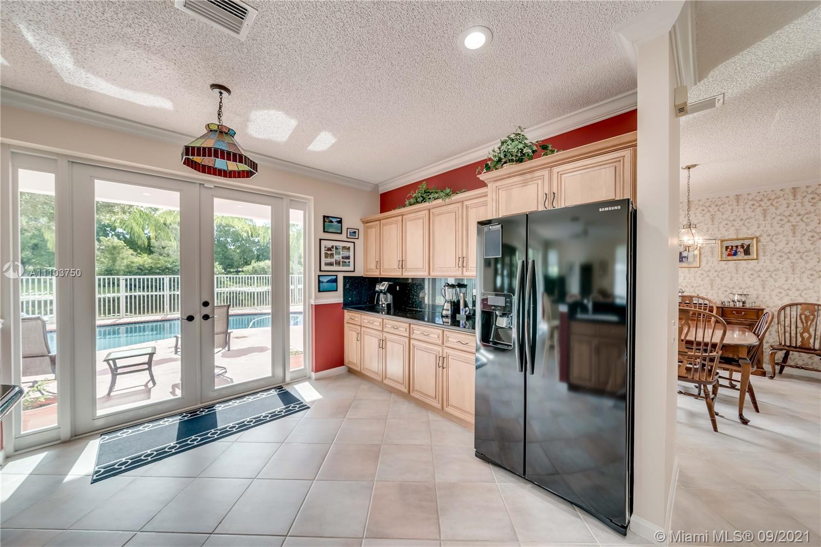 Gorgeous 5/3 plus den, pool & lakefront home located on a cul-de-sac in Guard gated community of The Falls! Impact glass windows & doors installed in 2020! Metal roof 2006. Tile flooring laid diagonally on first floor main living area. Deep baseboards, chair rail, & crown molding throughout. Bedroom & full bath on first floor. Remodeled kitchen features wood cabinetry, granite countertops & new appliances w/induction & convection stove/oven. Master bedroom has two walk in closets/ master bath with double vanity, soaking tub & separate shower w/steam & rain shower head. Additional bedrooms upstairs along w/large den, perfect for a playroom, office or movie room! AC 2016. Water heater 2015. Heated pool. A+ Rated schools. Community features pool, children's playground, full basketball court.