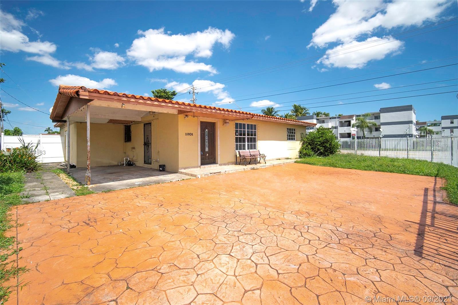 a corner lot house with ample fenced patio at a great location in Hialeah. The house has 4 bedrooms and three bathrooms . The entire lot is fenced by iron fences with electric gate opener to driveway, and with shutter protection for windows. The flat roof has been recently fixed, as well as a new ac unit, a bedroom and bath located on the side can be used as additional income rental. This is " as is" contract and will not be accept any offers with any contingencies . Please provided DU letter as well as approval letter from lender with the offer to be contemplated. Hurry!, this one won't last in a hot seller market of Hialeah