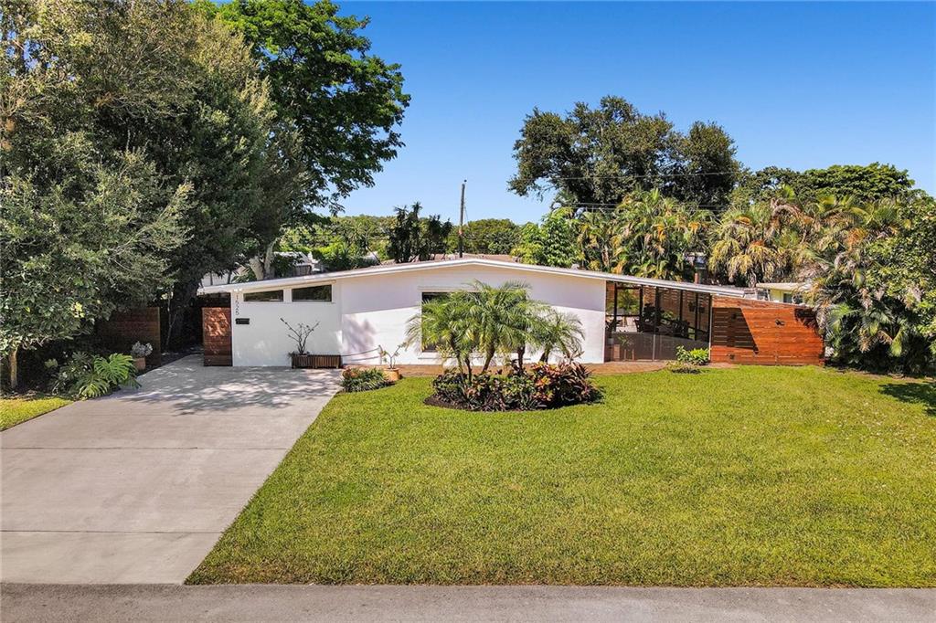 Mid Century Home with Modern Updates throughout. Filled with Natural Light, 2 bedrooms 1 bath plus a flex space for home office or 3rd bedroom w/a large storage area. Custom Blinds, French Doors, Vaulted Ceilings Custom Accent wall in the Living Room. Screened Porch overlooking large yard w/ room for a pool & expansion. Separate Utility/ Laundry Room. New Modern 6ft Privacy Fencing,2018 Electric Panels, 2016 Roof. Open Kitchen w/ Counter Seating & a Pantry. Updated fixtures & Lighting throughout. Nest Thermostat, full alarm system & outdoor security lighting. Shady Banks offers 2 parks with Volleyball, Tennis Courts Walking Paths and a Riverfront Preserve to Paddle Board/Kayak. Surrounded by the New River, with one way in/out this is the hidden gem neighborhood in Ft Lauderdale. A MUST SEE