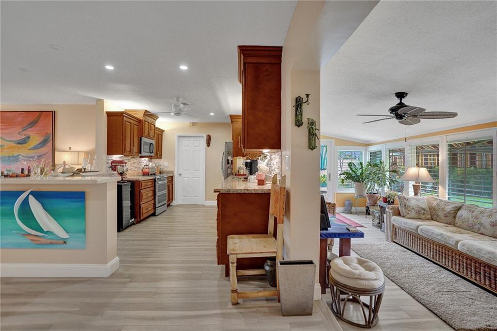 Back on the Market. Spacious Open Floor plan 2 bedroom & 2 bathroom home. This property sits on a perfect quant street. There are many features with a Bonus oversized Florida Room & well oversized laundry facility that is used as an office. All impact windows added in 2018 and New roof in 2012. Sharp Plantation Shutters on all windows added in 2018. Open chefs kitchen offers solid wood cabinets with granite counter tops and a marble snack bar. Refrigerator and dishwasher also 2018! The bathrooms were new in 2018. A huge feature is the oversized 2 car garage with storage. Lastly but not the end to this property is the Fully fenced backyard perfect for a custom pool & pets.