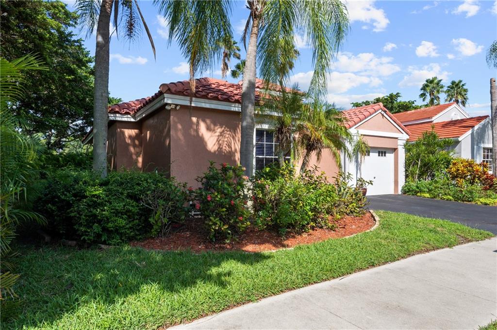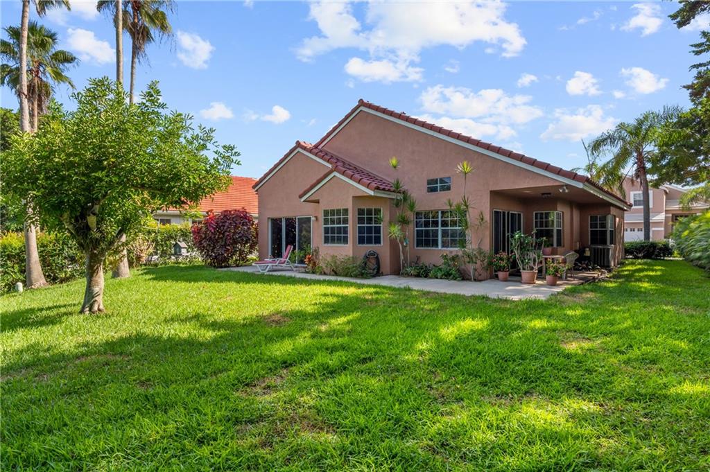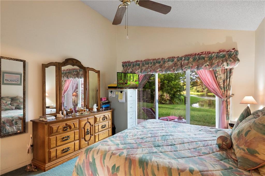 Rarely available, corner lot, one story home with peaceful lake views in the desired gate community of Bermuda Springs. This 3 bedroom, 2 bathroom home features tile in the common areas, volume ceilings, split floor plan, and stainless steel appliances. The master bedroom is generous in size with a private entrance to the backyard, spacious walk in closet and large master bathroom with his/her sinks. Community pool and playground is in walking distance. Plenty of landscaping gives the backyard just the right amount of privacy. Roof was replaced in 2012 and AC was replaced in 2017. Low HOA of $97 a month.